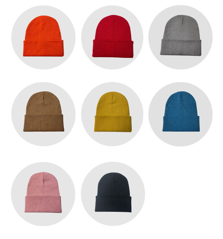 가을과 겨울 새로운 멀티 컬러 니트 모자 아크릴 콜드 모자 비니 모자 라이트 플레이트 단색 양모 모자 니트 모자 제조 업체 도매스토어 가기