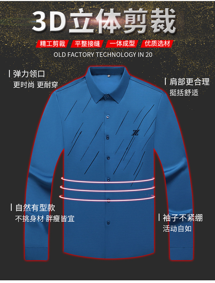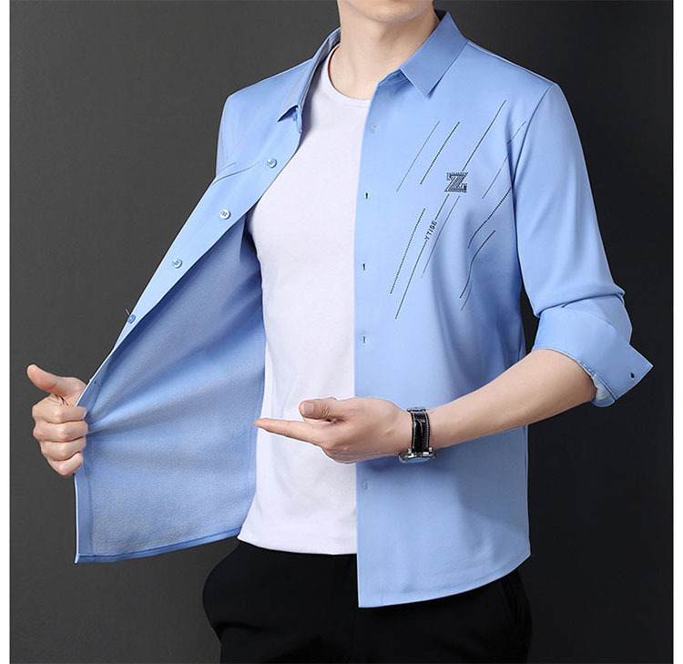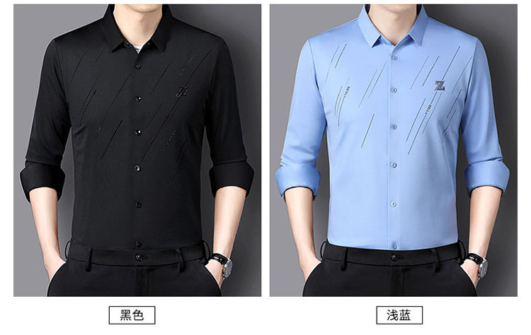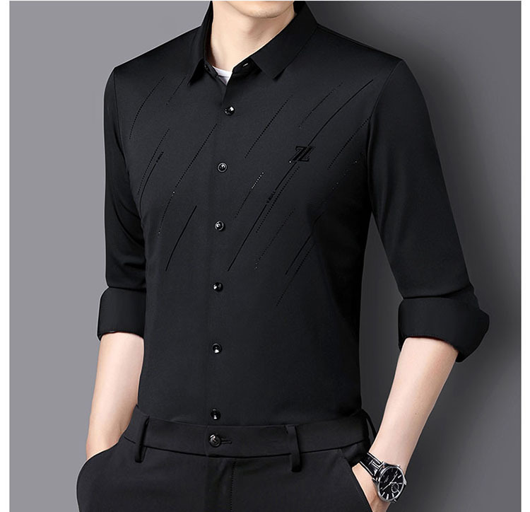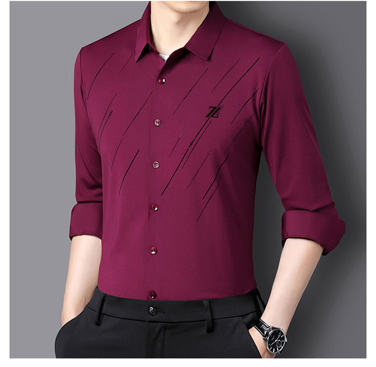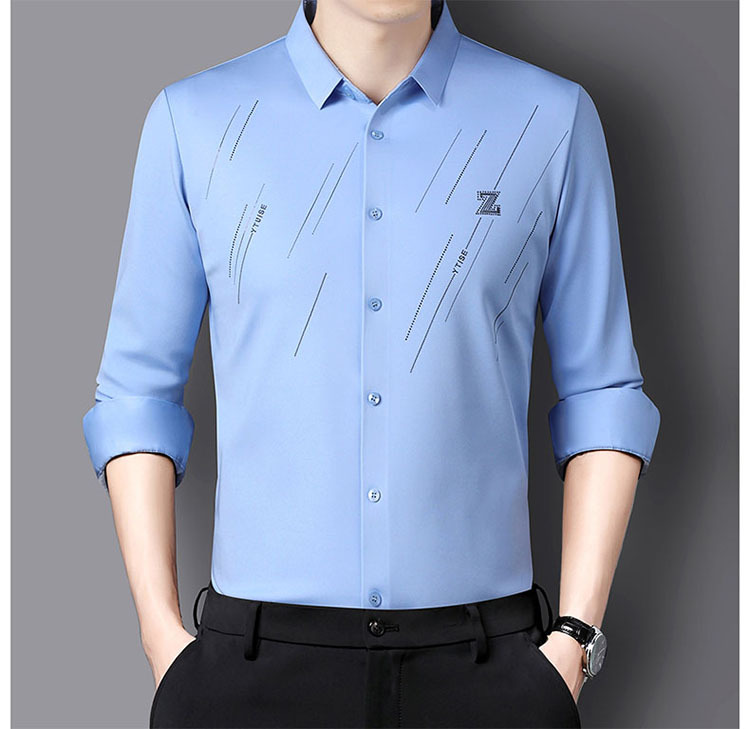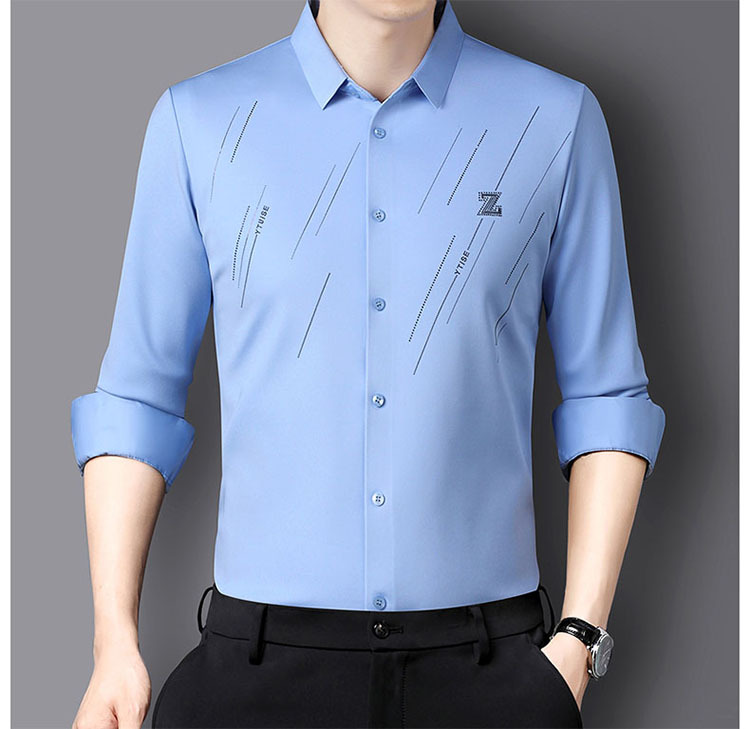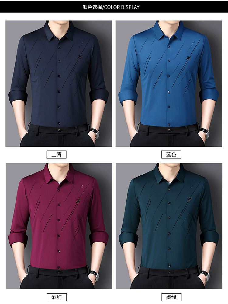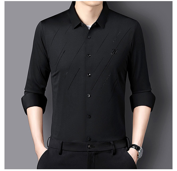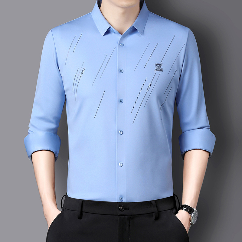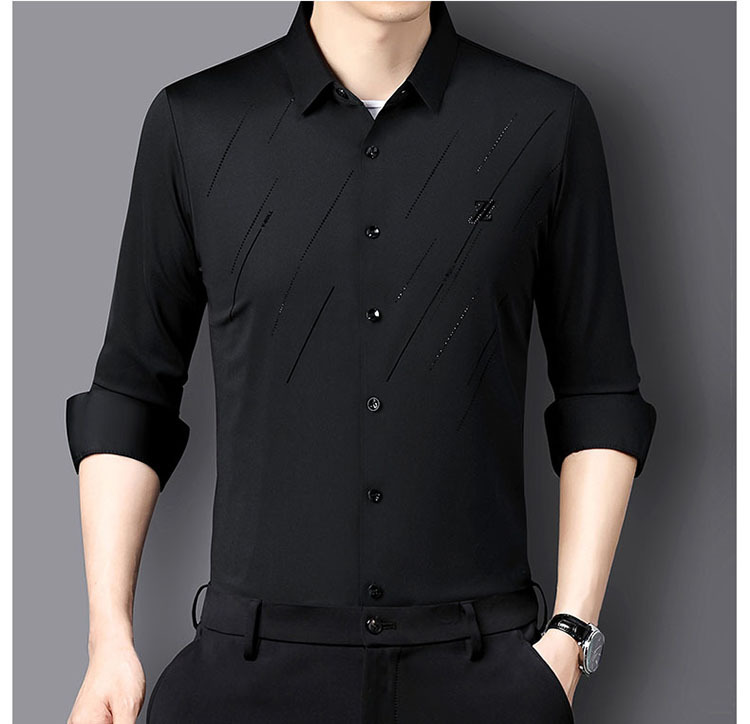 정품 남성 인쇄 핫 드릴링 긴 소매 셔츠 2023 가을 새로운 젊은 및 중년 남성의 원활한 비 다림질 셔츠
