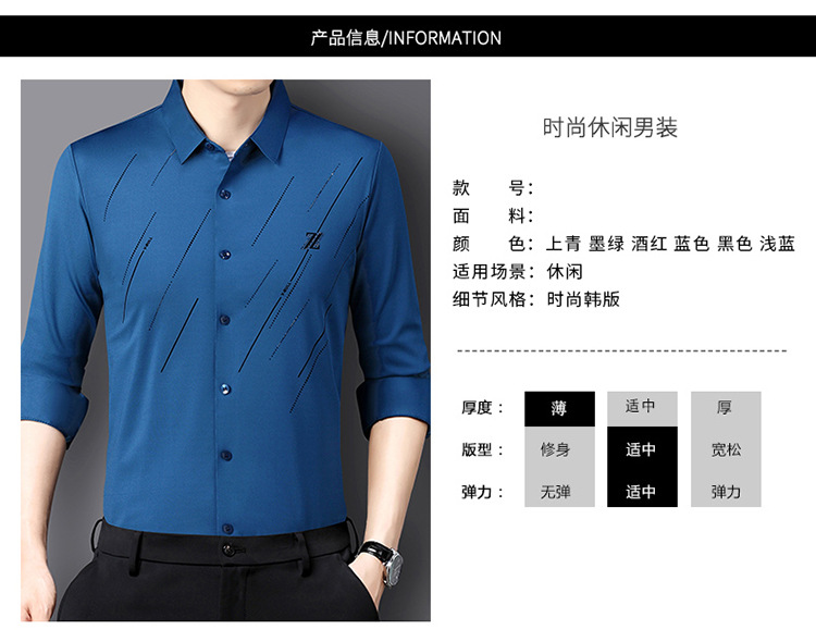 정품 남성 인쇄 핫 드릴링 긴 소매 셔츠 2023 가을 새로운 젊은 및 중년 남성의 원활한 비 다림질 셔츠스토어 가기