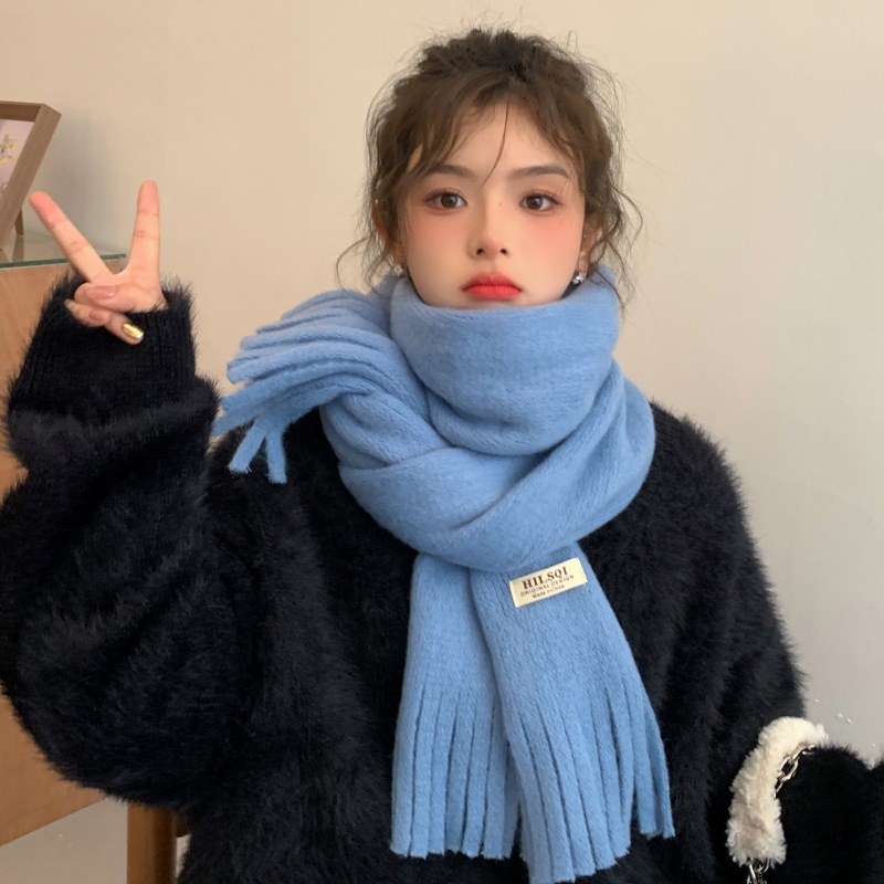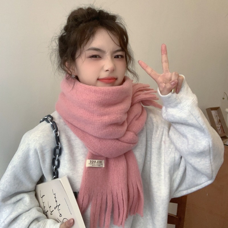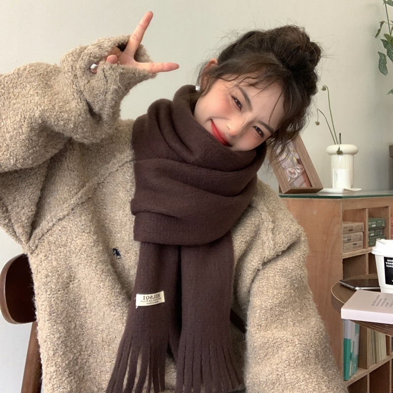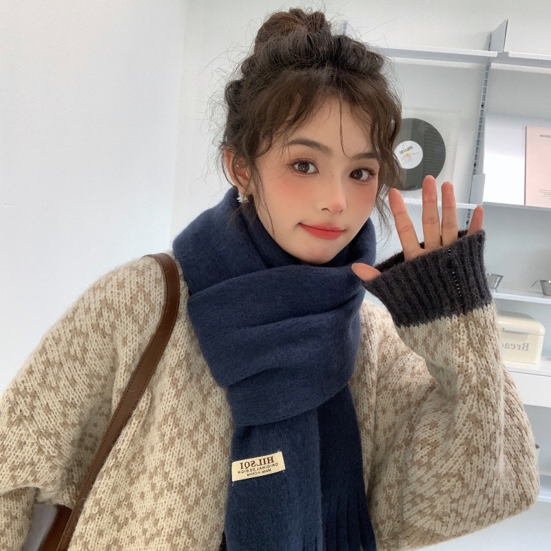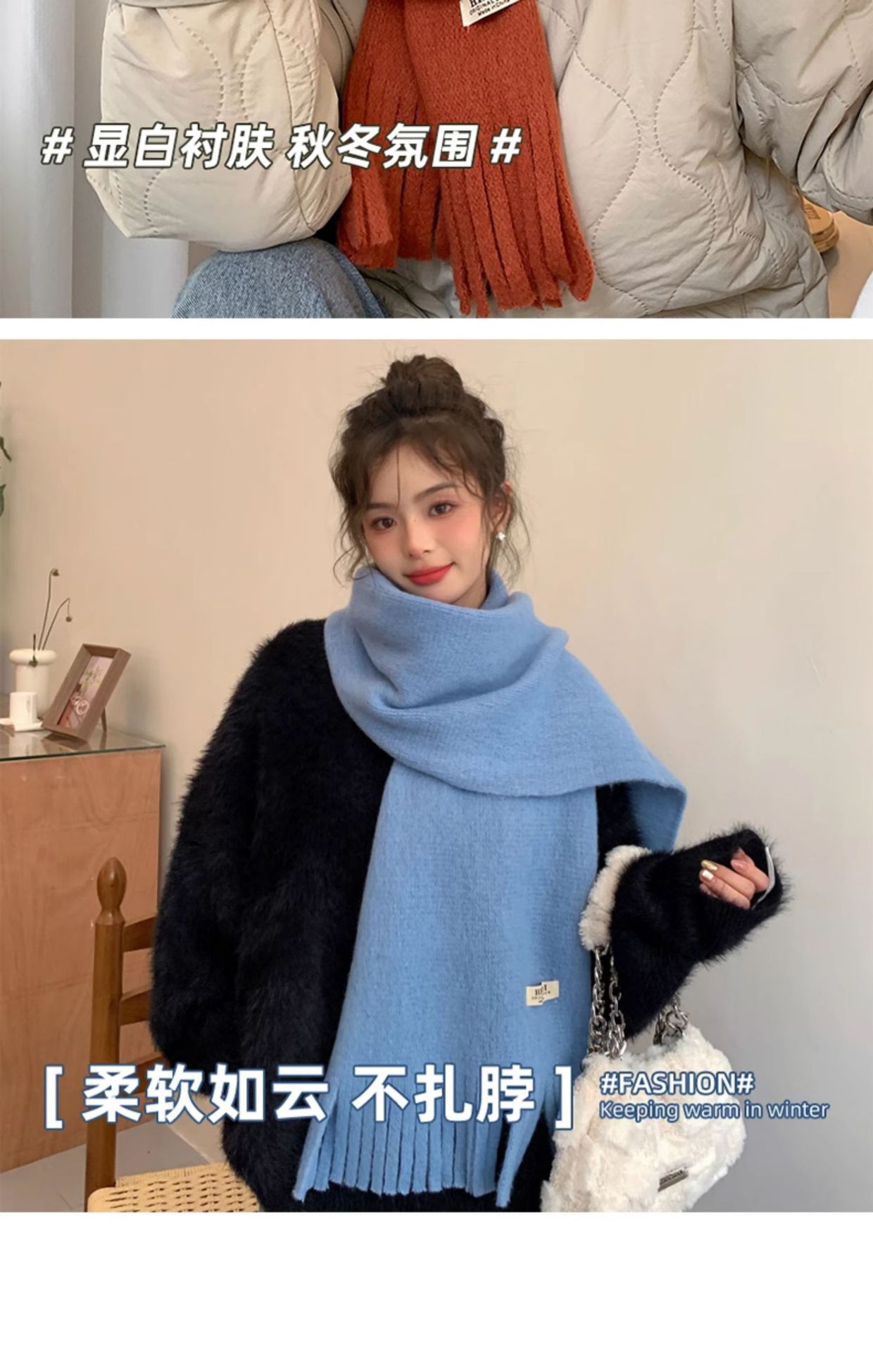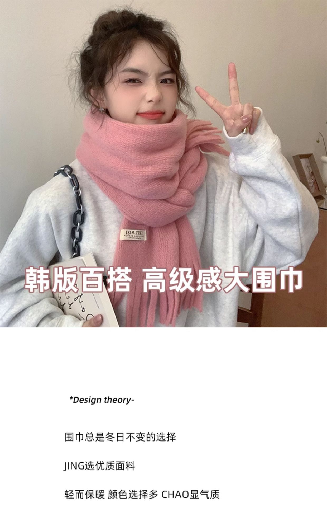 2023 새로운 단색 모직 스카프 여성용 겨울 한국식 모든 매치 숄 패션 캐시미어 두꺼운 니트 스카프스토어 가기