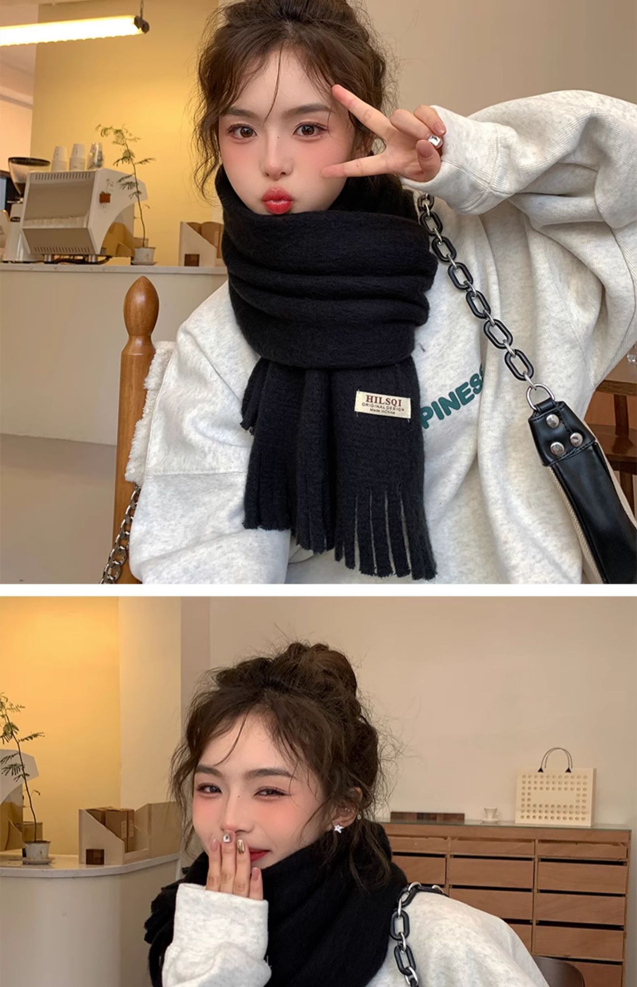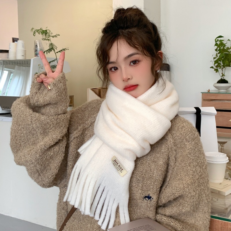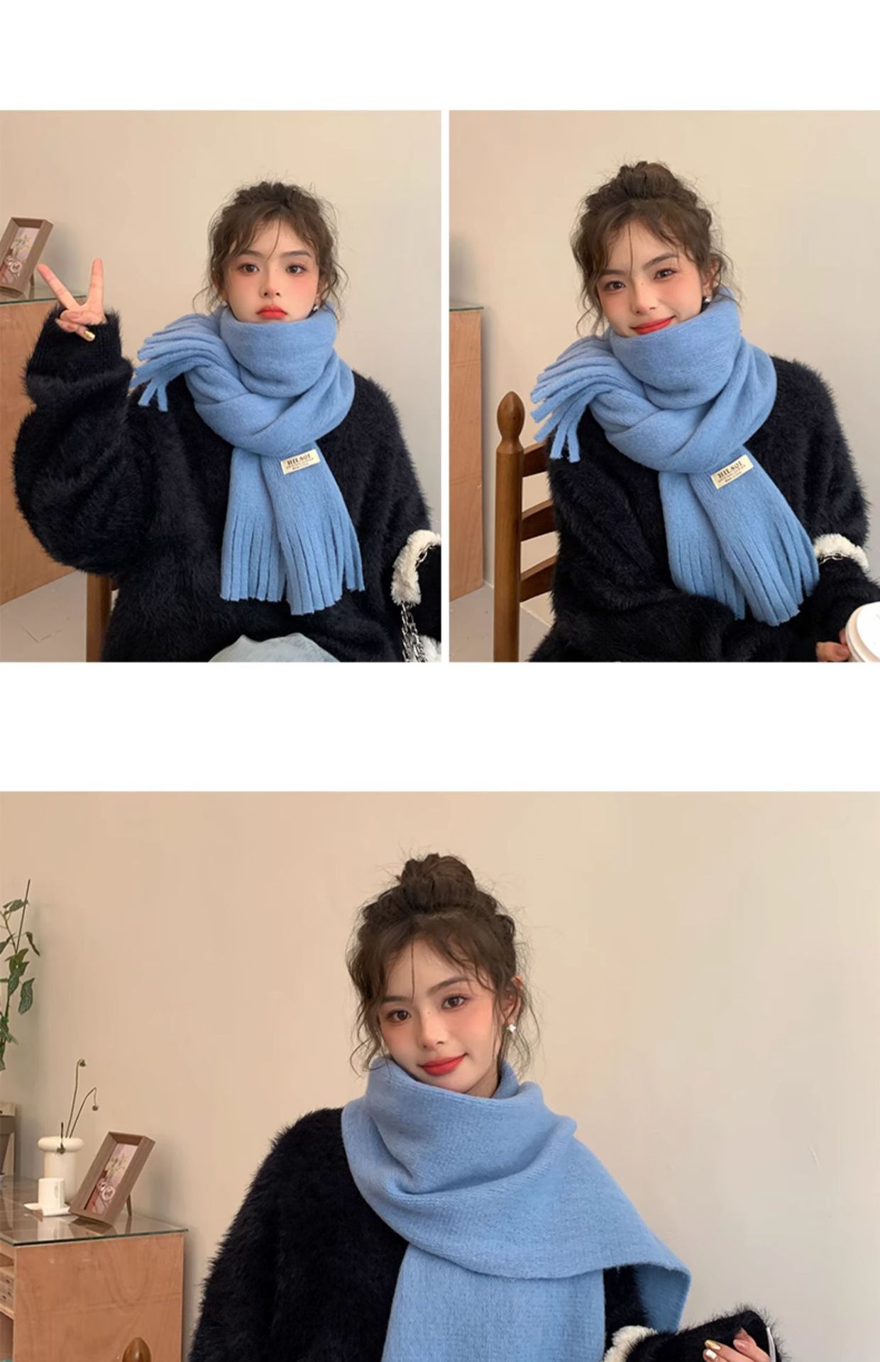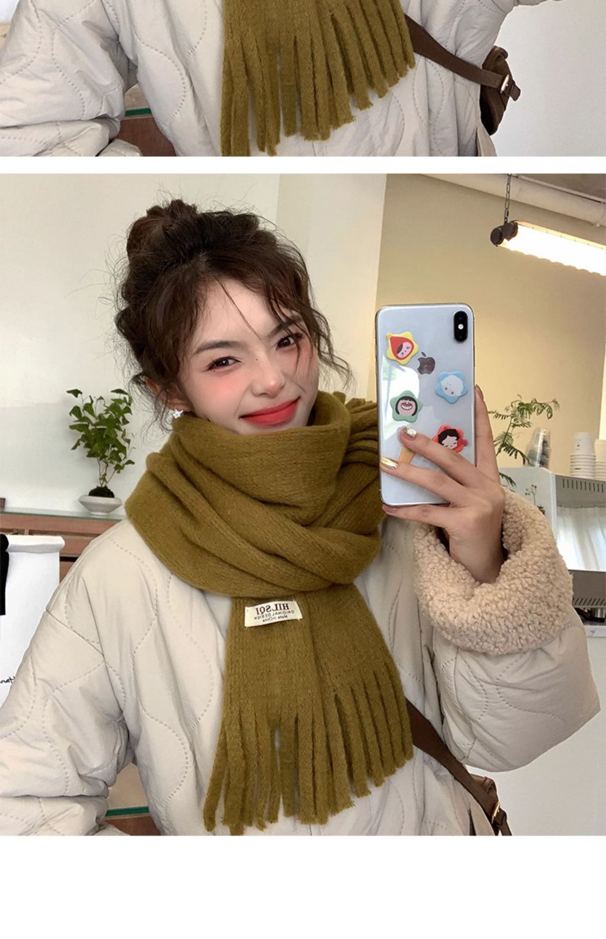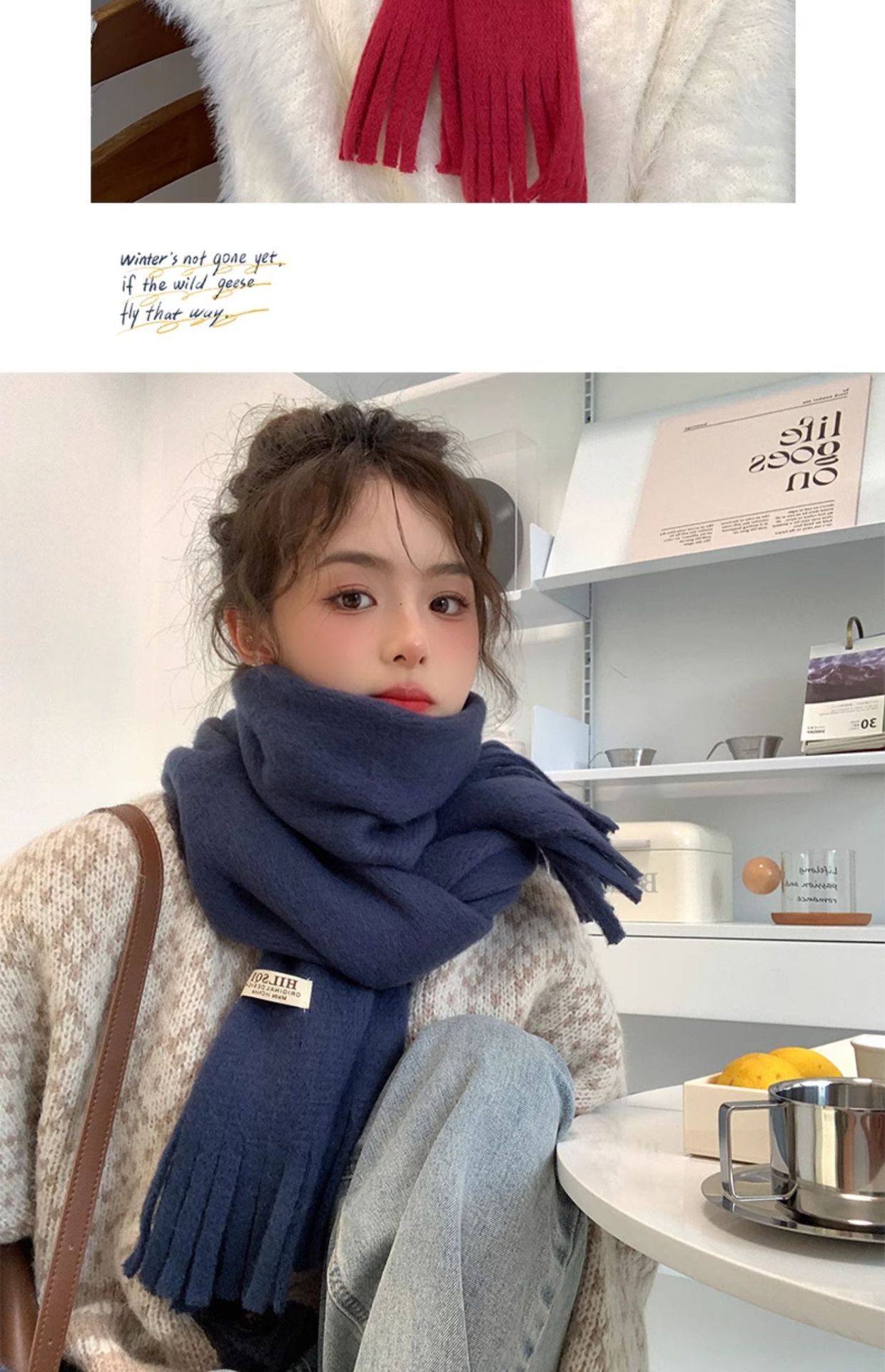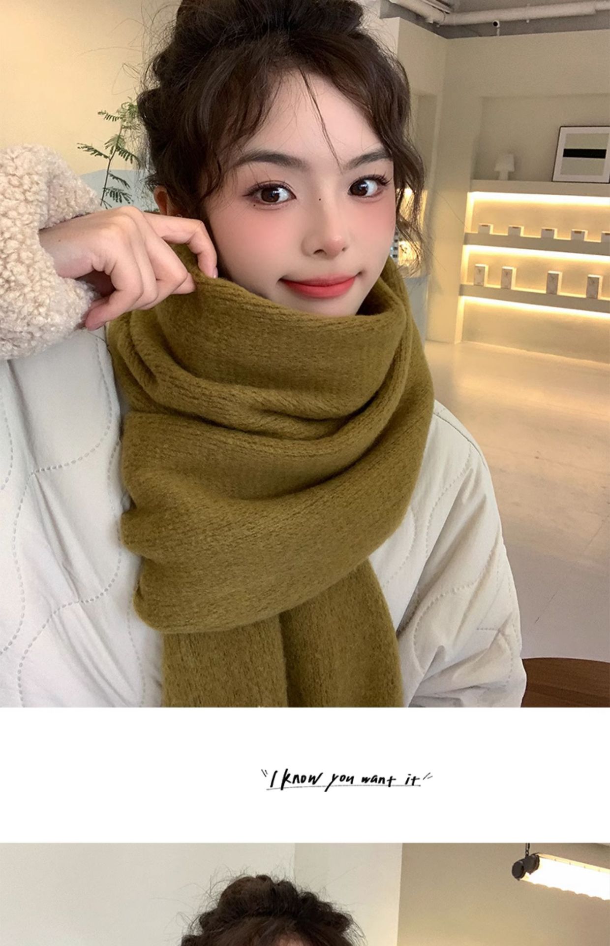 2023 새로운 단색 모직 스카프 여성용 겨울 한국식 모든 매치 숄 패션 캐시미어 두꺼운 니트 스카프스토어 가기