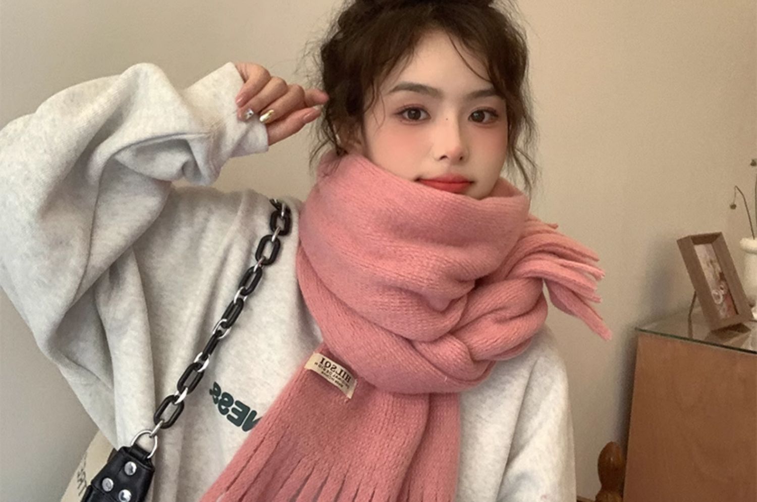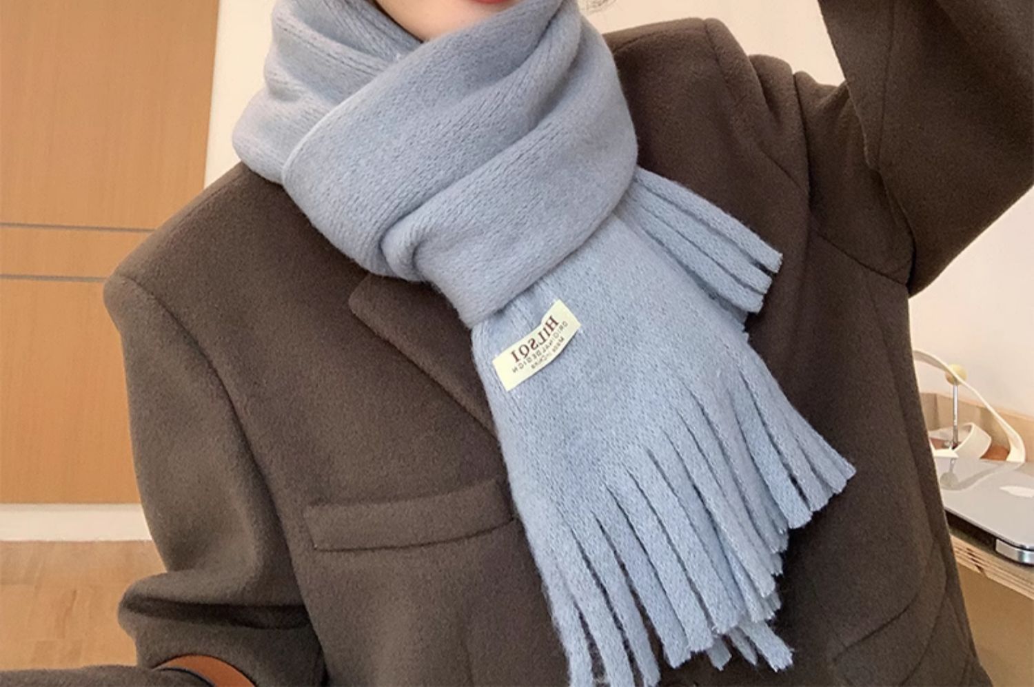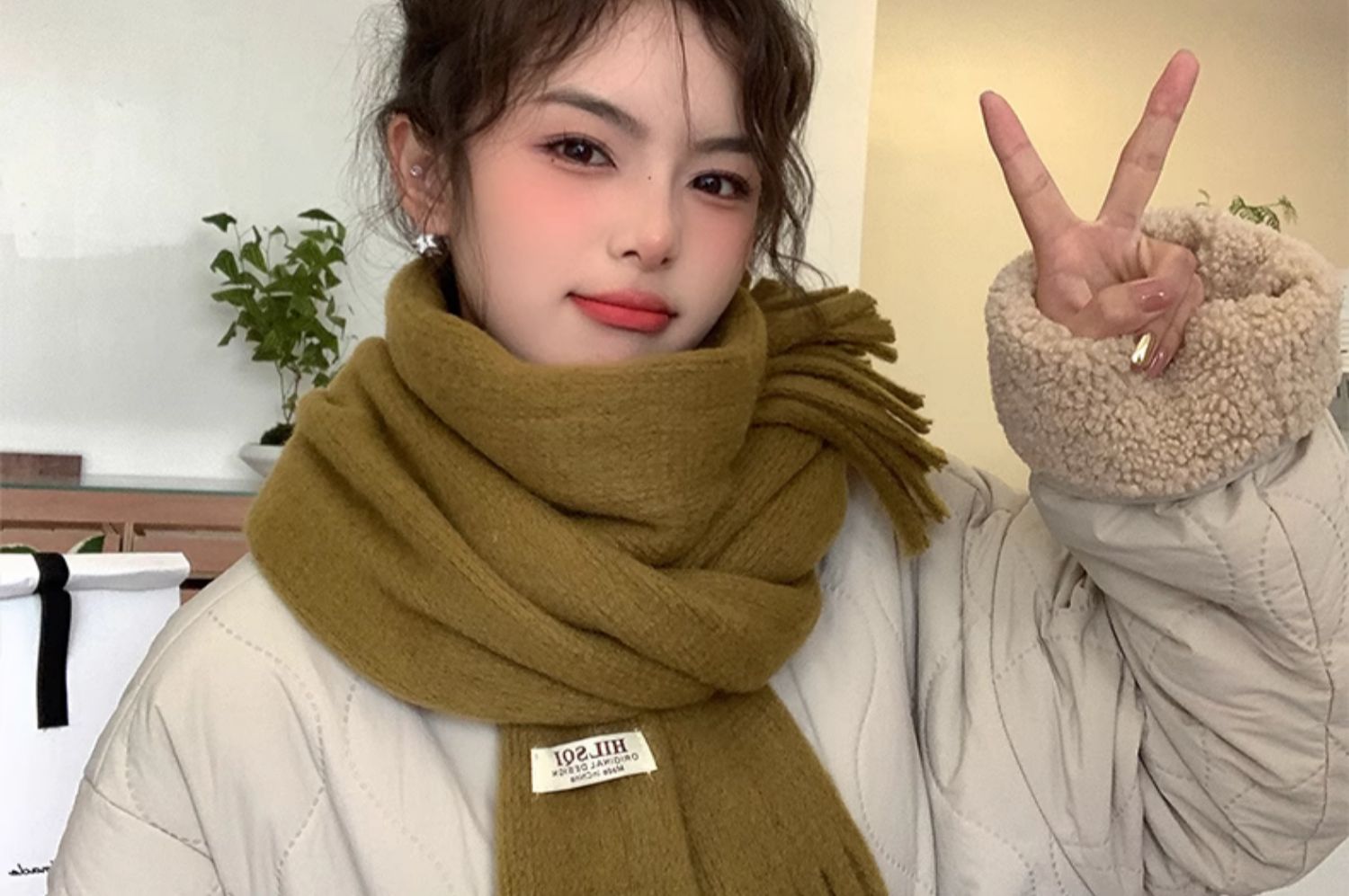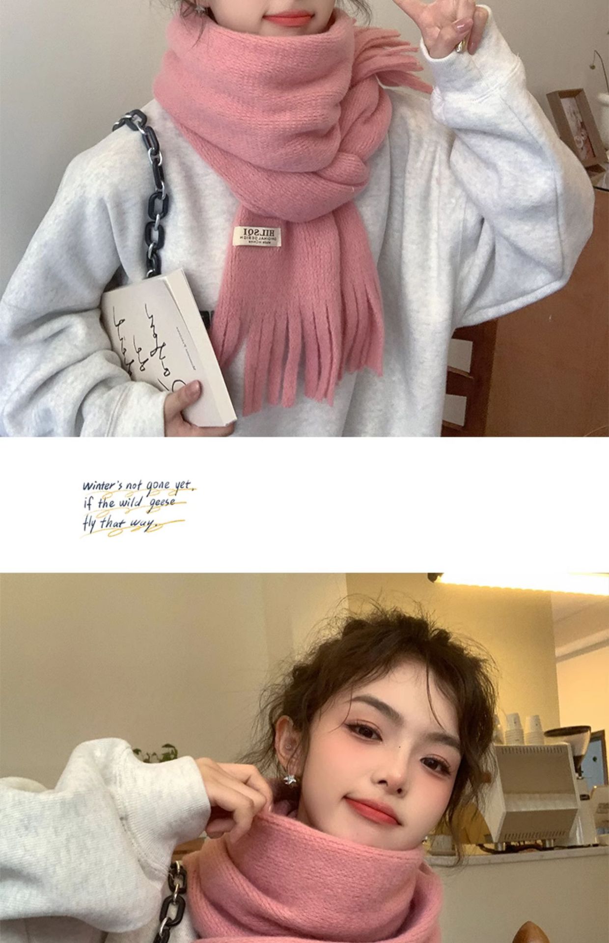 2023 새로운 단색 모직 스카프 여성용 겨울 한국식 모든 매치 숄 패션 캐시미어 두꺼운 니트 스카프스토어 가기