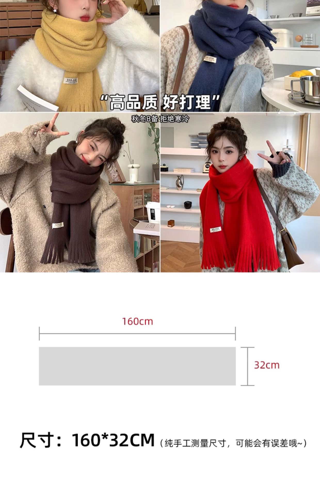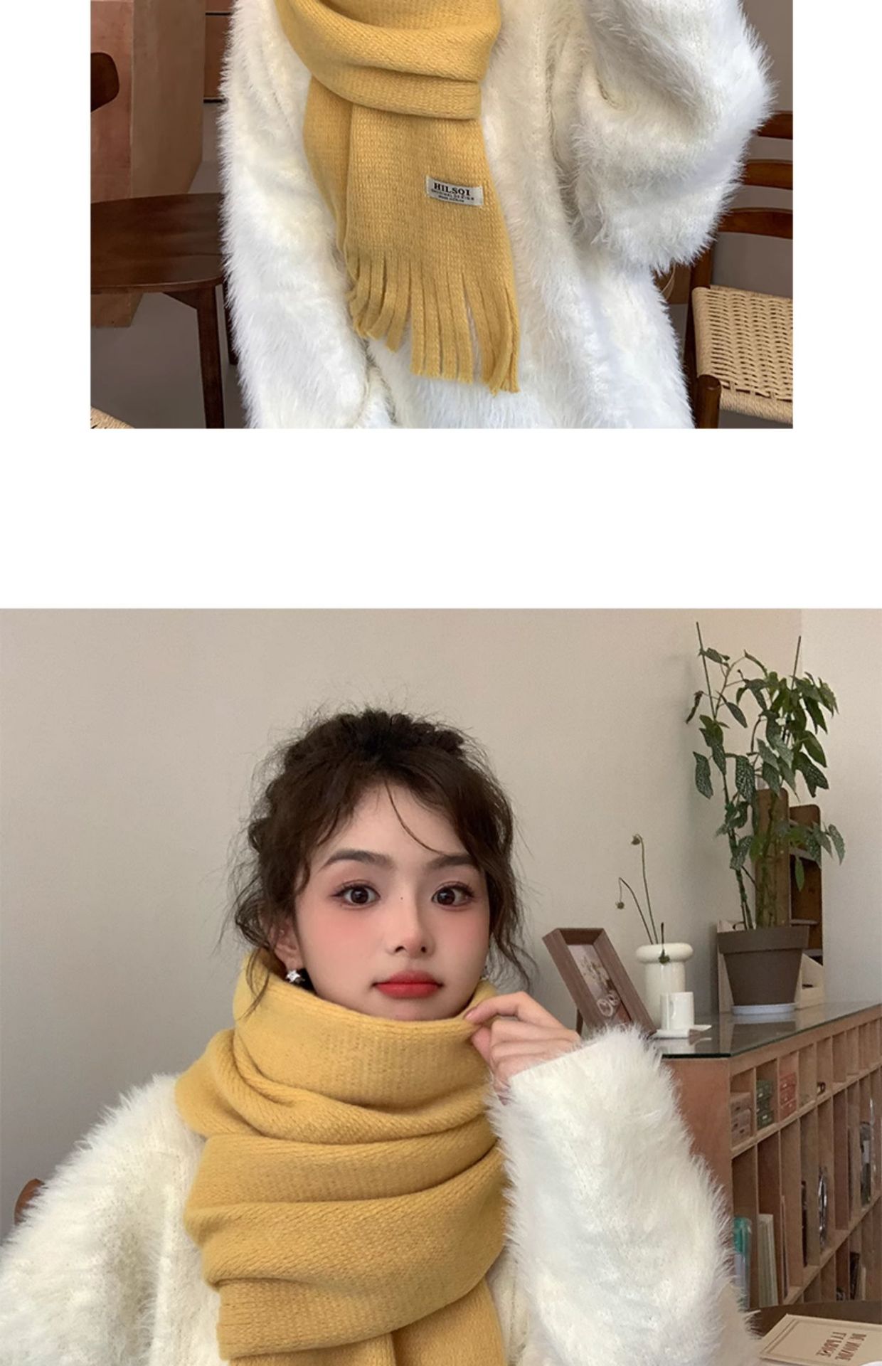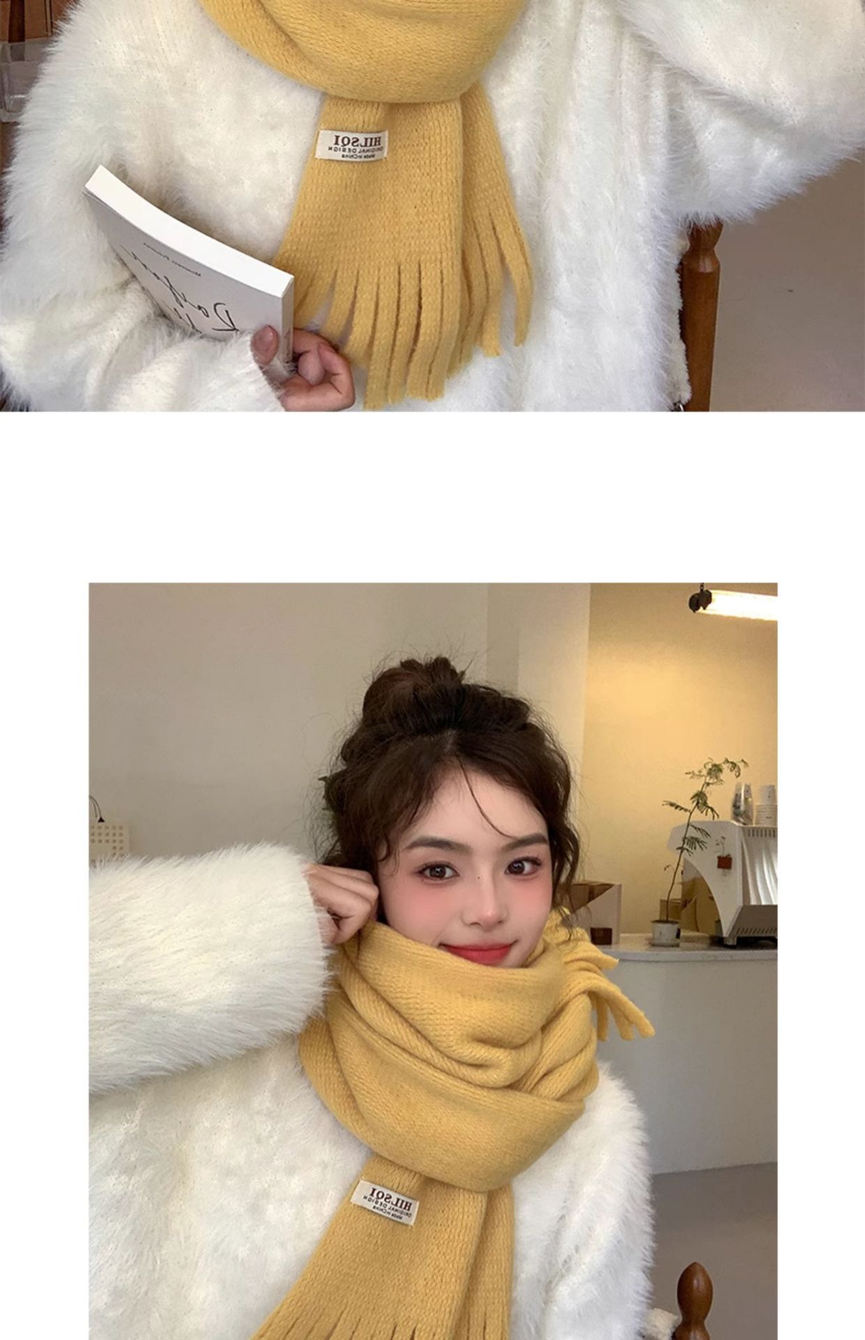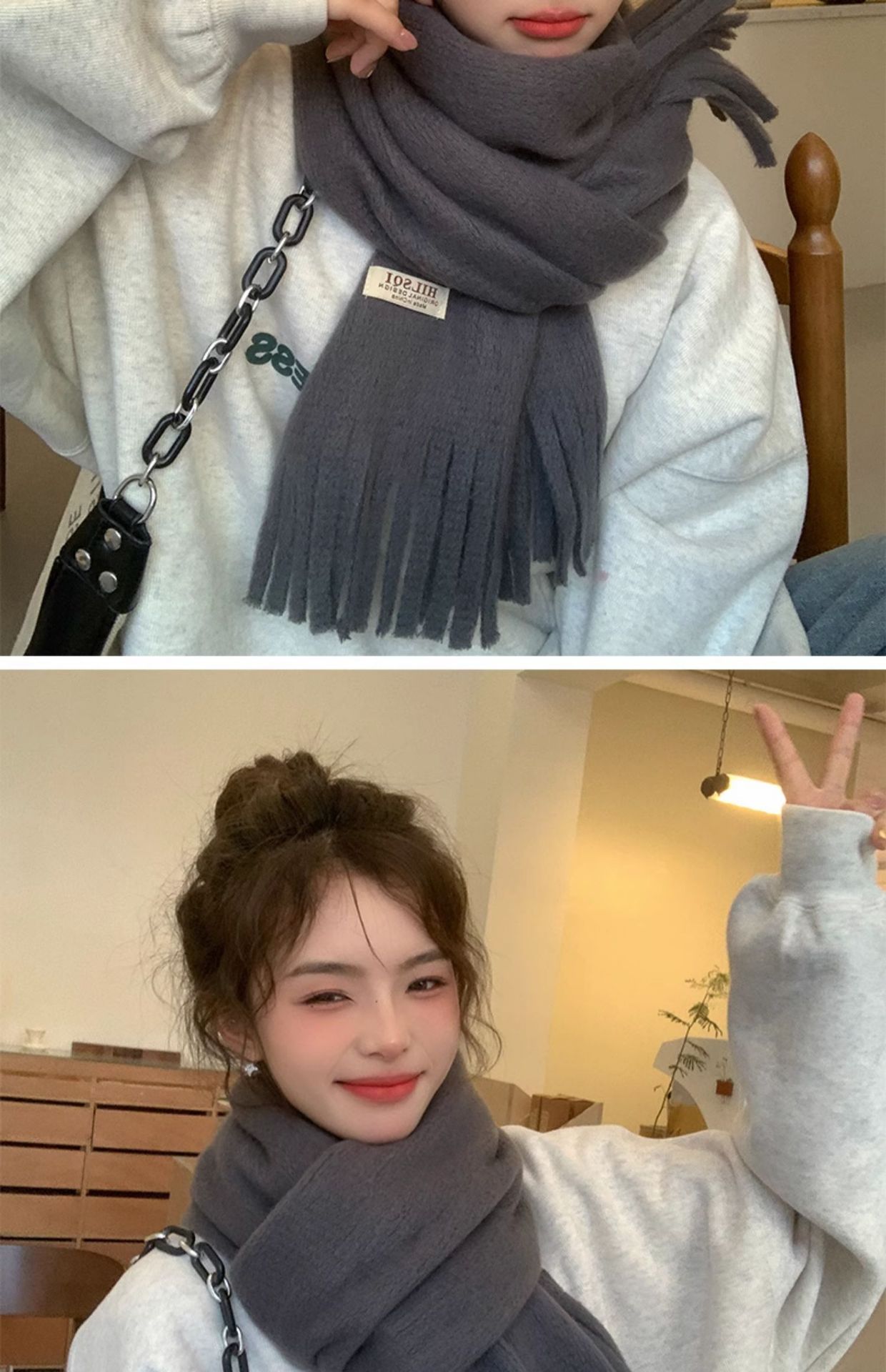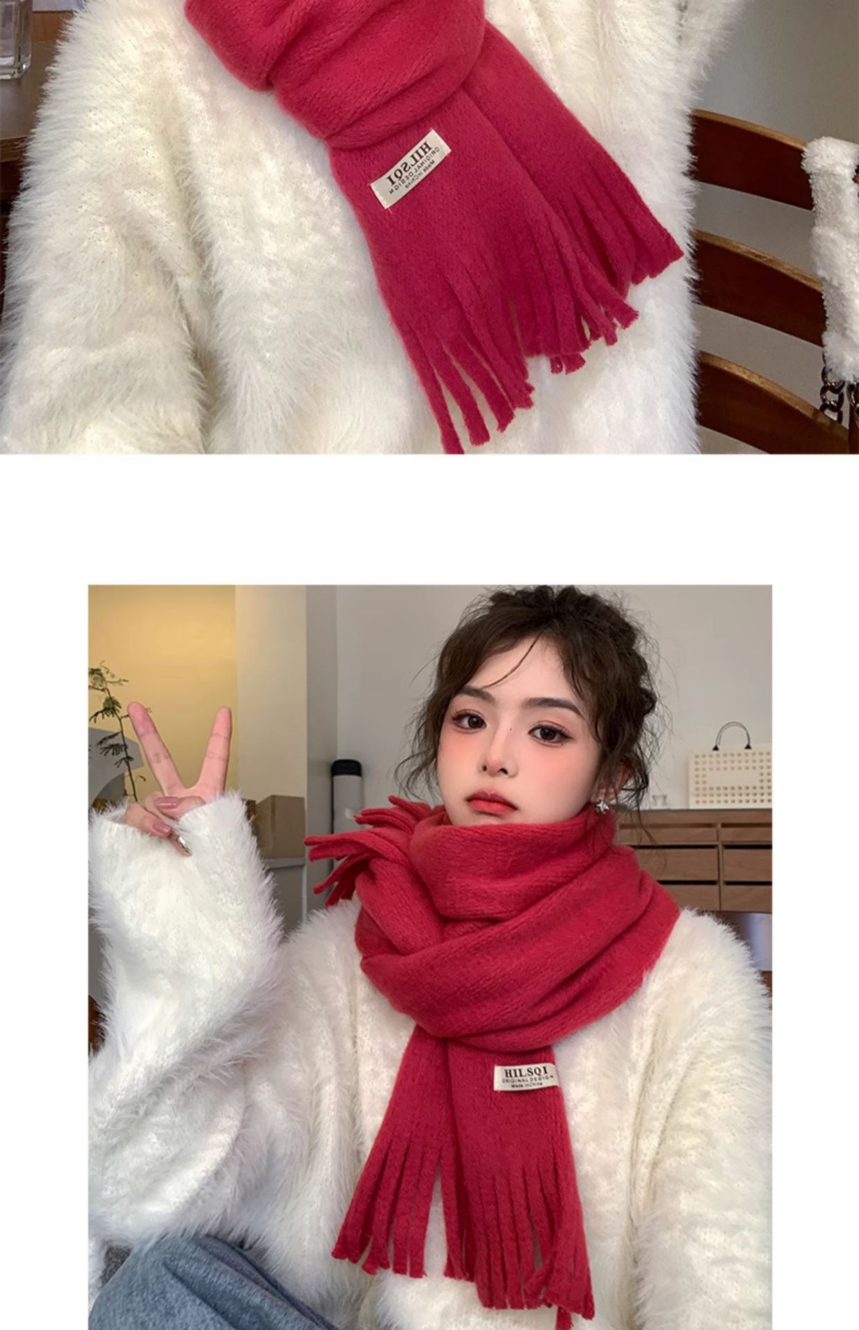 2023 새로운 단색 모직 스카프 여성용 겨울 한국식 모든 매치 숄 패션 캐시미어 두꺼운 니트 스카프스토어 가기
