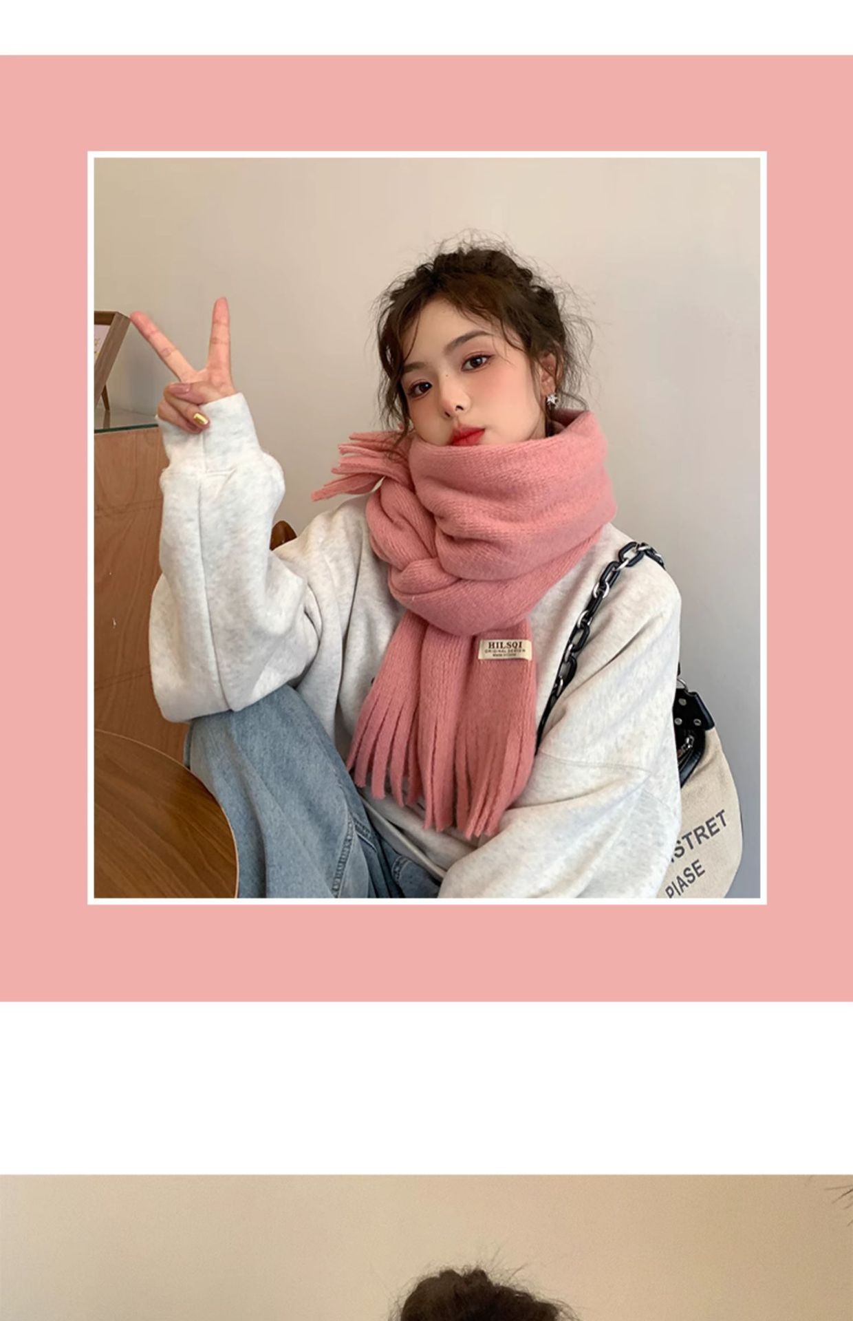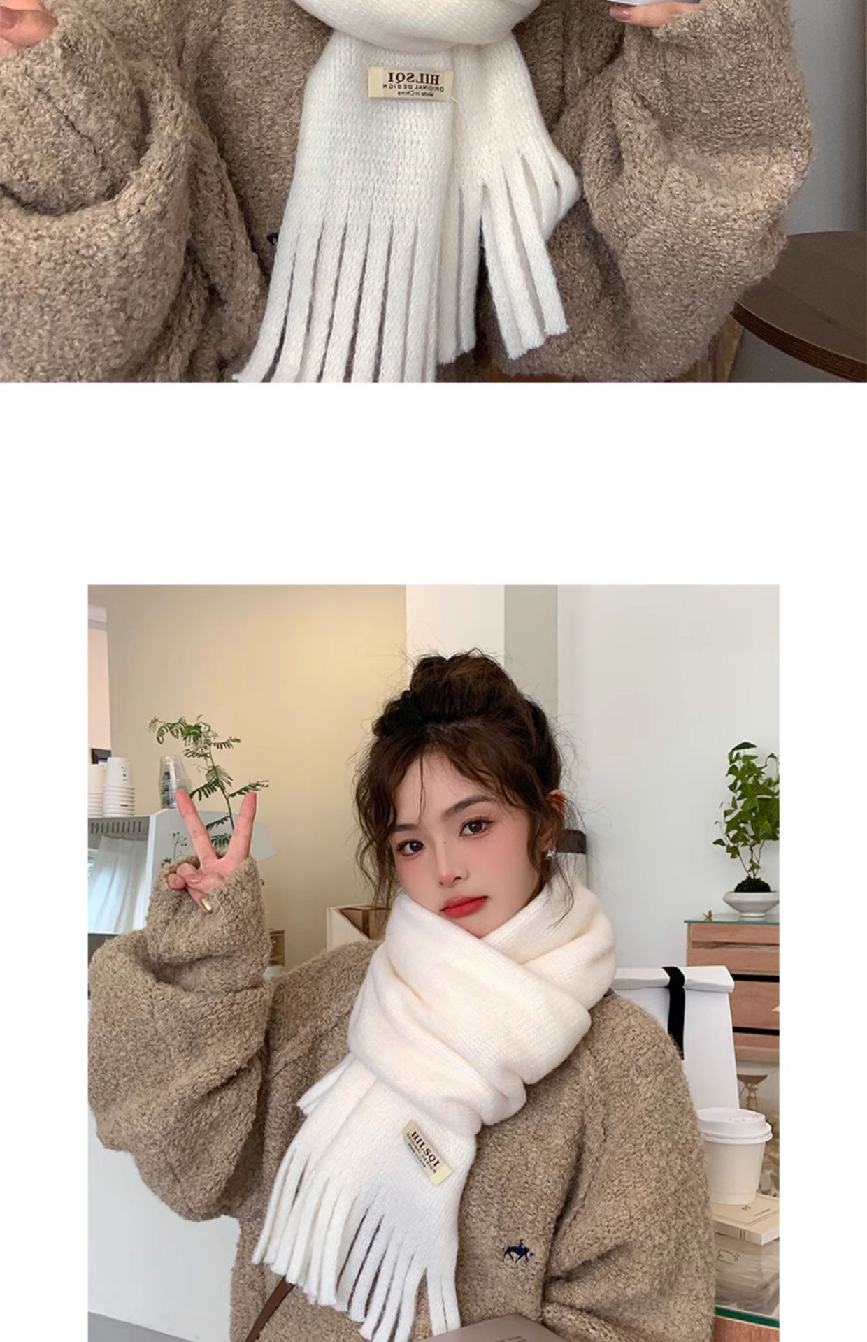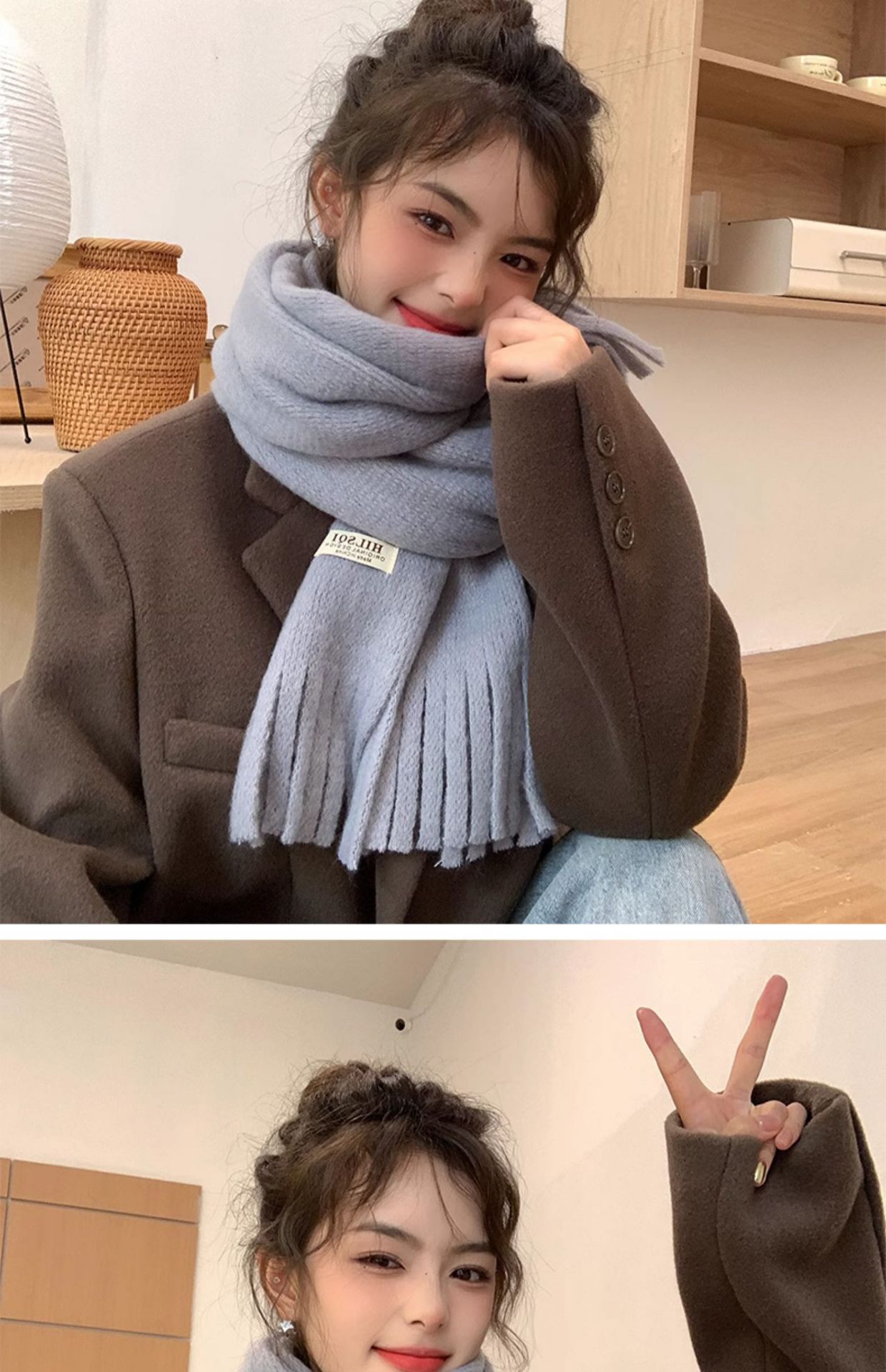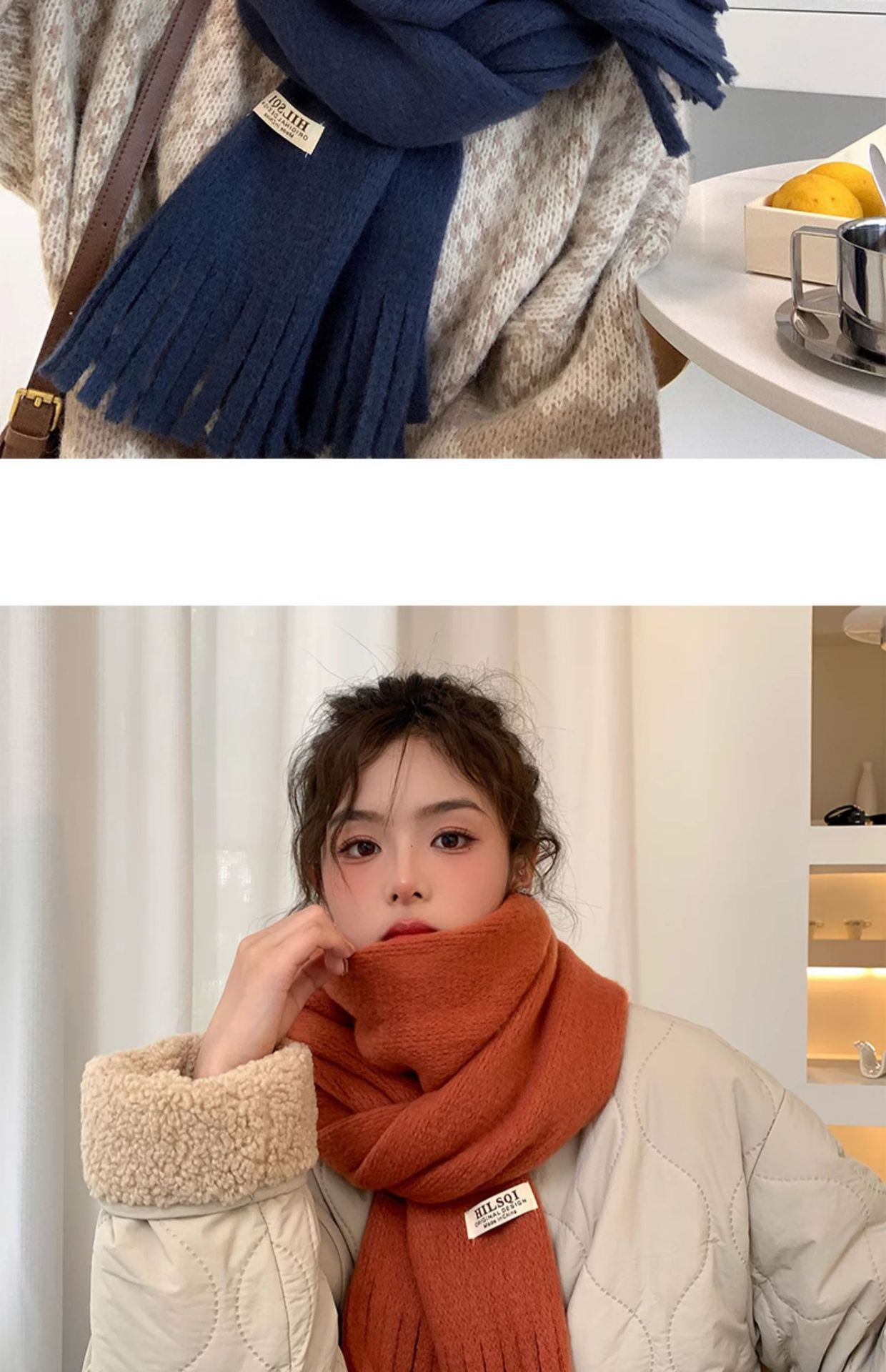 2023 새로운 단색 모직 스카프 여성용 겨울 한국식 모든 매치 숄 패션 캐시미어 두꺼운 니트 스카프스토어 가기