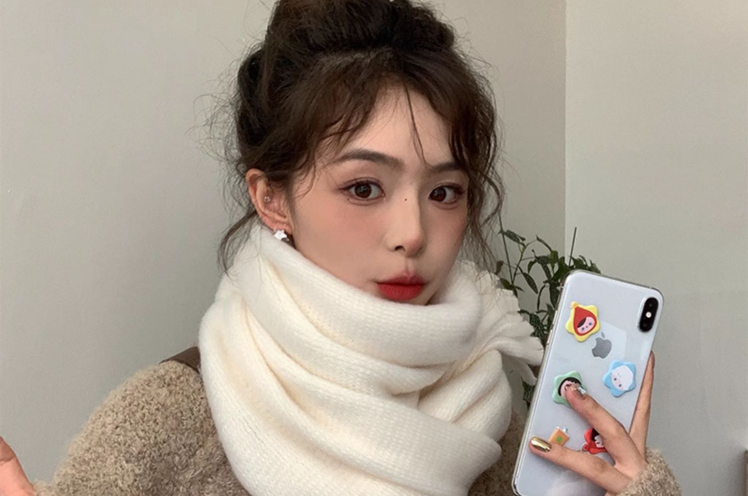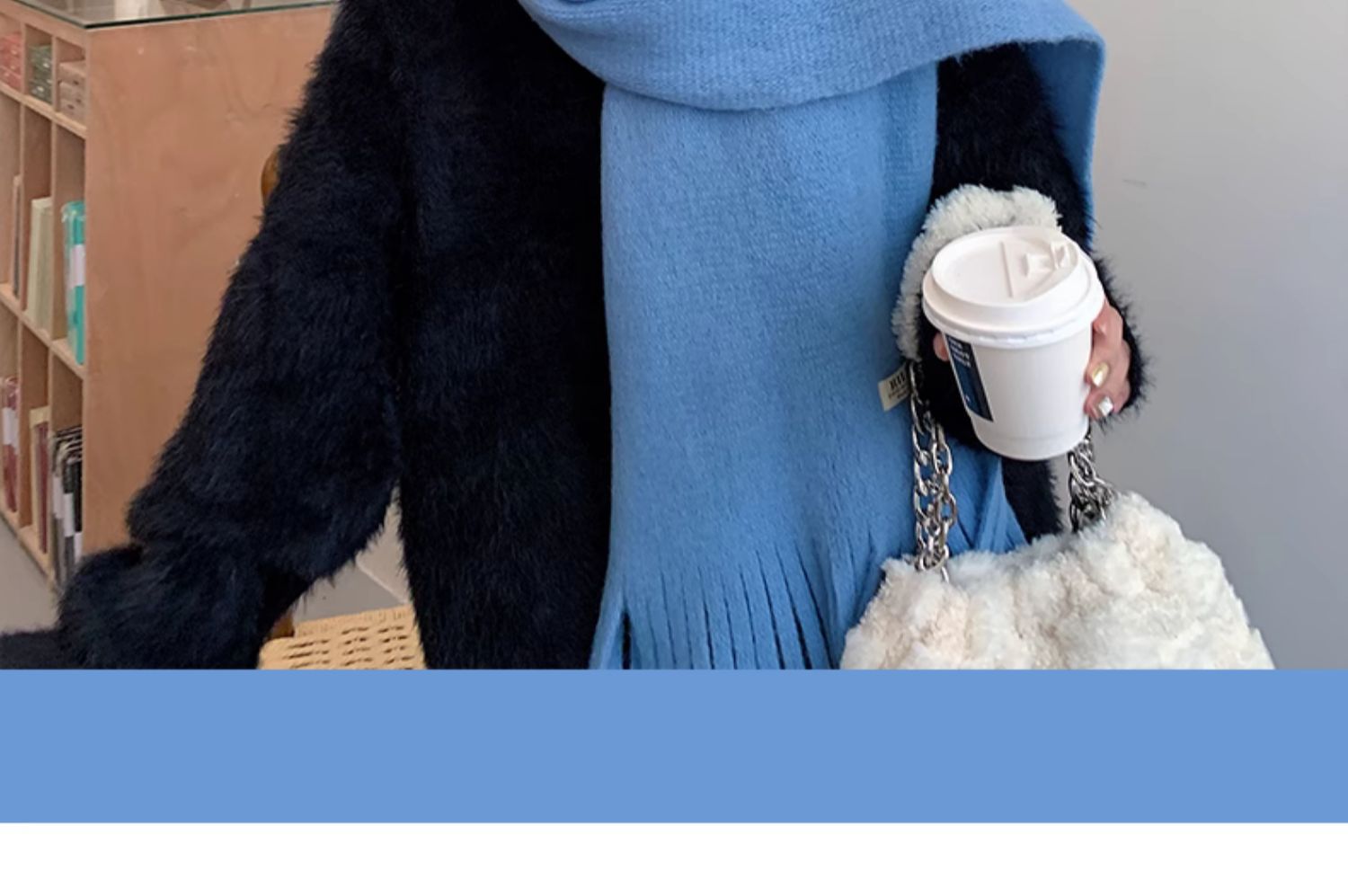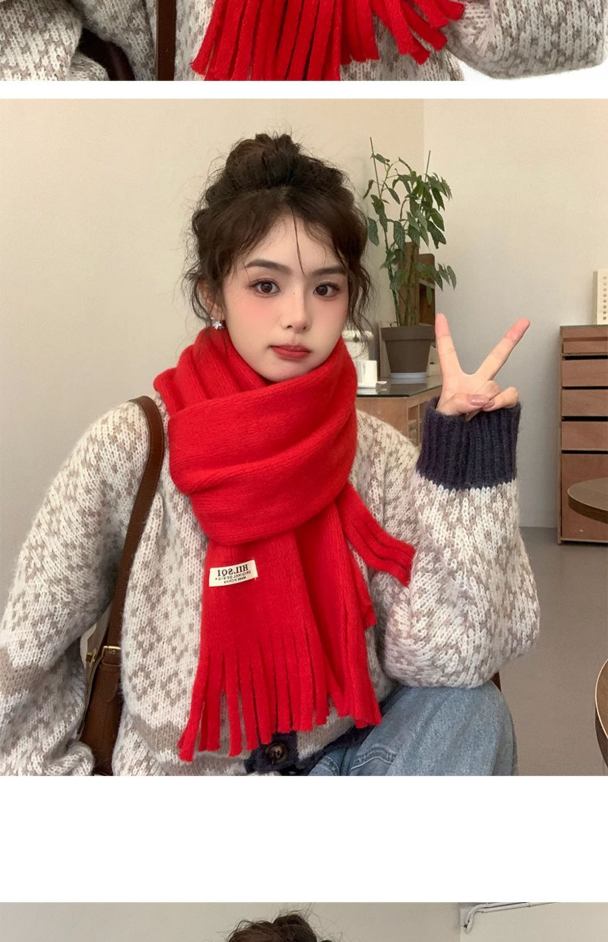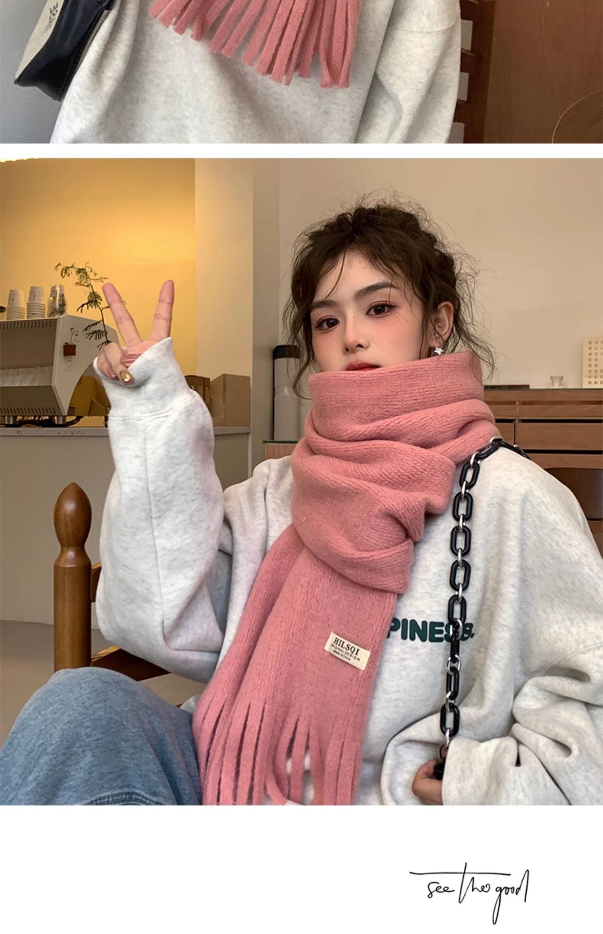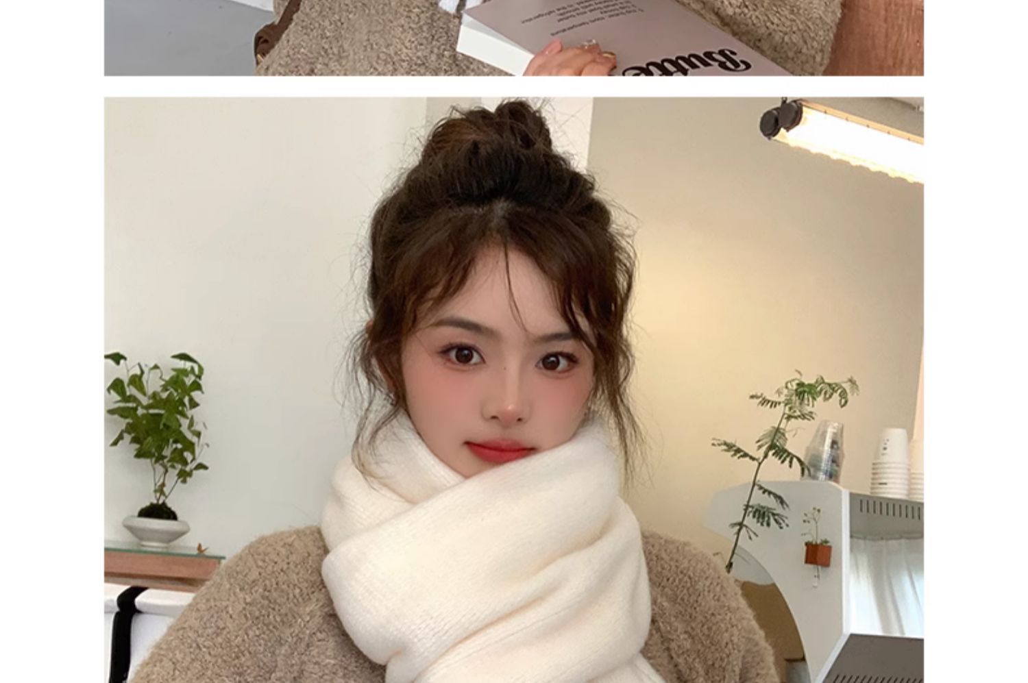 2023 새로운 단색 모직 스카프 여성용 겨울 한국식 모든 매치 숄 패션 캐시미어 두꺼운 니트 스카프스토어 가기