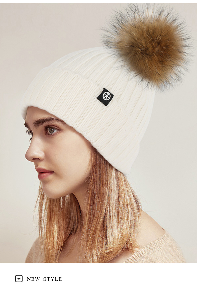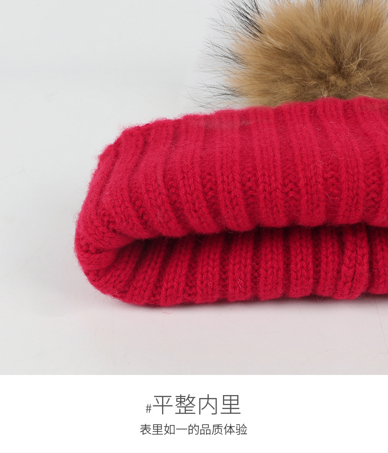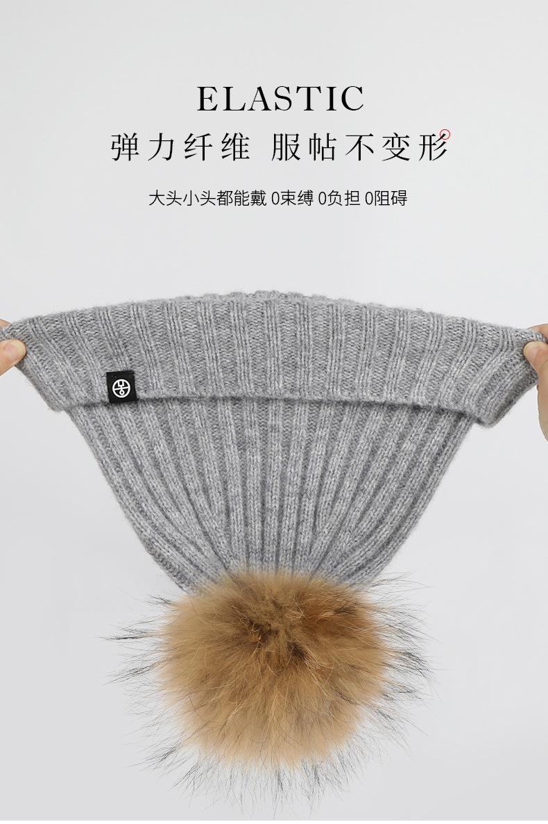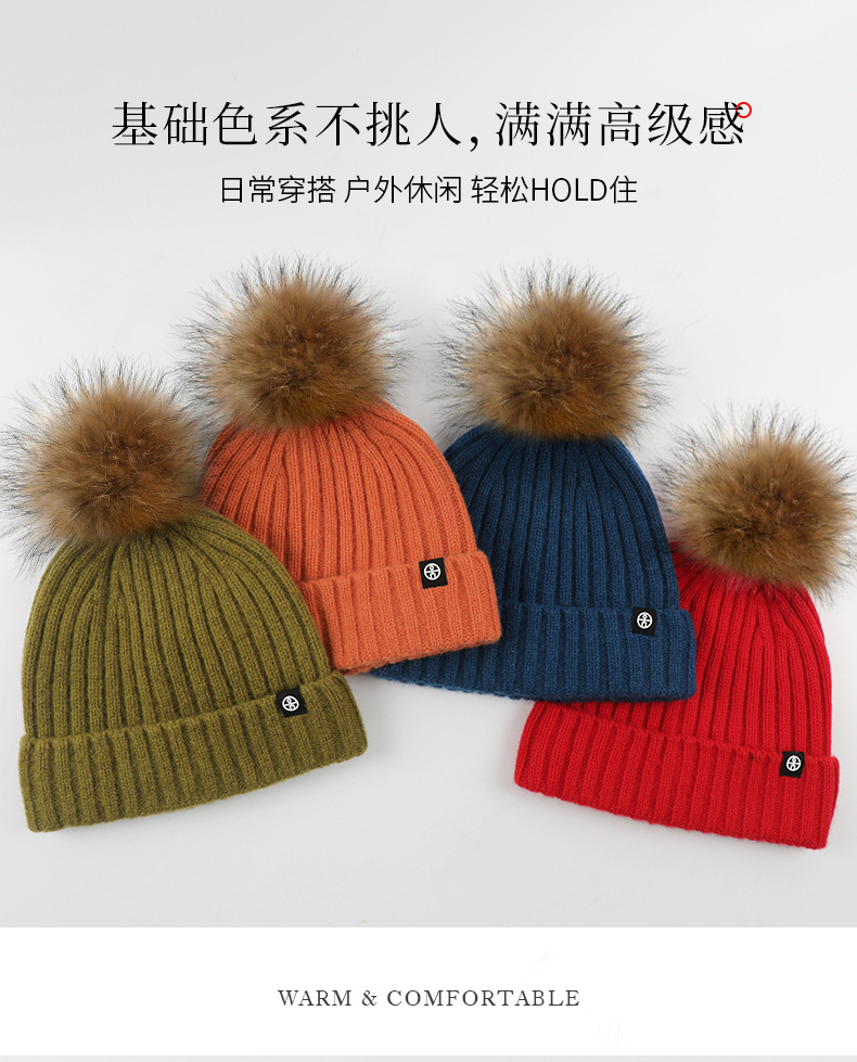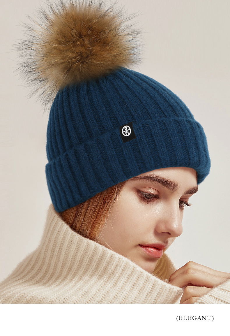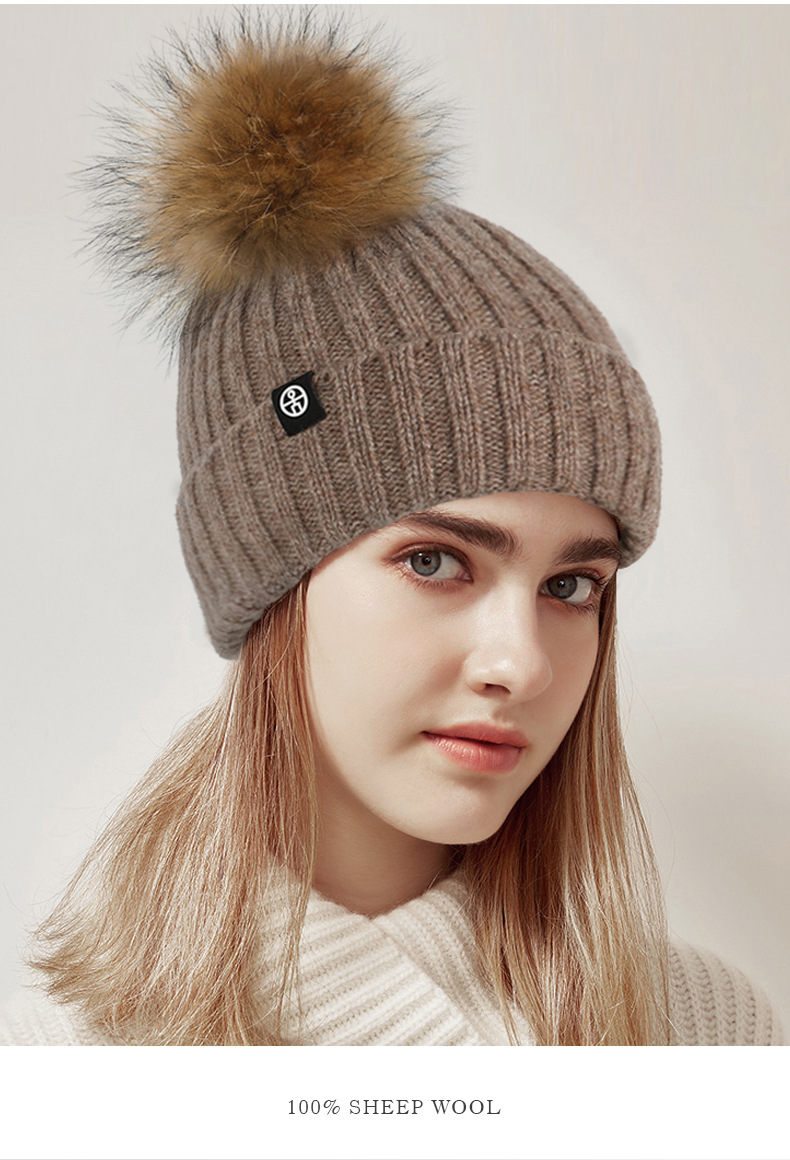 가을과 겨울 순수 울 모자 여성용 단색 모피 볼 니트 모자 야외 라이딩 방한 귀마개 머리 따뜻한 모자