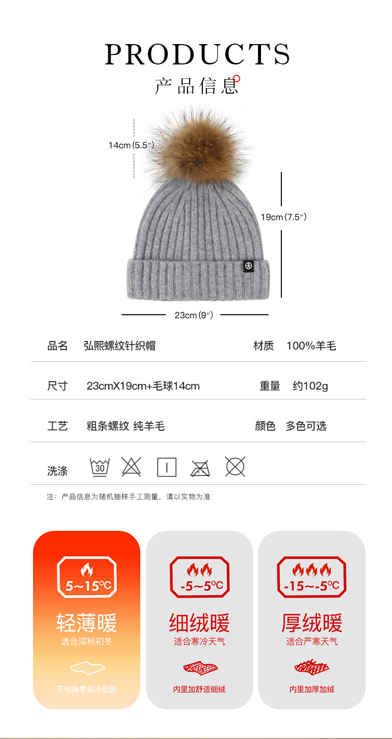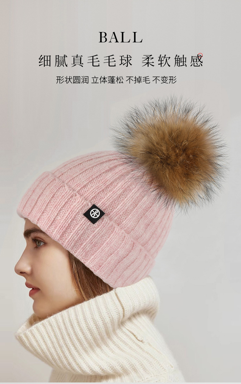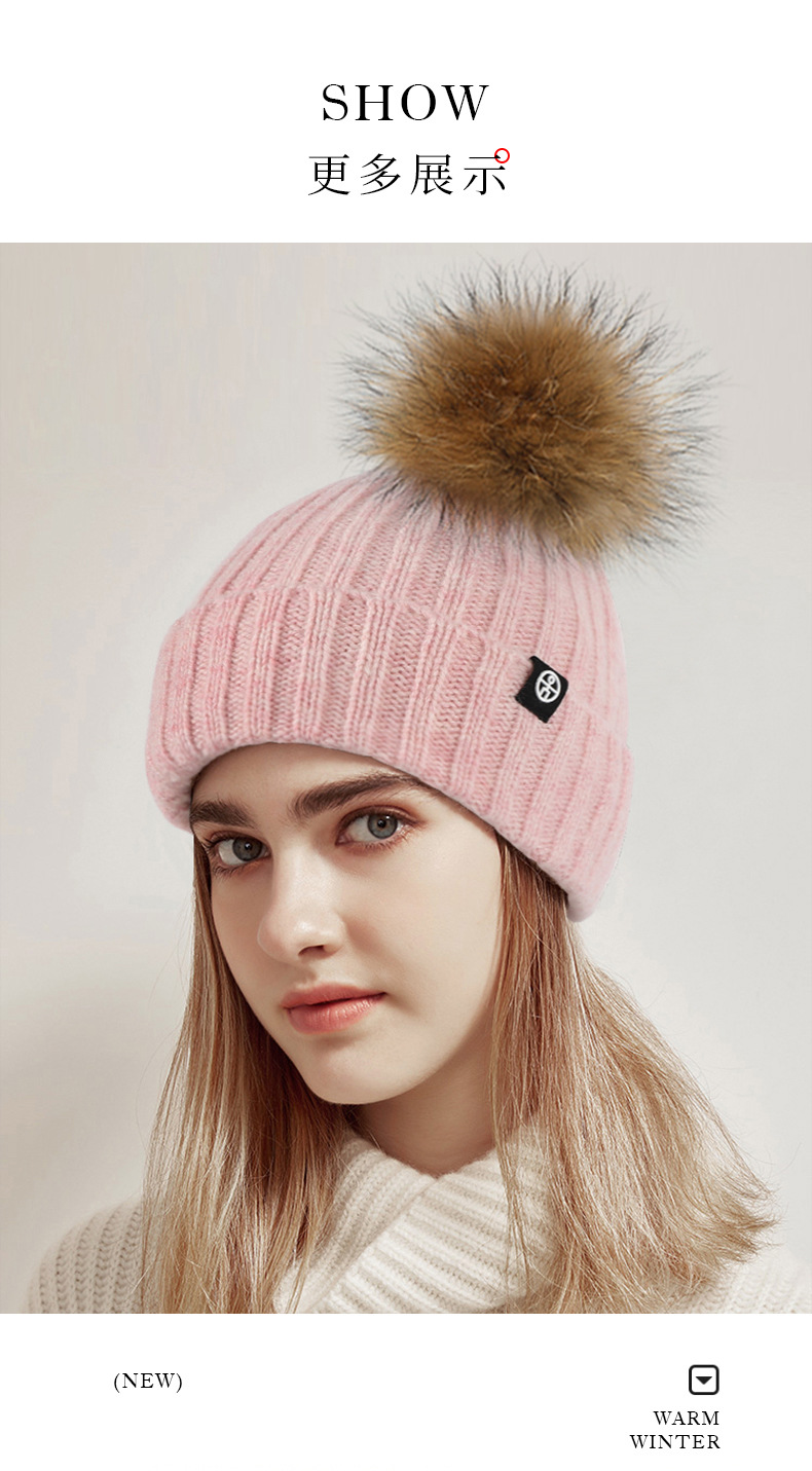 가을과 겨울 순수 울 모자 여성용 단색 모피 볼 니트 모자 야외 라이딩 방한 귀마개 머리 따뜻한 모자스토어 가기