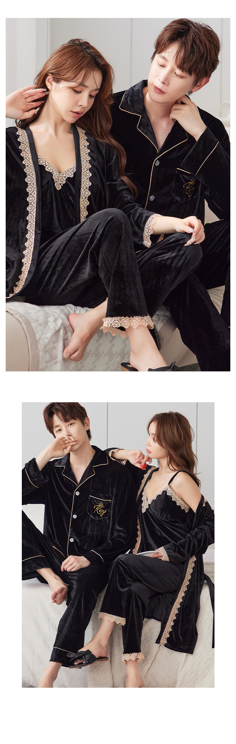 골든 벨벳 커플 잠옷 여자의 봄과 가을 카디건 남자의 긴팔 느슨한 플러스 사이즈 홈 의류 남자와 여자의 쓰리 피스 세트스토어 가기