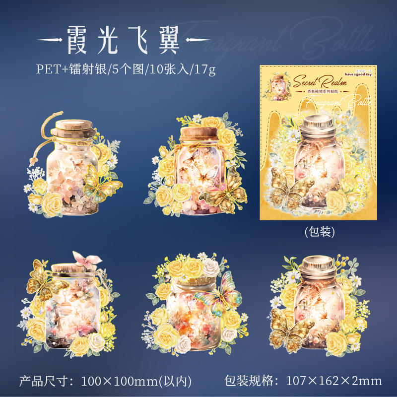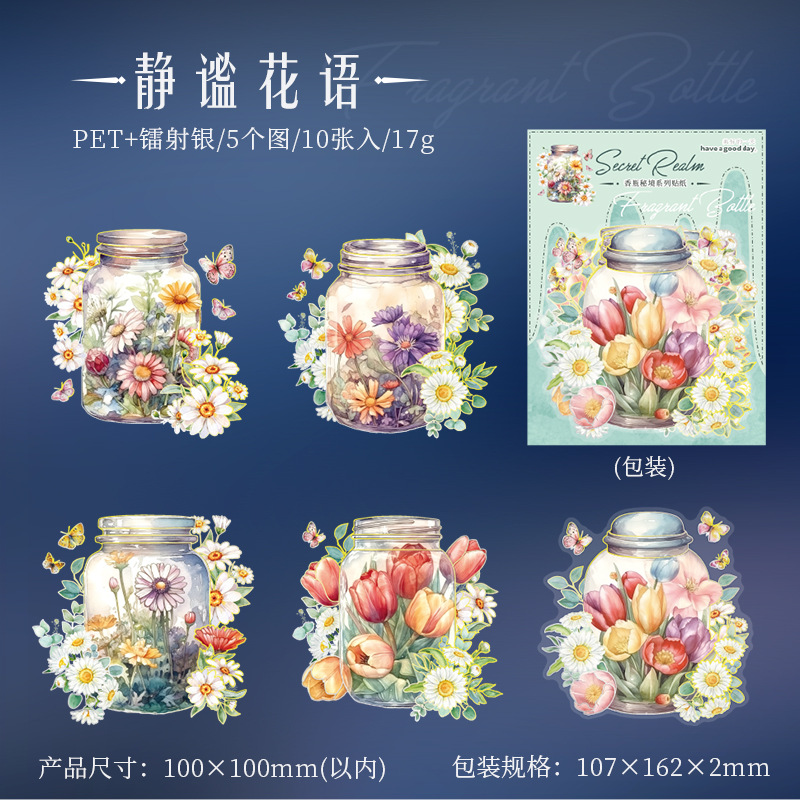 아름다운 날 스티커 팩 향기로운 병 비밀 영역 시리즈 스테레오 레이저 실버 손 계정 재료 장식 콜라주 6스토어 가기