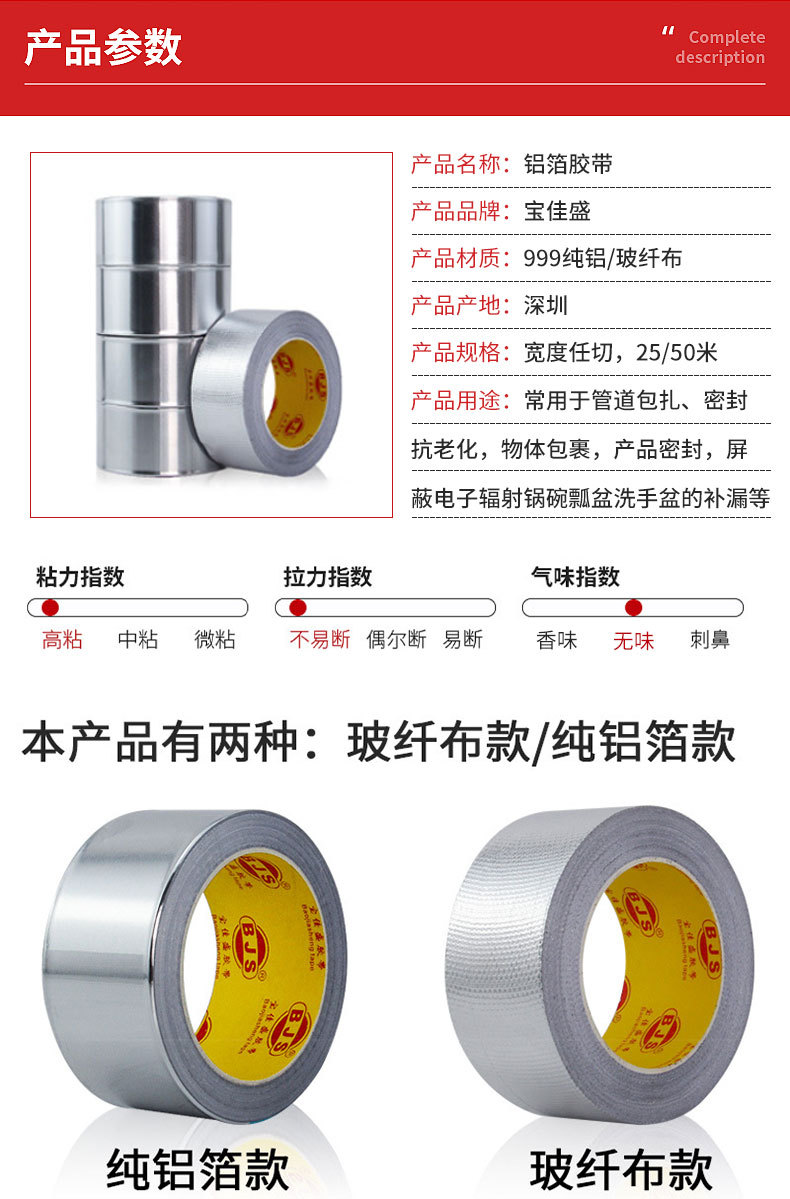 알루미늄 호일 테이프 고온 내성 자외선 차단제 내화 방수 노화 방지 지붕 단열 차폐 강하고 약한 전기 주석 호일 테이프
