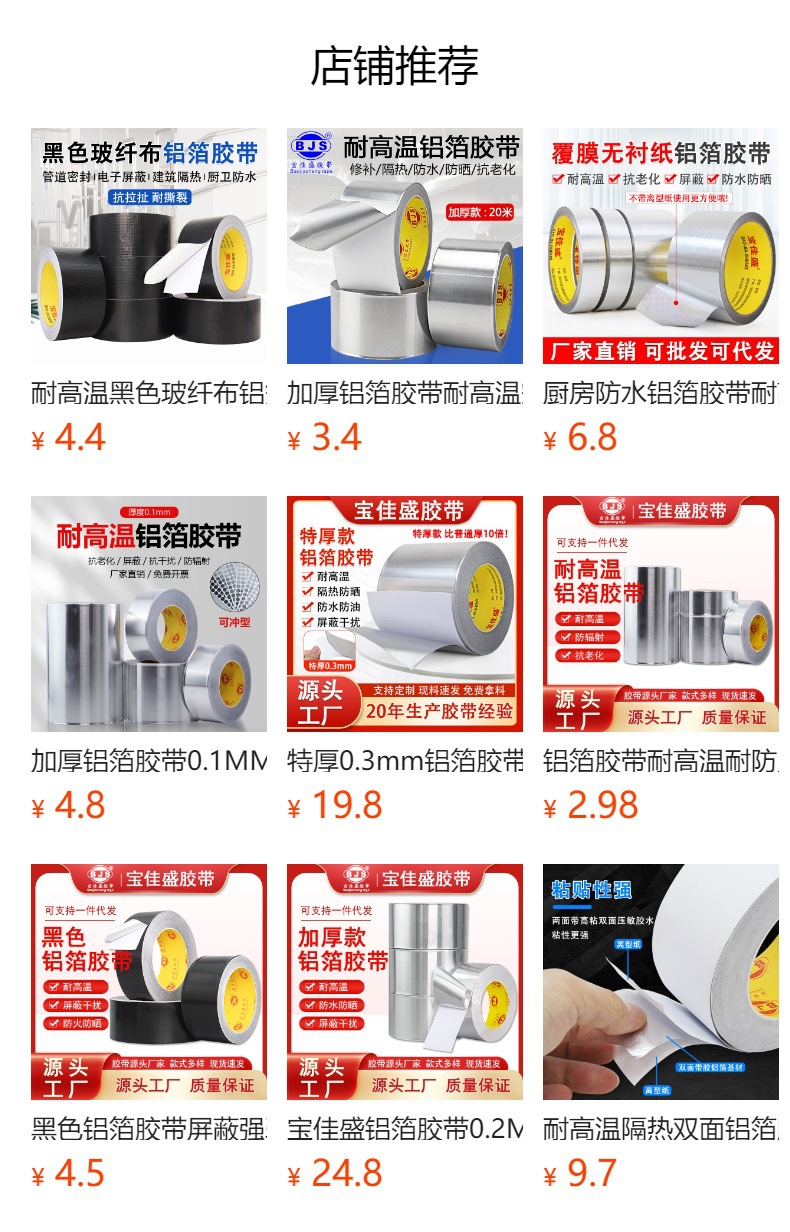 알루미늄 호일 테이프 고온 내성 자외선 차단제 내화 방수 노화 방지 지붕 단열 차폐 강하고 약한 전기 주석 호일 테이프스토어 가기