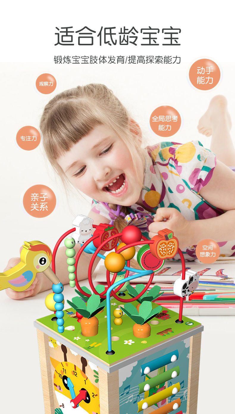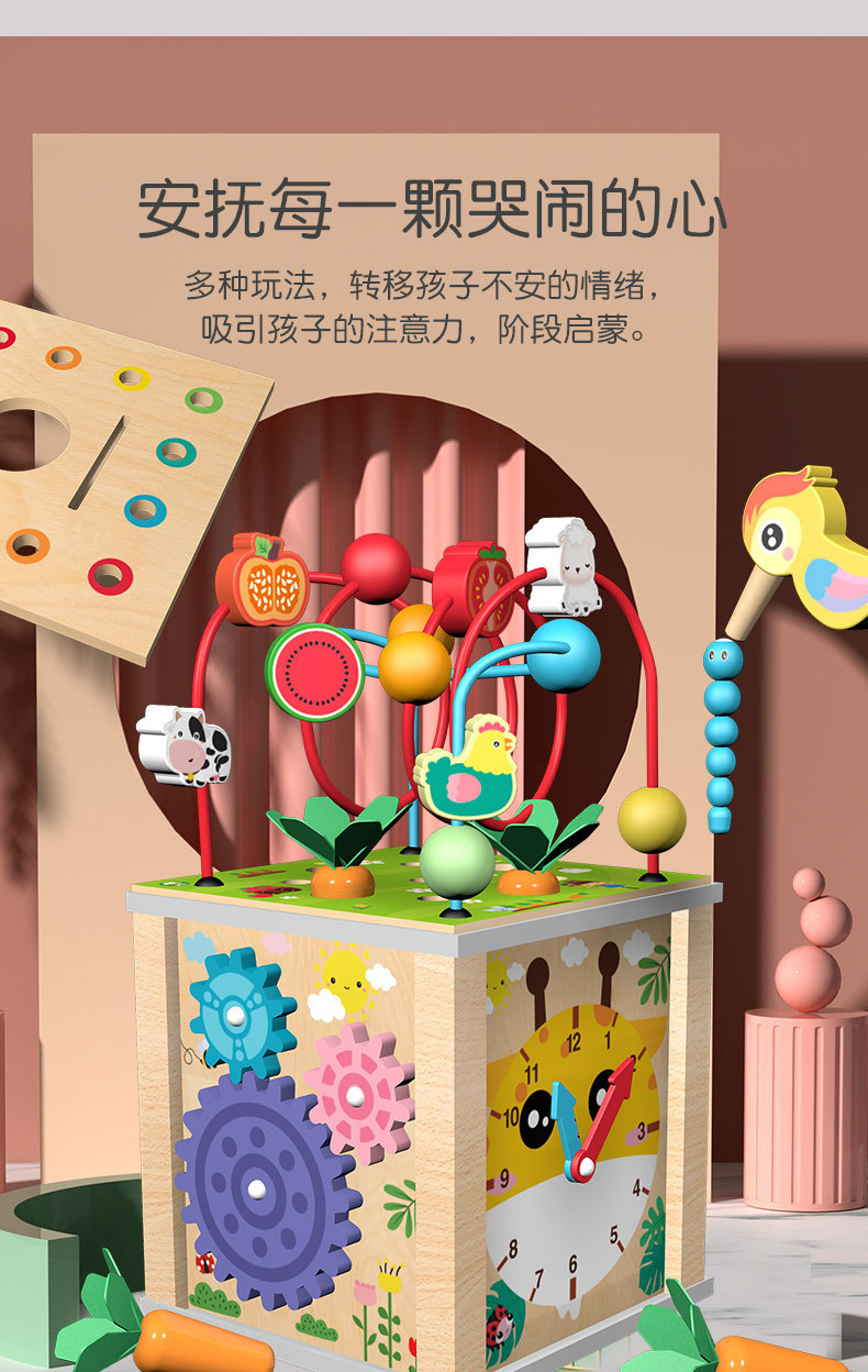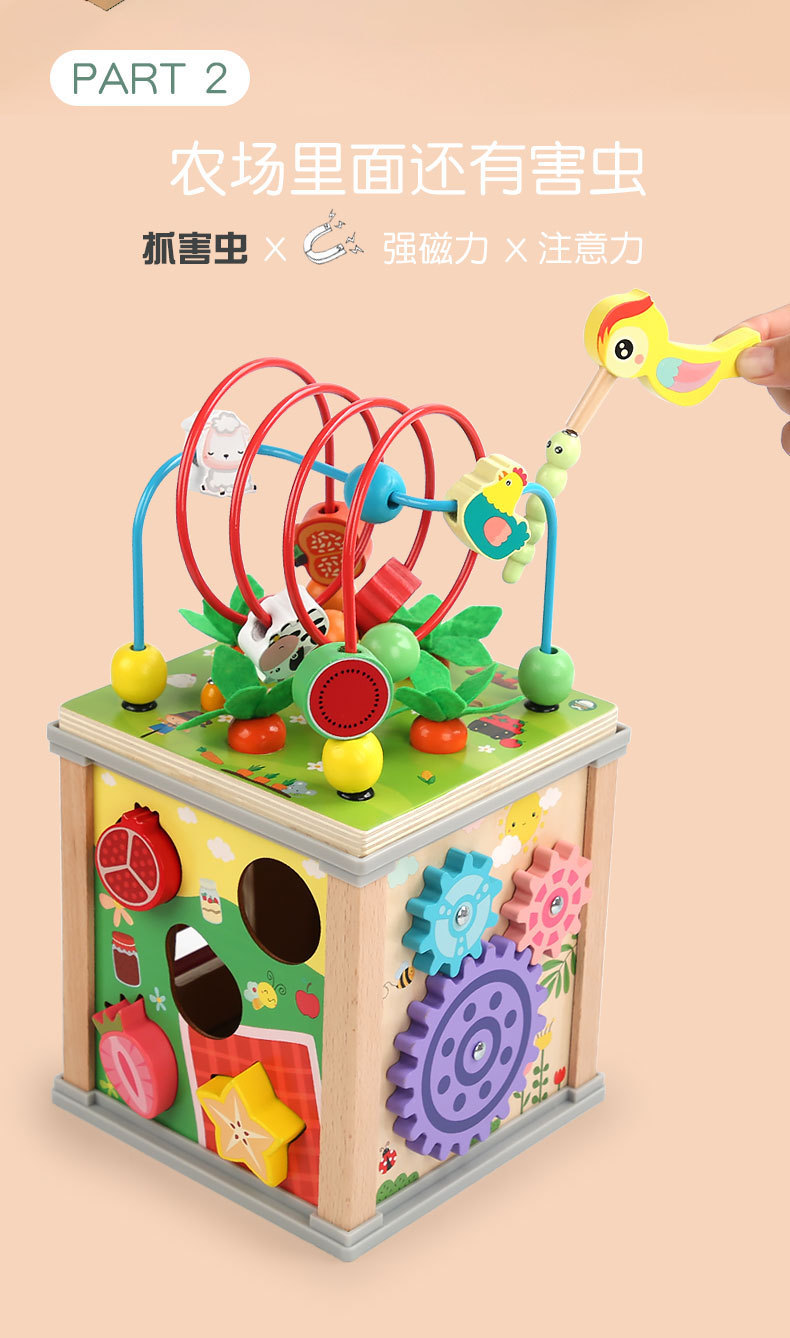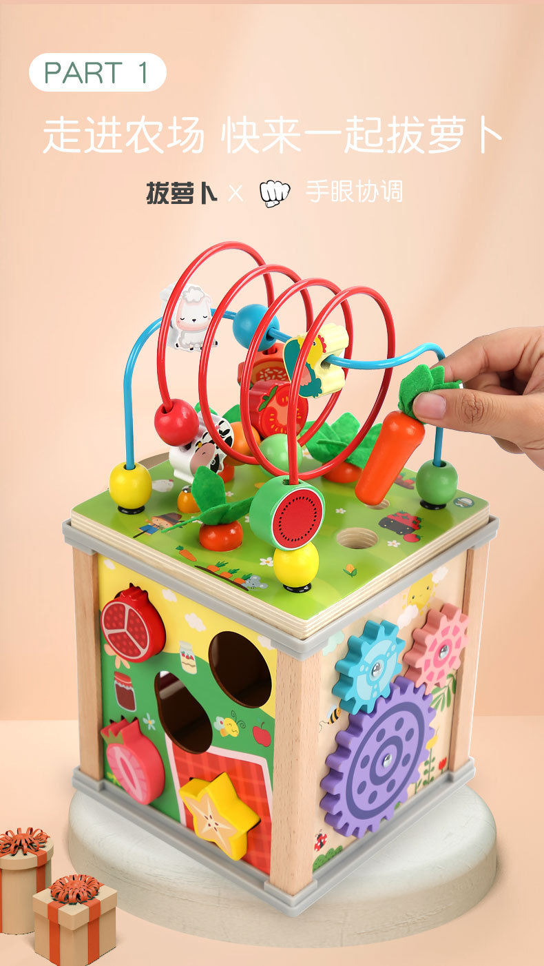 나무 어린이 당기는 무, 벌레를 잡고 피아노 모양을 맞추는 다기능 10-in-one 구슬 보물상자 교육용 장난감스토어 가기