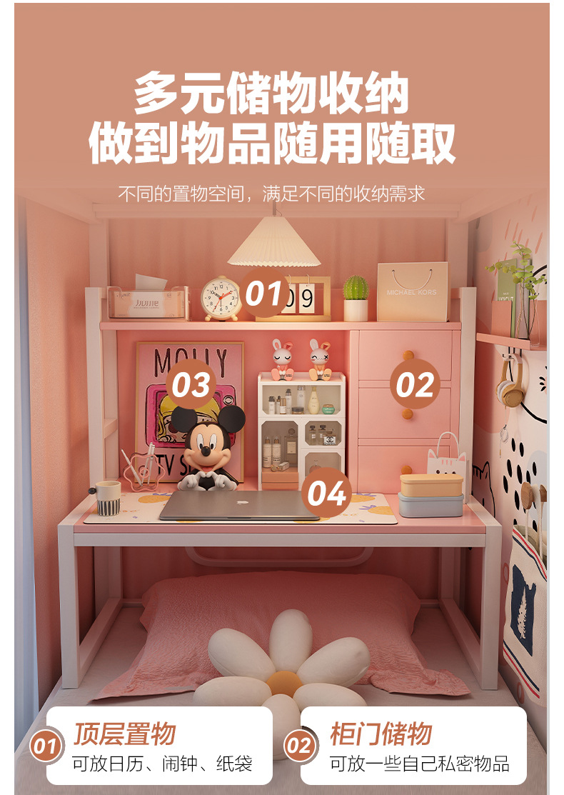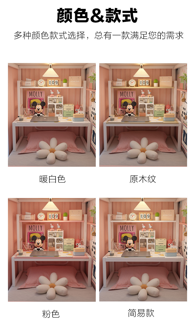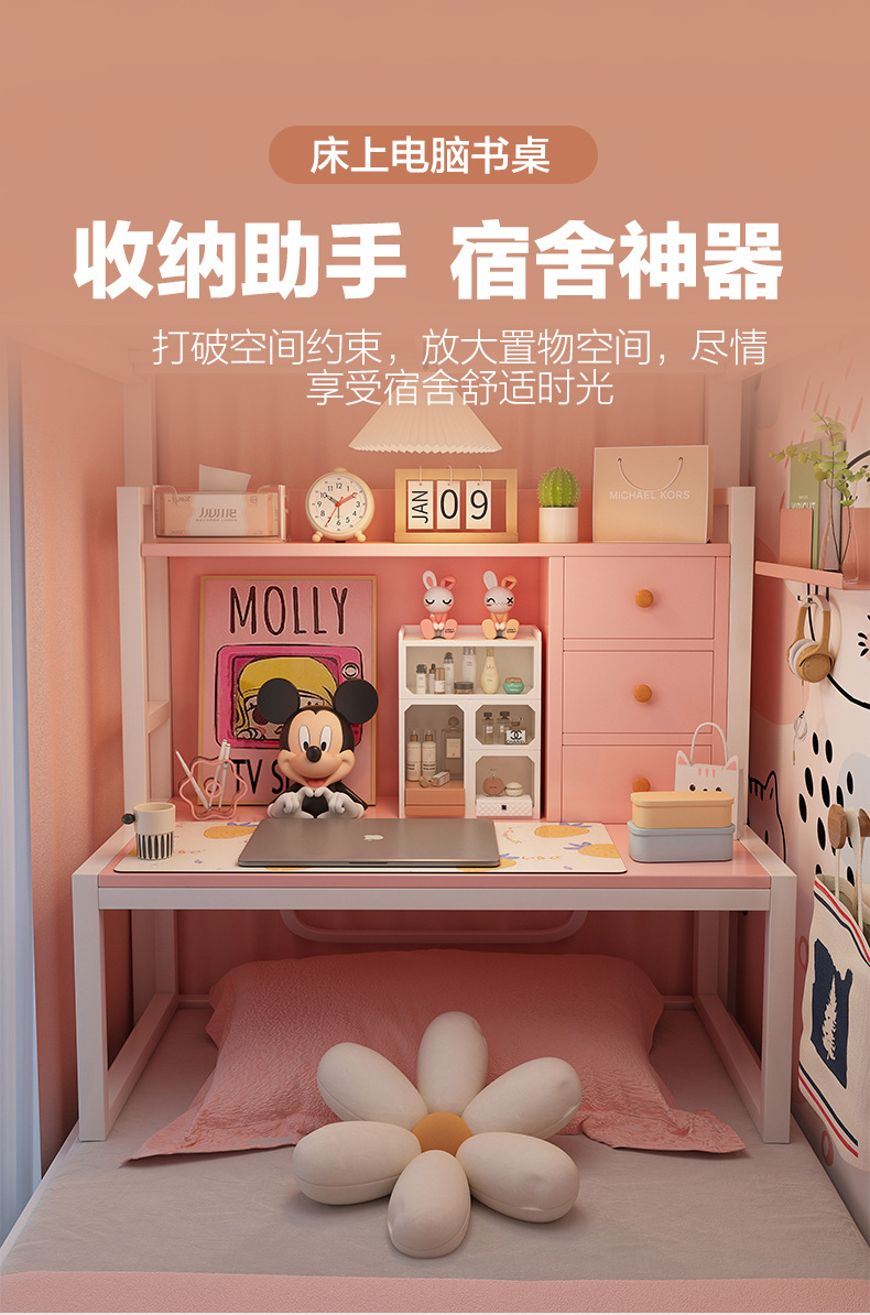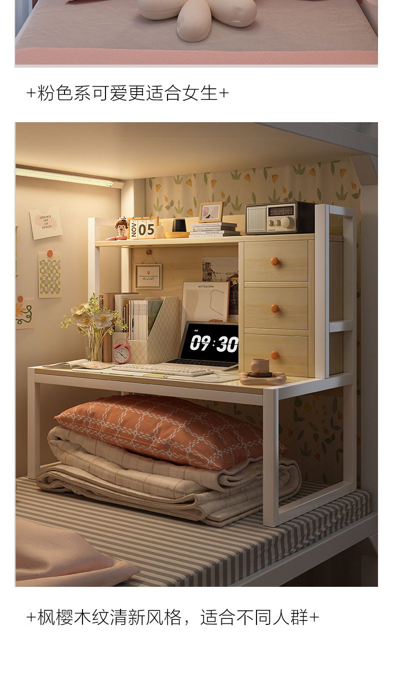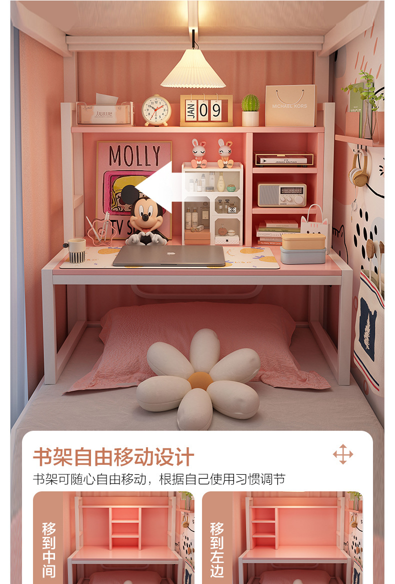 침대 위 컴퓨터 책상 핑크색 책상 여학생 책상 상하단 겸용 공부 책상 기숙사 필수품