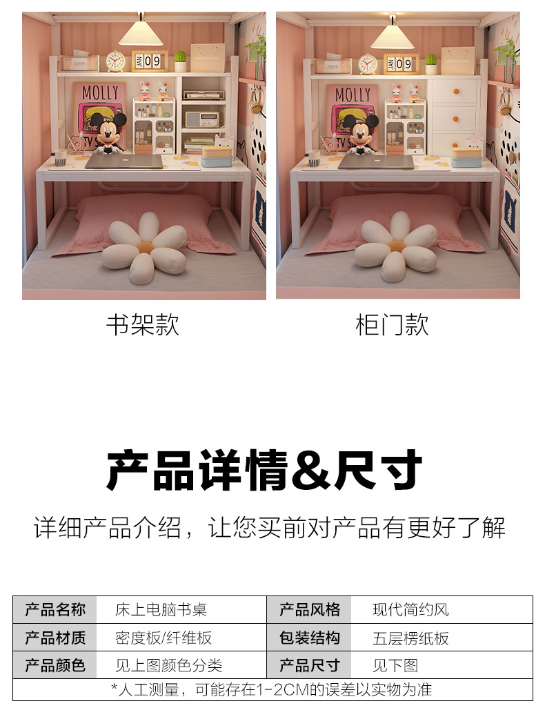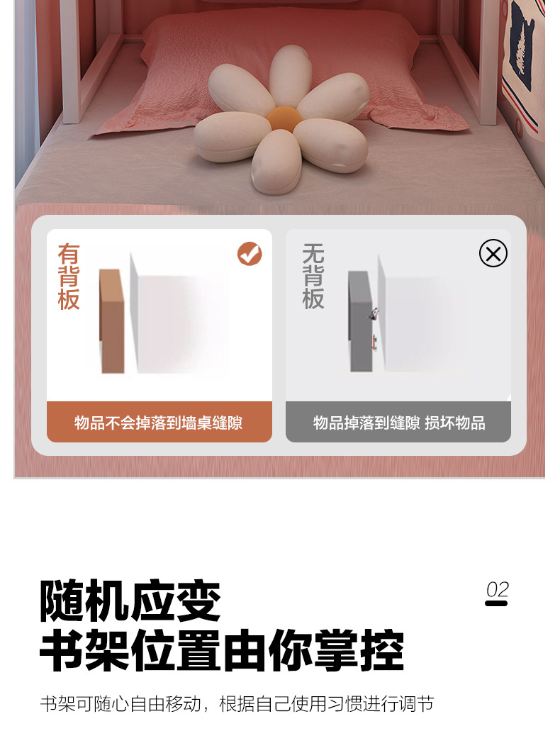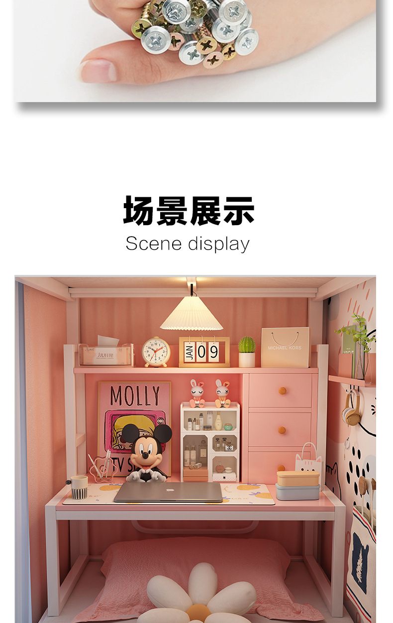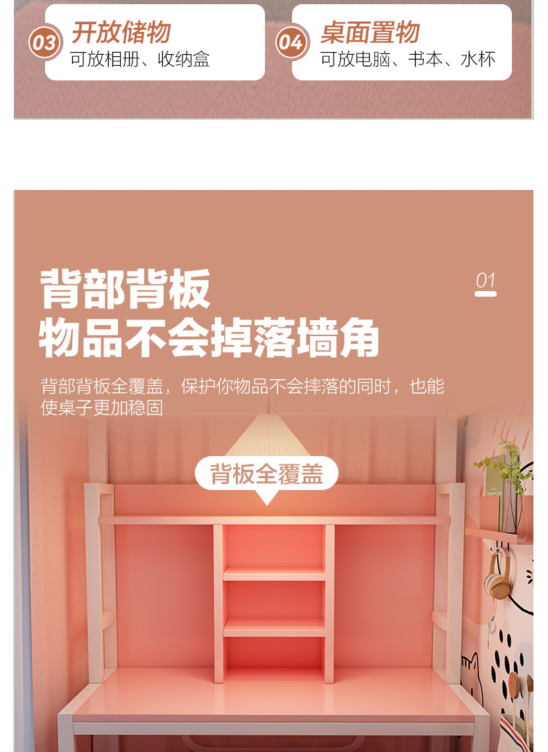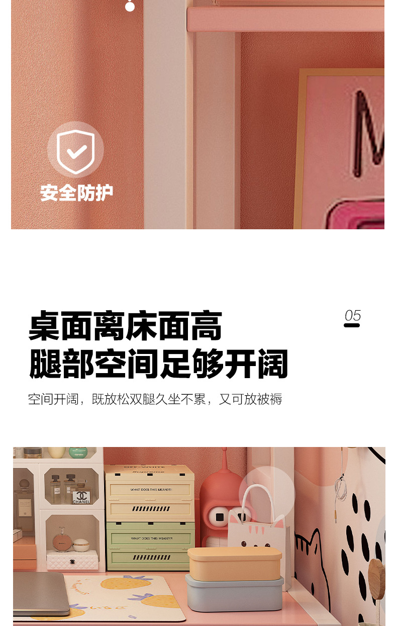 침대 위 컴퓨터 책상 핑크색 책상 여학생 책상 상하단 겸용 공부 책상 기숙사 필수품