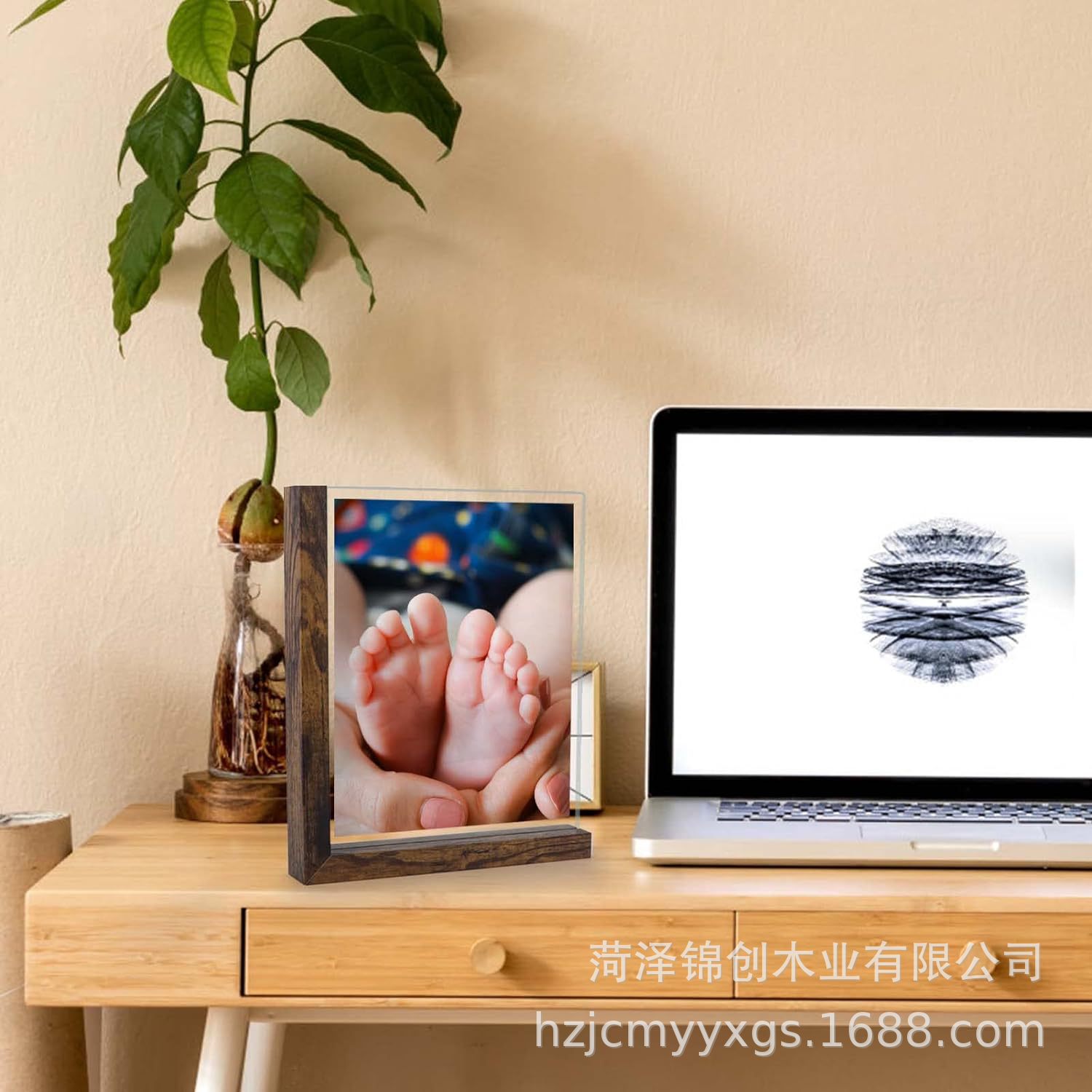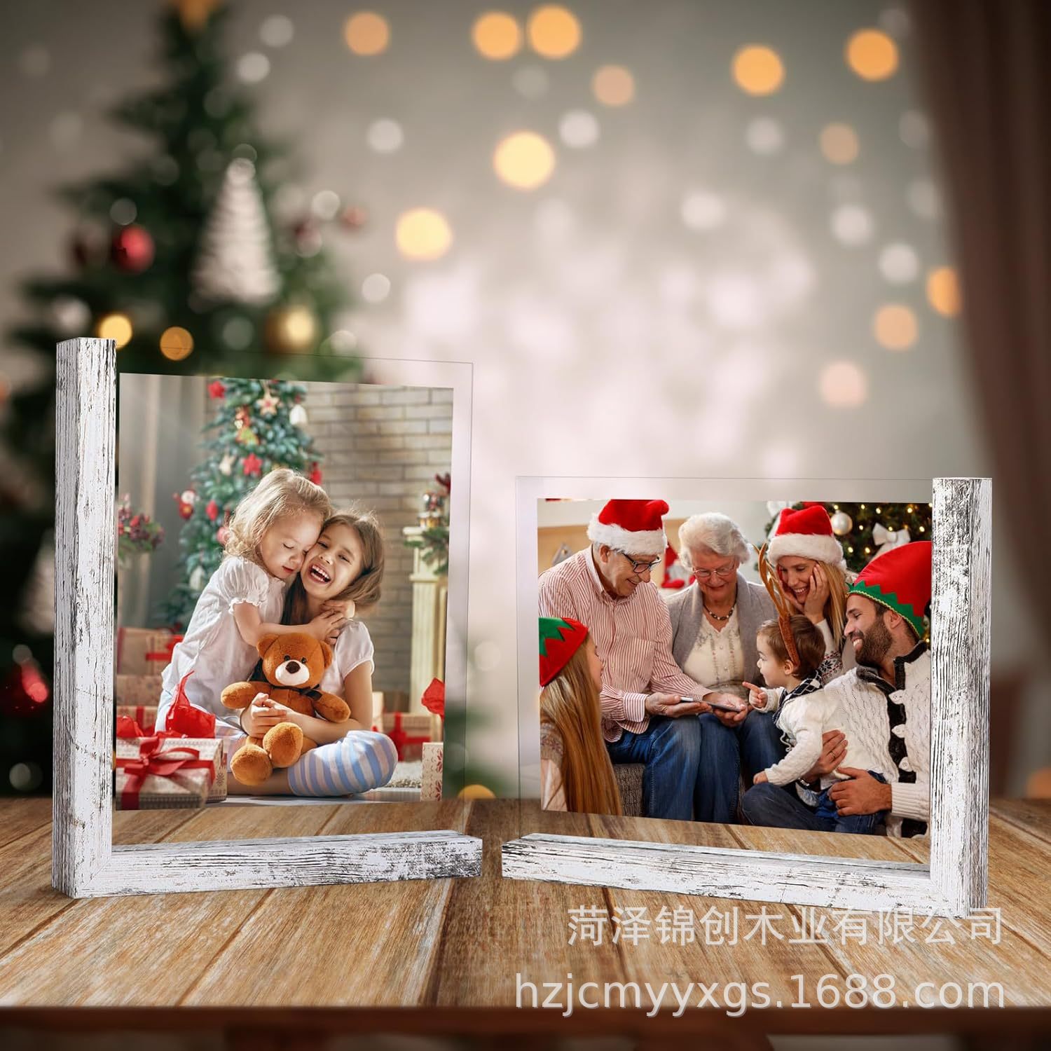 크로스 보더 나무 사진 프레임 검은 나무 L 자형 기반 유리 양면 디스플레이 사진 그림 테이블스토어 가기