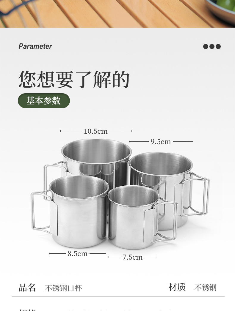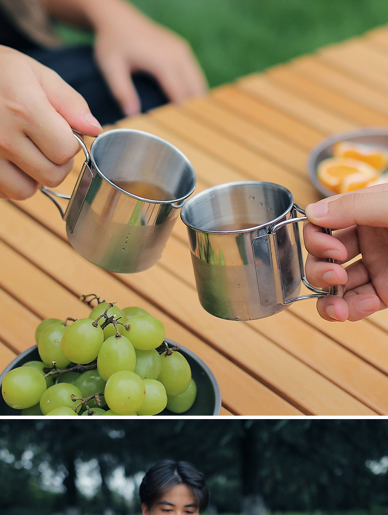 304 스테인레스 물컵 손잡이 야외 캠핑 휴대용 맥주컵 입 컵 접이식 손잡이 컵 4 종 세트스토어 가기