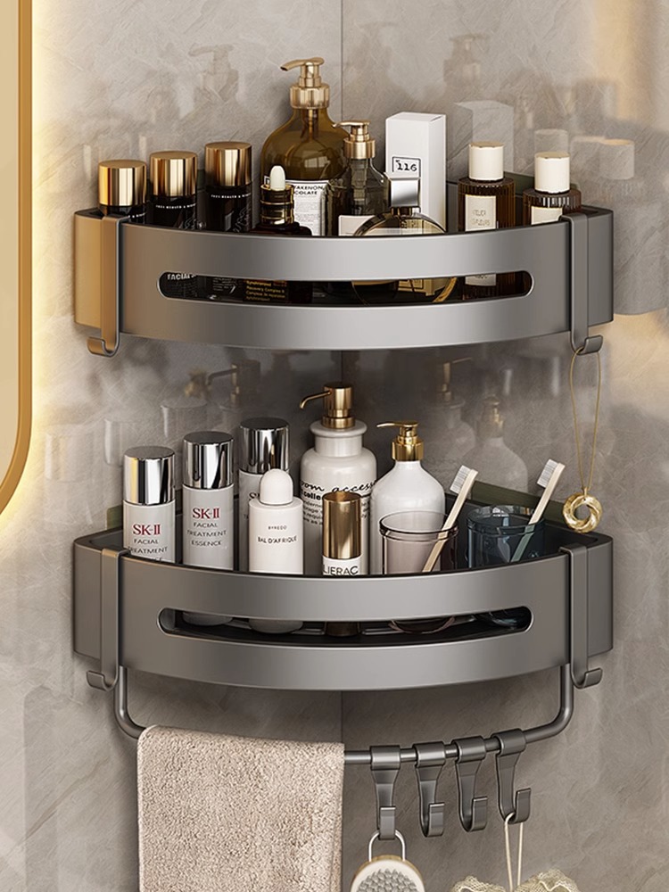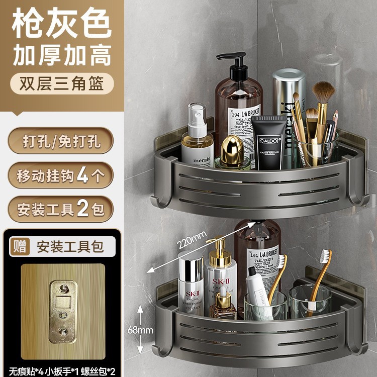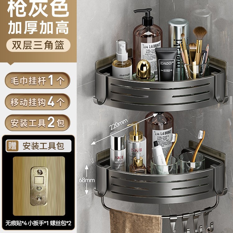 건 그레이 공간 알루미늄 욕실 수납 랙 펀치 프리 욕실 벽걸이 삼각형 바구니 욕실 걸이 랙 단일 레이어 상승
