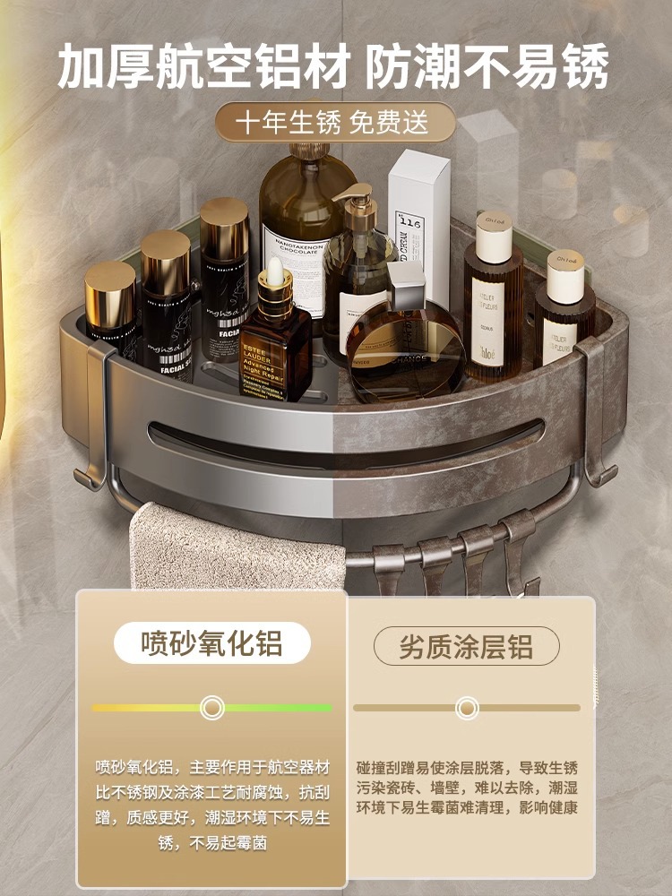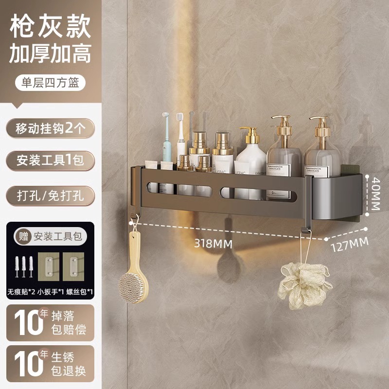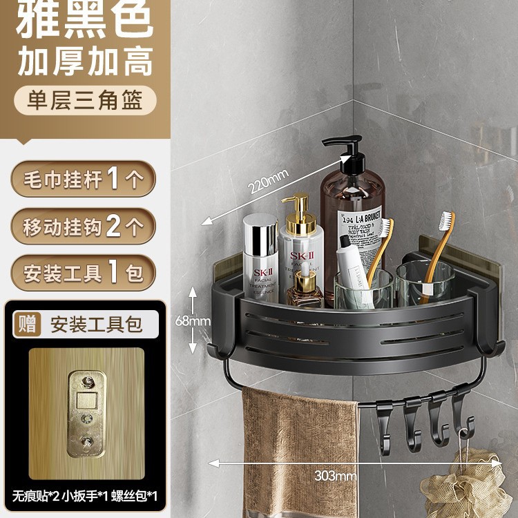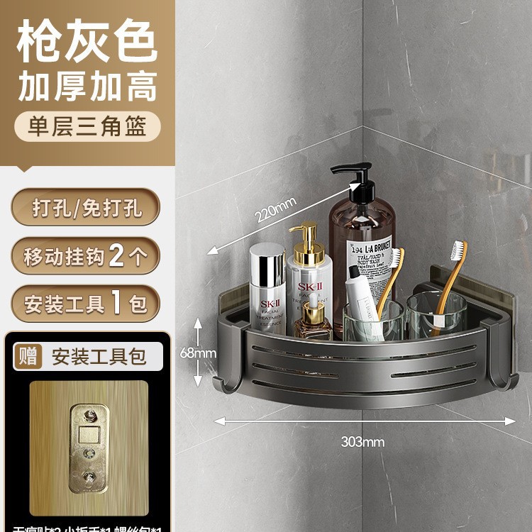 건 그레이 공간 알루미늄 욕실 수납 랙 펀치 프리 욕실 벽걸이 삼각형 바구니 욕실 걸이 랙 단일 레이어 상승스토어 가기