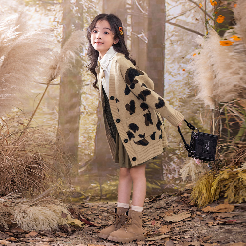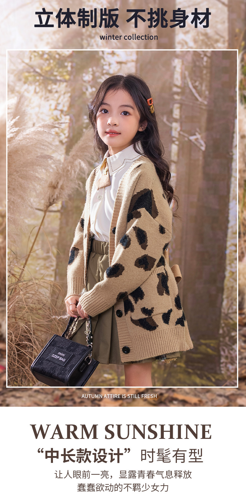 여아용 스웨터 가디건 가을 겨울 2025 신상 아동용 코트 스타일리시한 니트 코트 가을 중간 길이 아동복스토어 가기