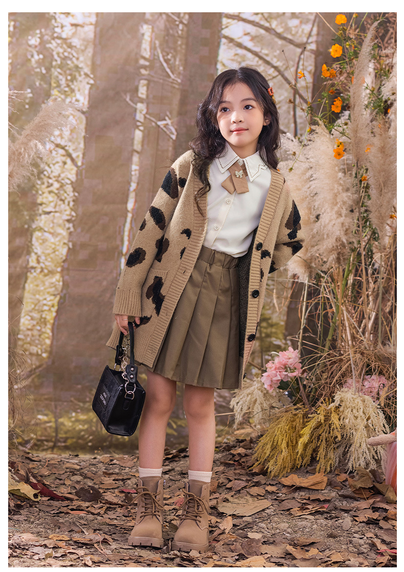 女童套装裙2024春秋装新款童装开衫毛衣外套儿童衬衫百褶裙三件套