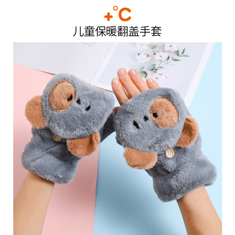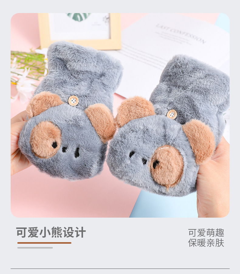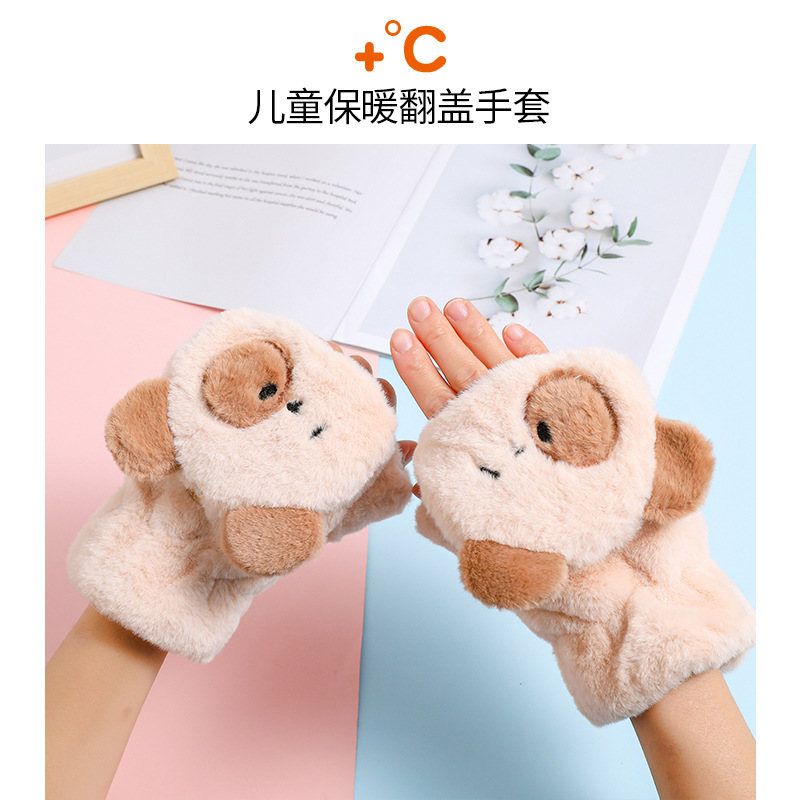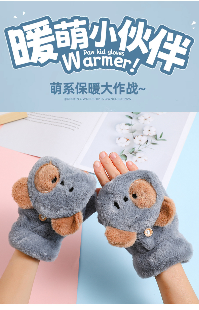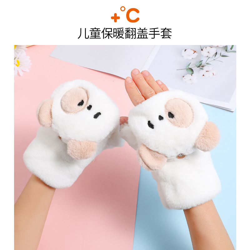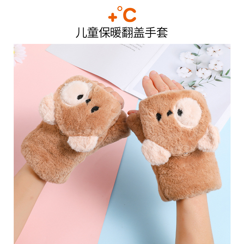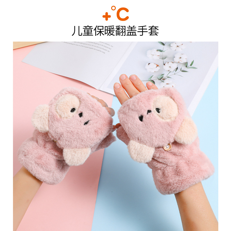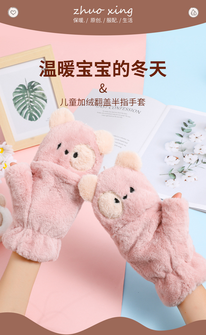 귀여운 어린이 플립 반 손가락 장갑 여자의 겨울 신학생 쓰기 사무실 따뜻한 부동액 플러시 승마 남자스토어 가기