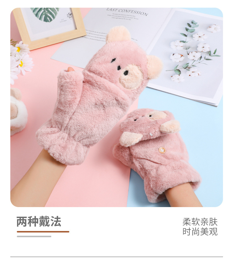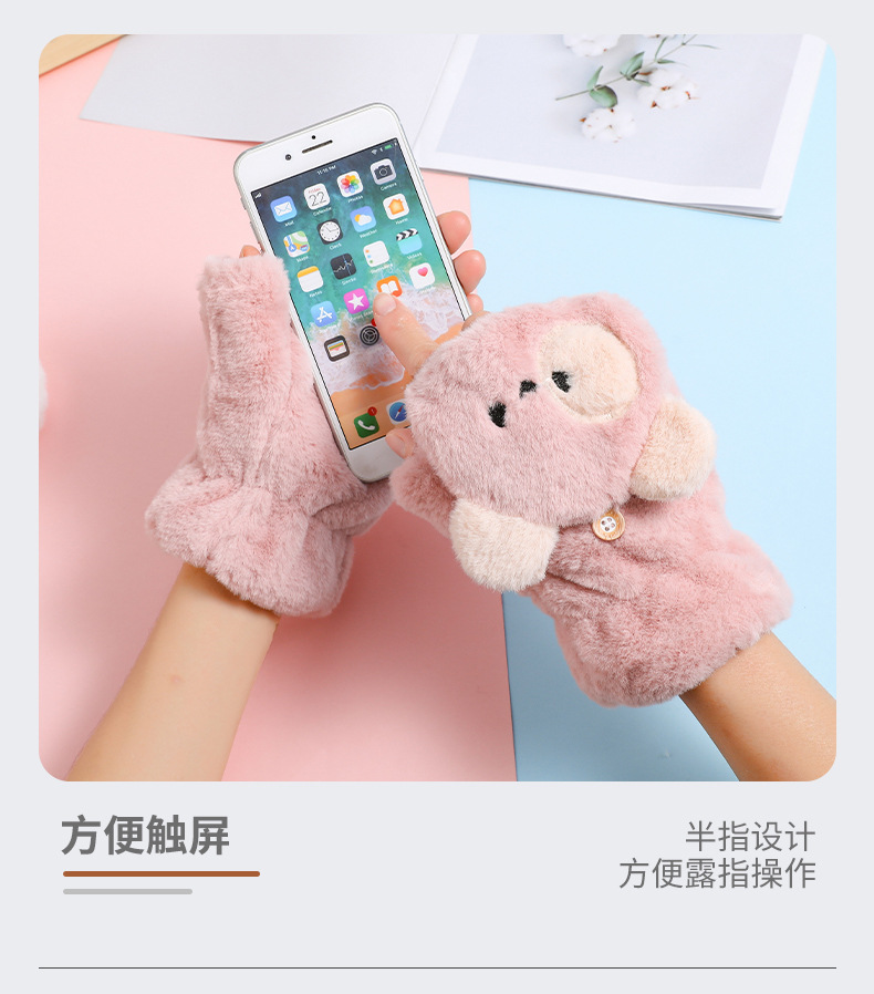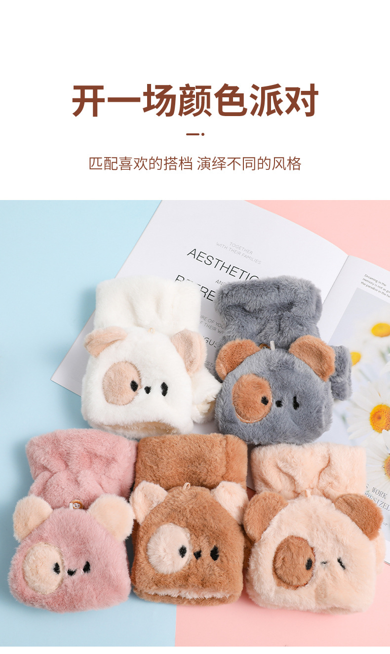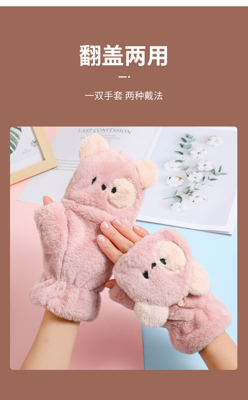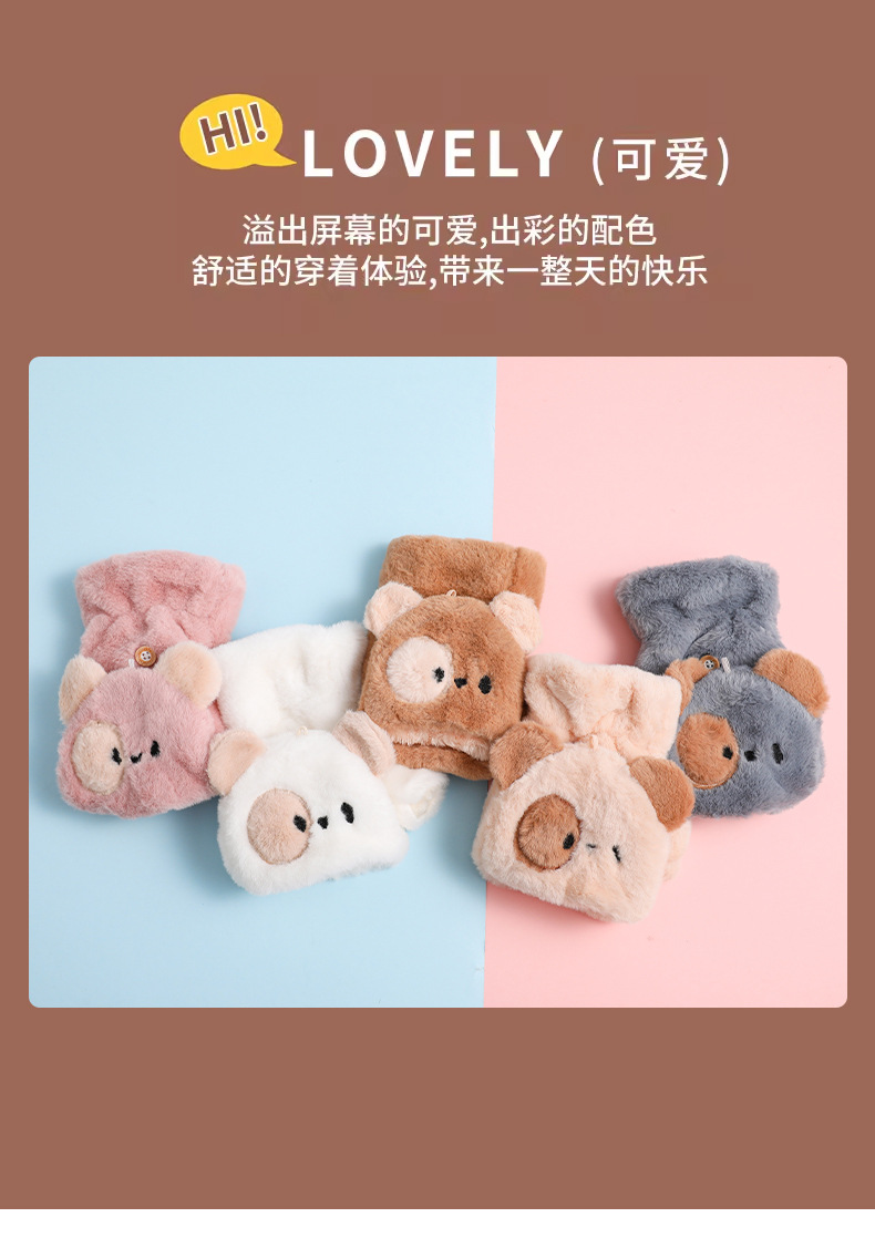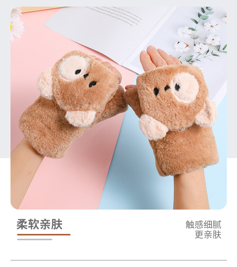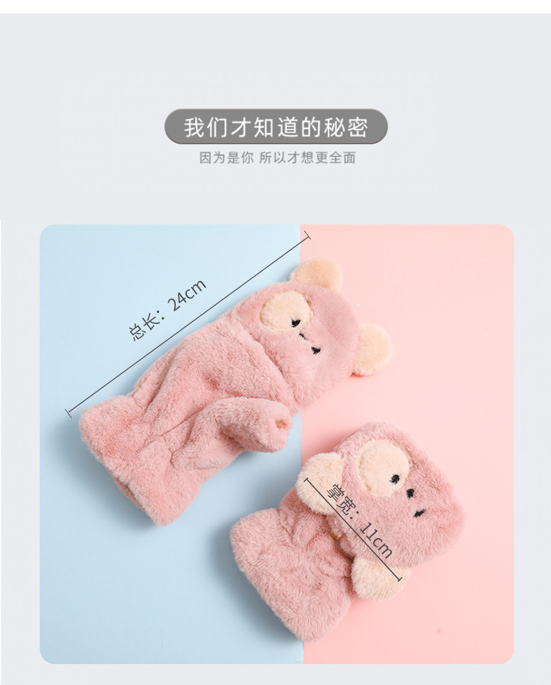 귀여운 어린이 플립 반 손가락 장갑 여자의 겨울 신학생 쓰기 사무실 따뜻한 부동액 플러시 승마 남자스토어 가기