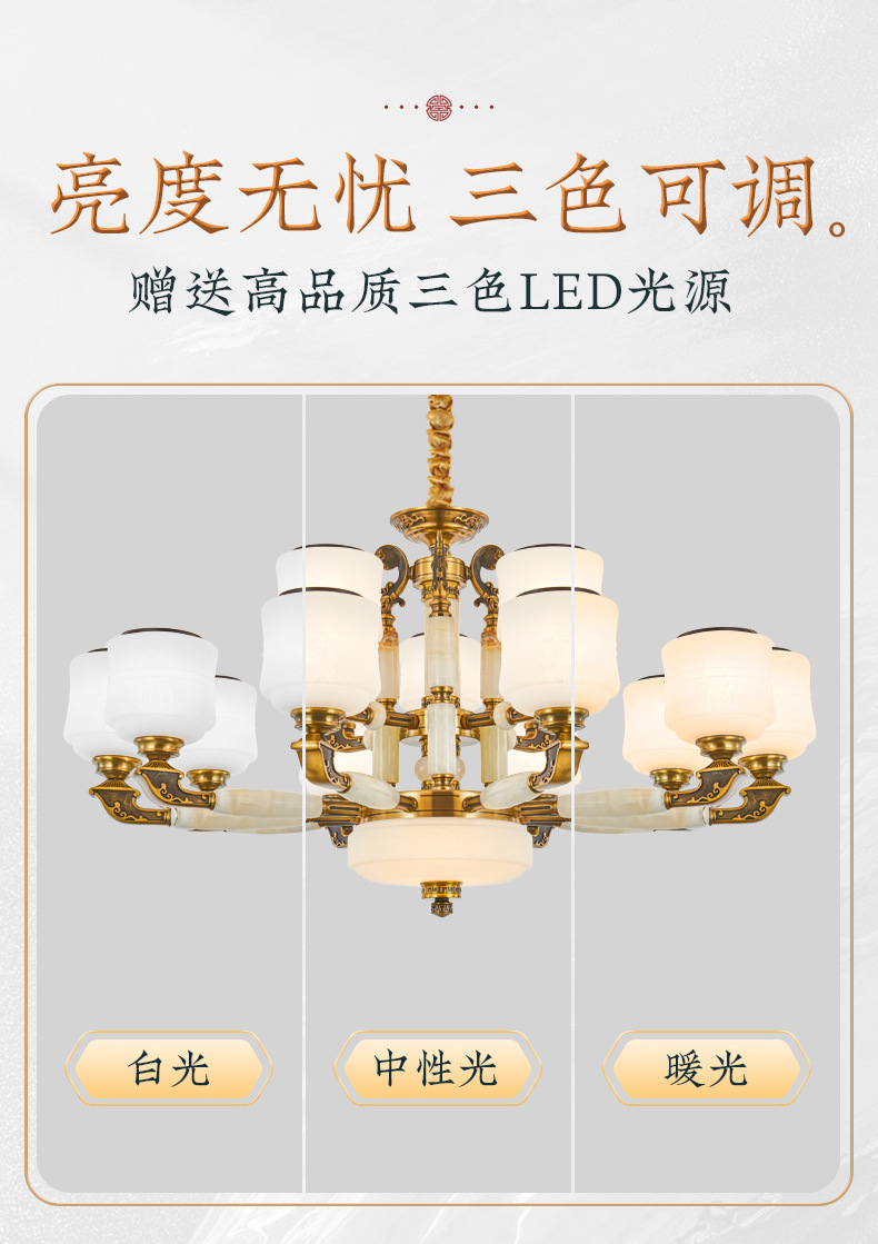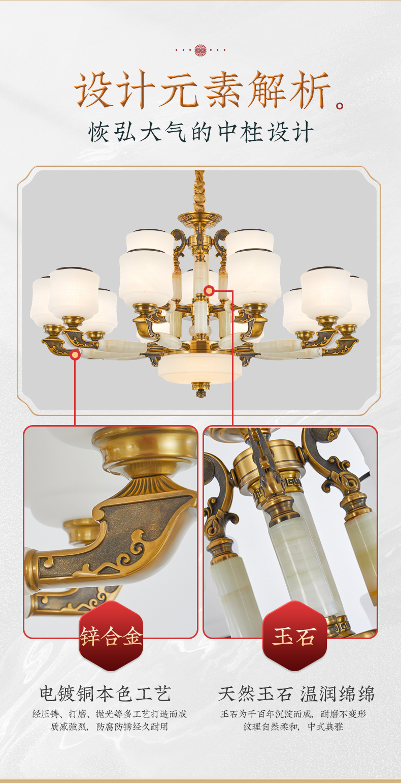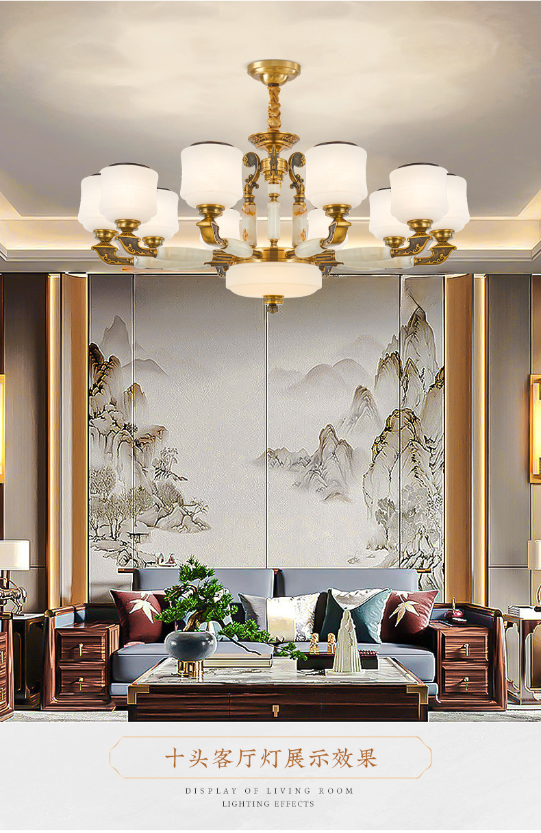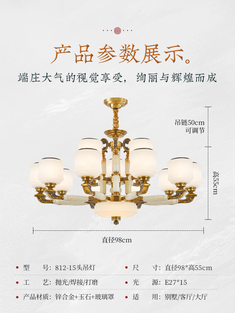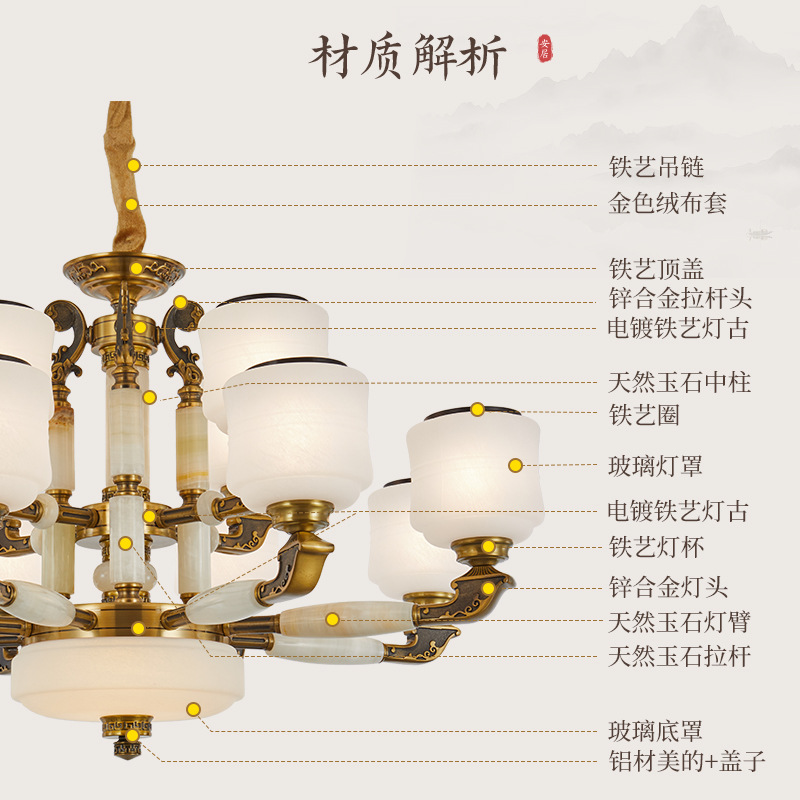 새로운 중국 천연 옥 샹들리에 전기 도금 고급 대기 선 중국 스타일 거실 램프 빌라 자체 제작 샹들리에