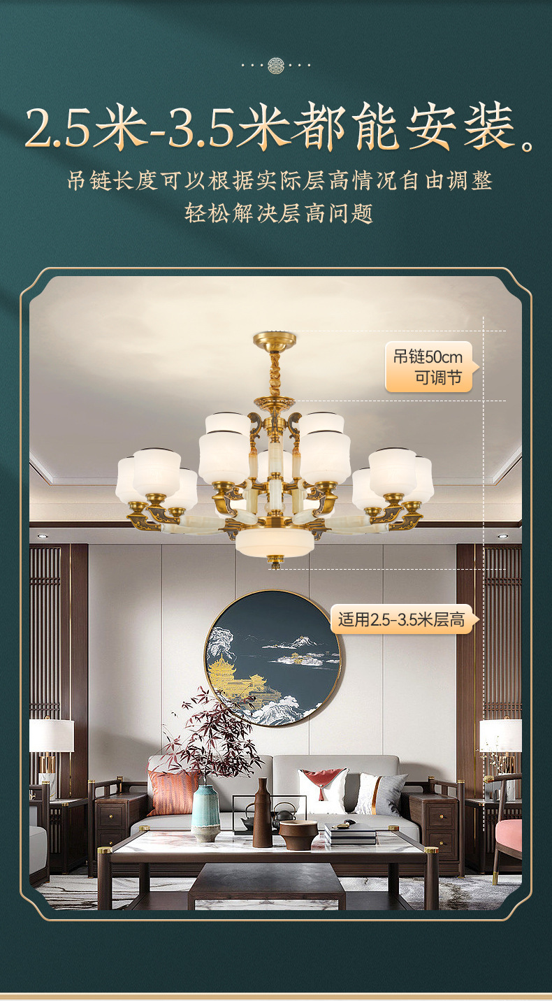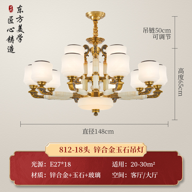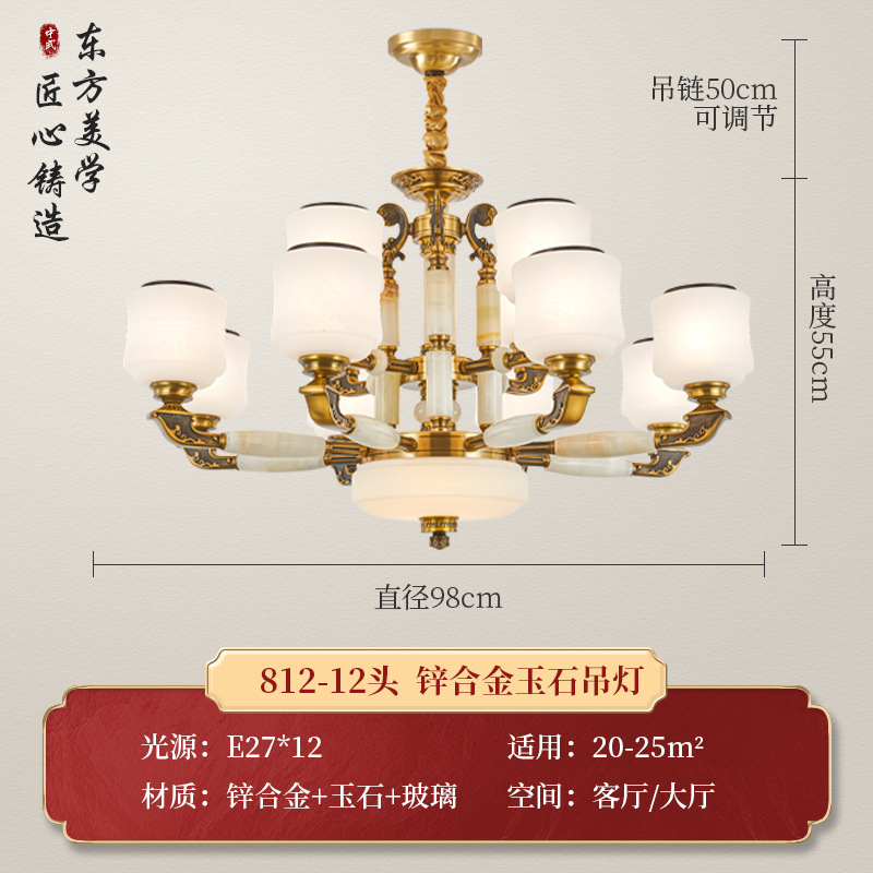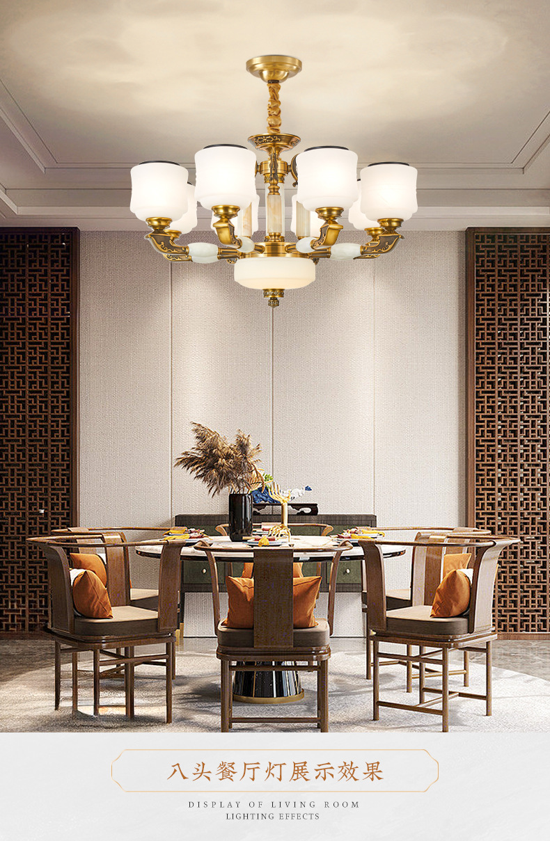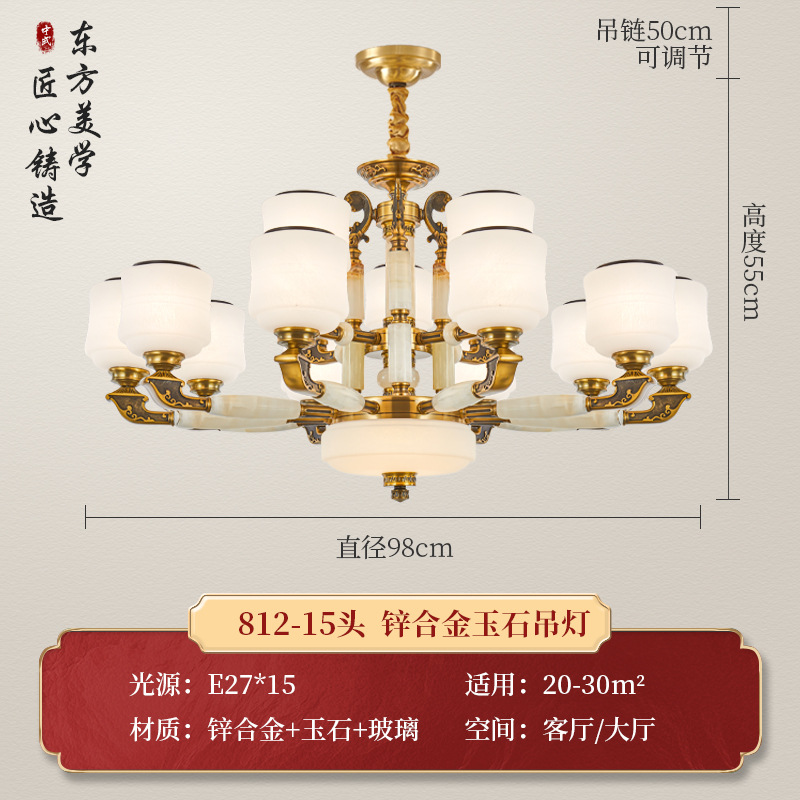 새로운 중국 천연 옥 샹들리에 전기 도금 고급 대기 선 중국 스타일 거실 램프 빌라 자체 제작 샹들리에스토어 가기