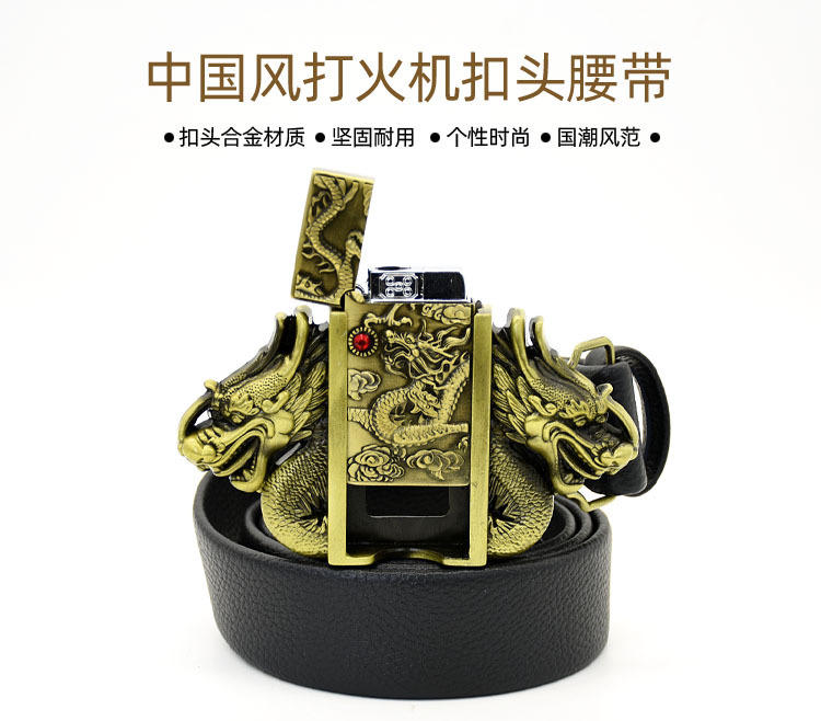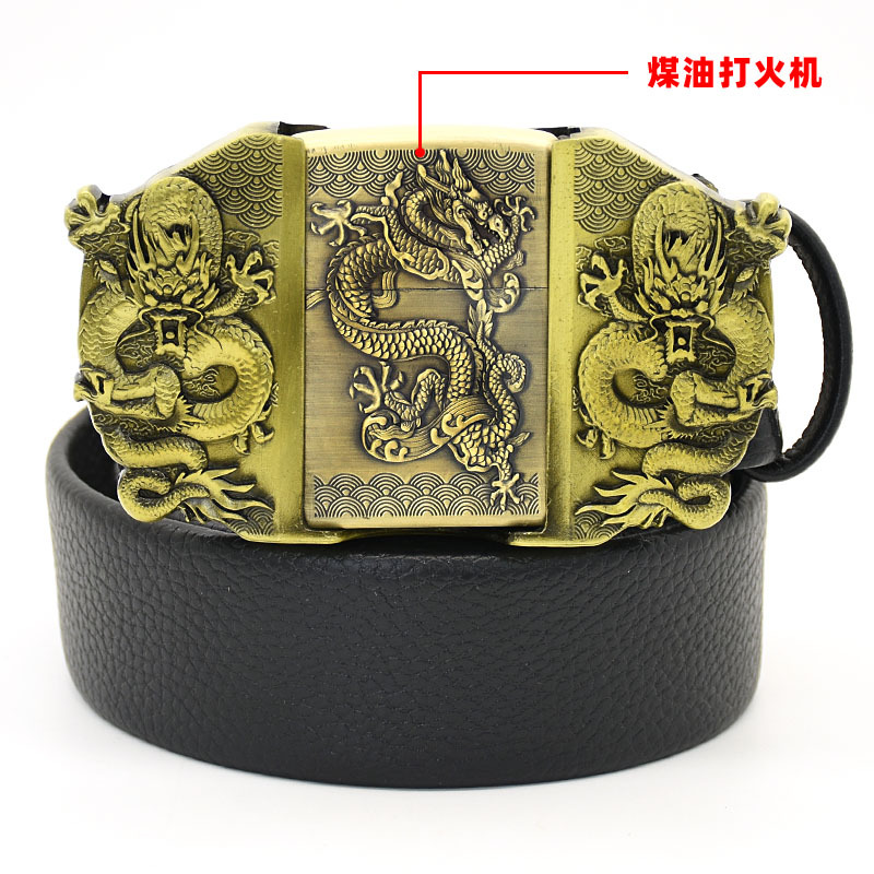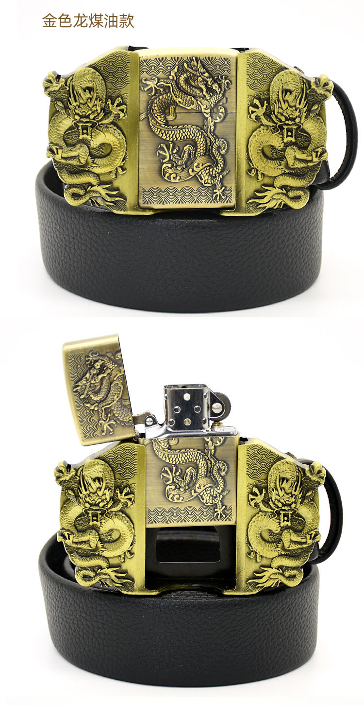 • 골든 드래곤 가스 라이터 정품 가죽 블랙