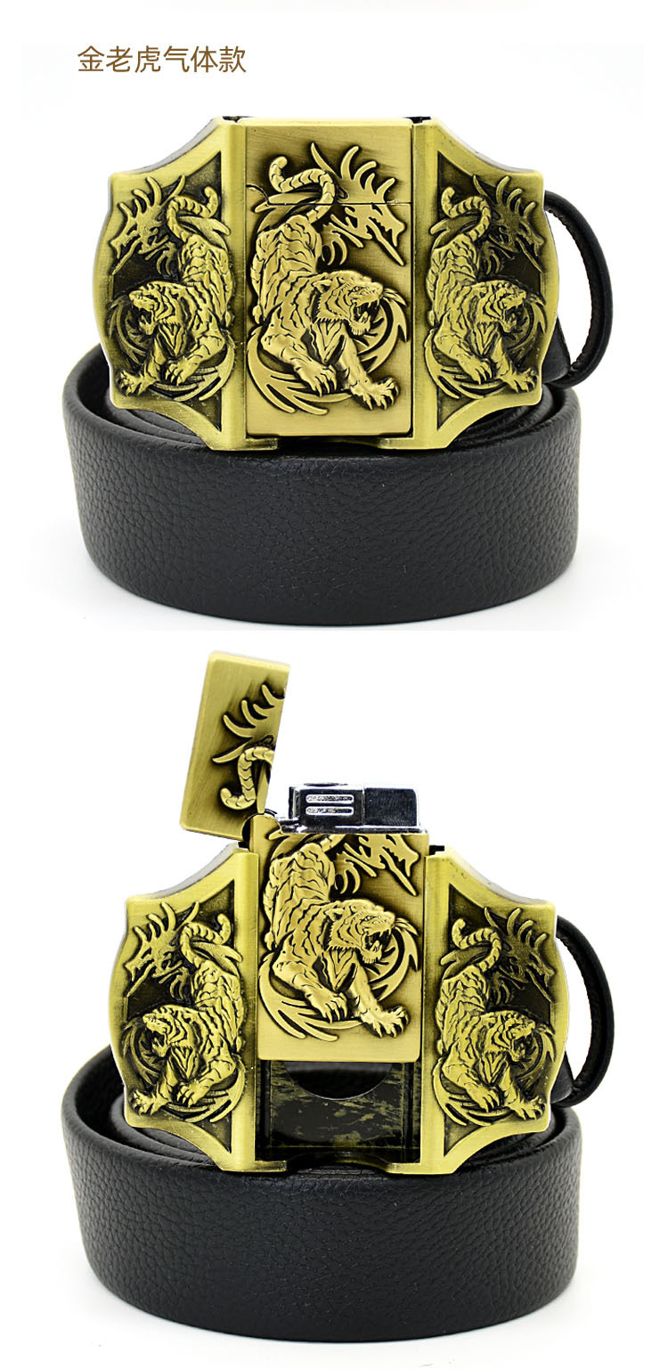 • 골든 타이거 가스 라이터 정품 가죽 블랙