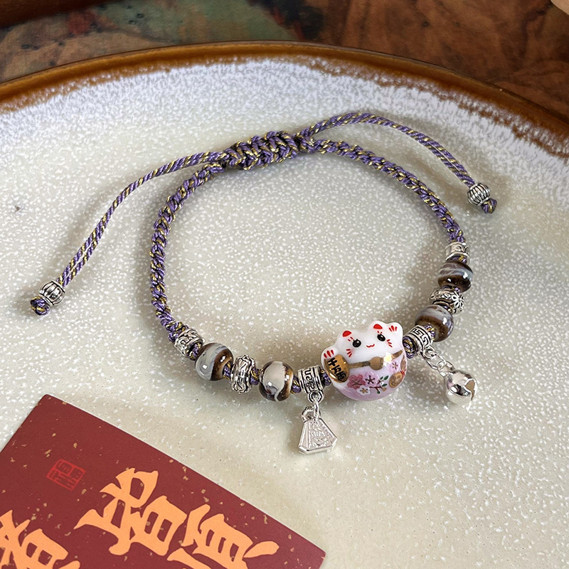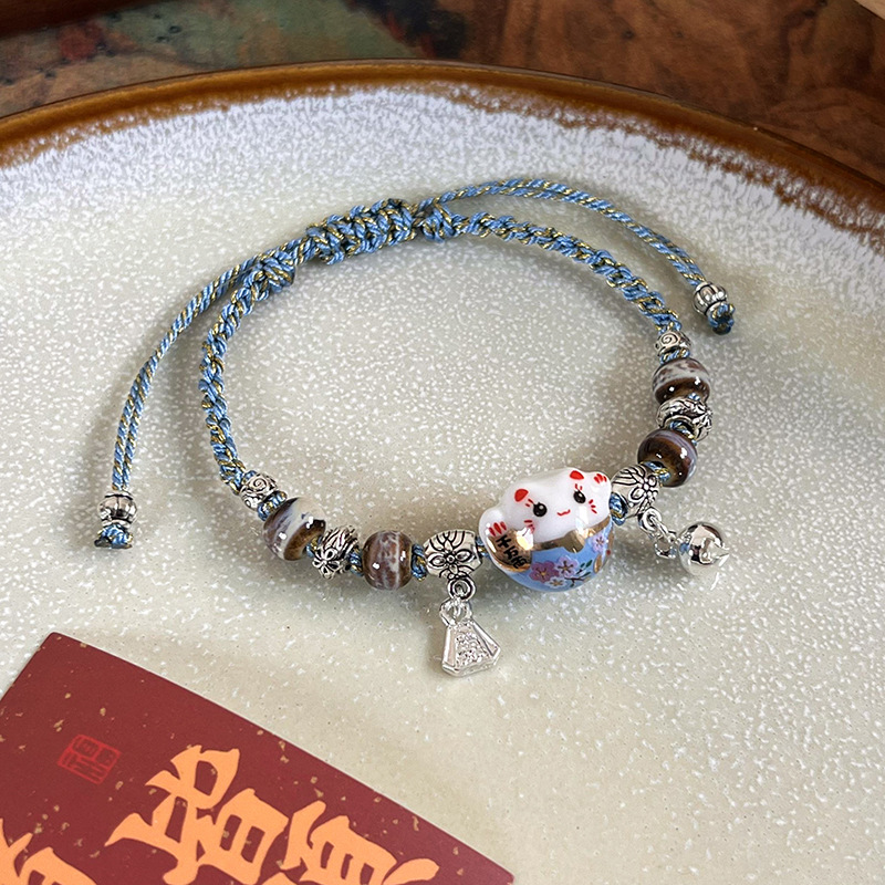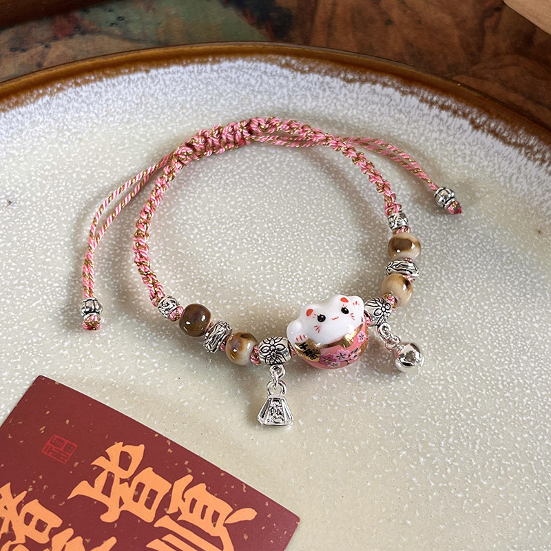 여성을위한 틈새 디자인 행운의 고양이 벨 팔찌 2024 신입생 팔찌 고양이 팔찌 세라믹 팔찌스토어 가기