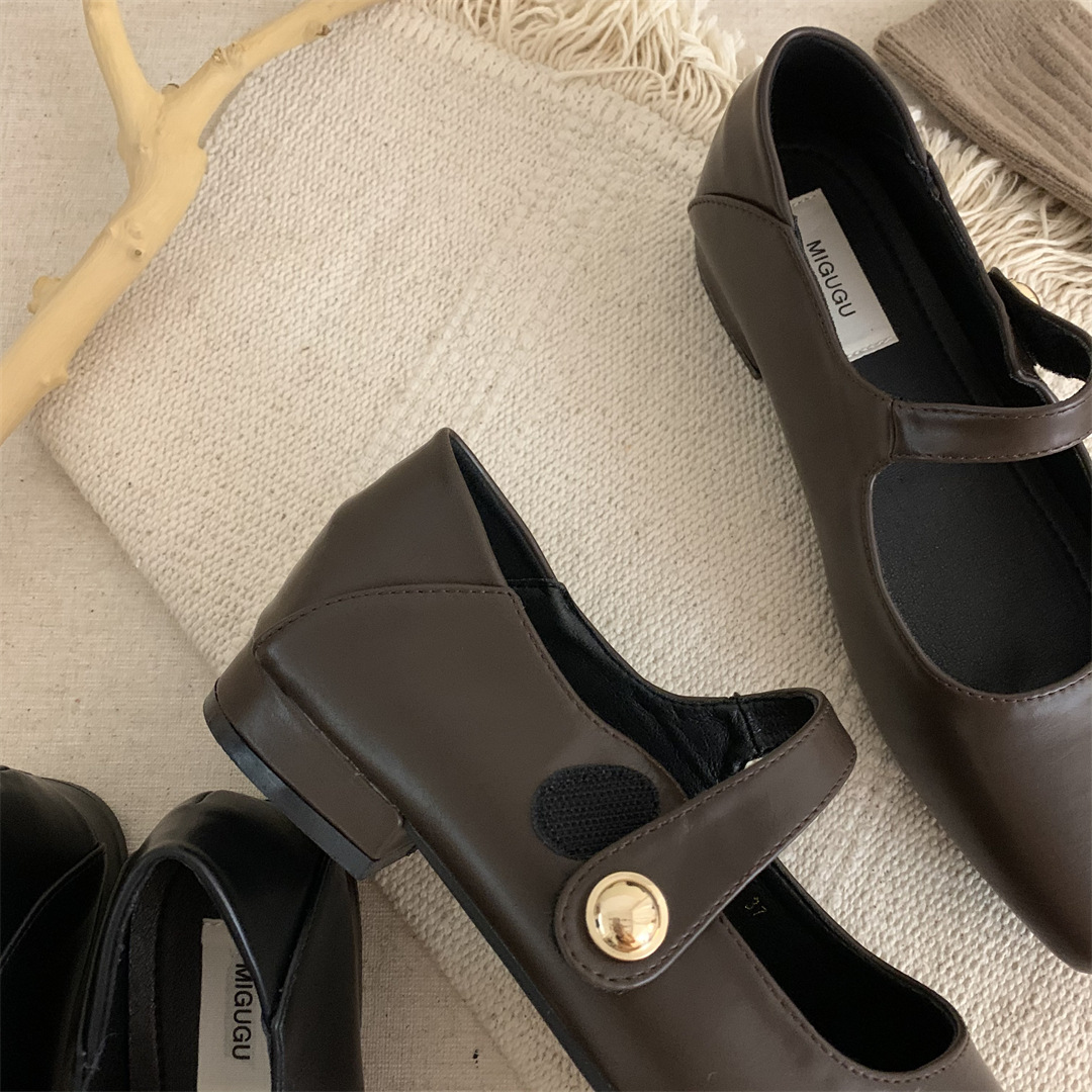 여성을위한 프랑스 복고풍 광장 발가락 메리 제인 신발 가을 새로운 플랫 바닥 한 단어 얕은 입 단일 신발 통근 특종 신발스토어 가기