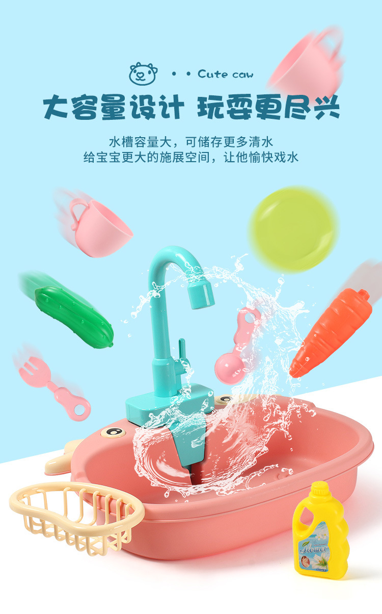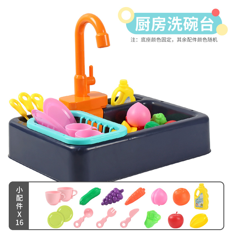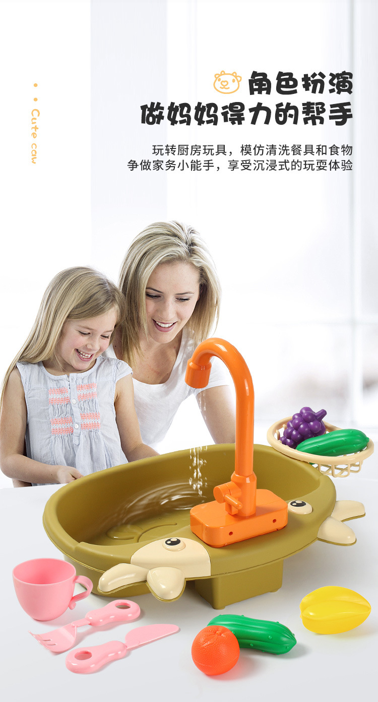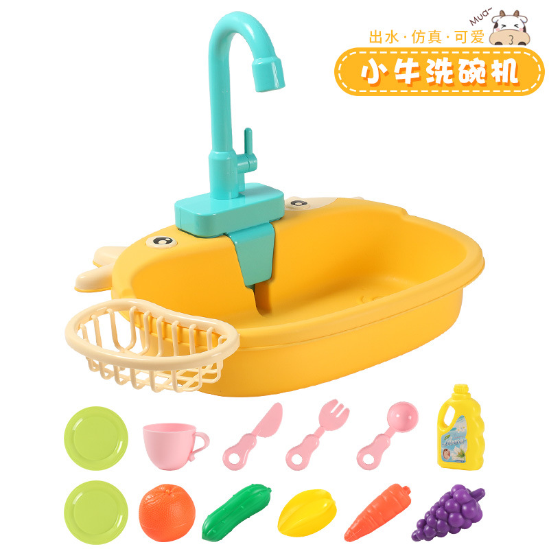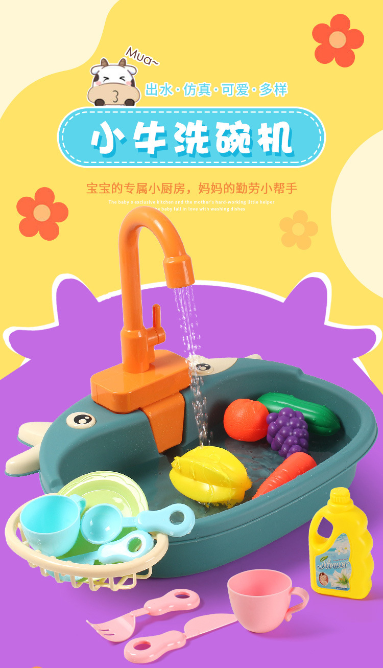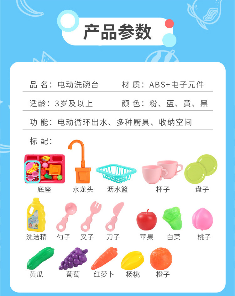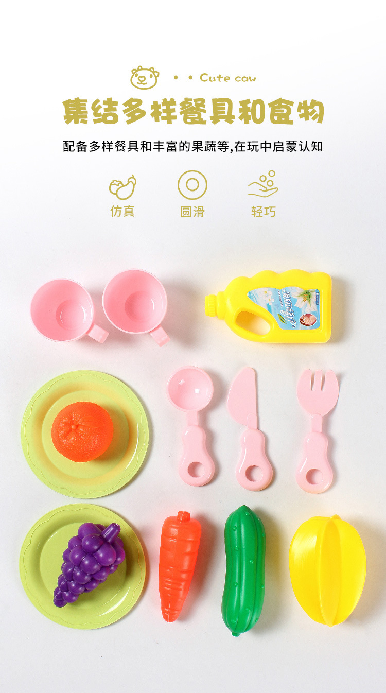 국경 간 어린이 아기 놀이 집 주방 전기 사이클 자동 물 식기 세척기 장난감 시뮬레이션 과일 및 야채스토어 가기