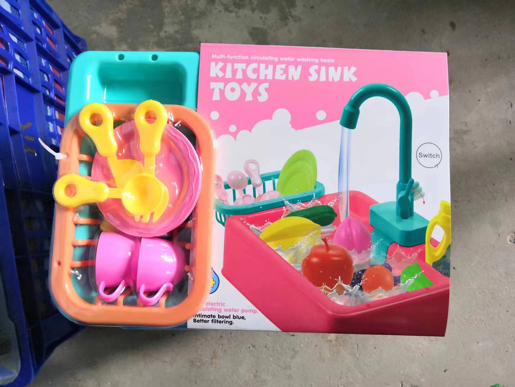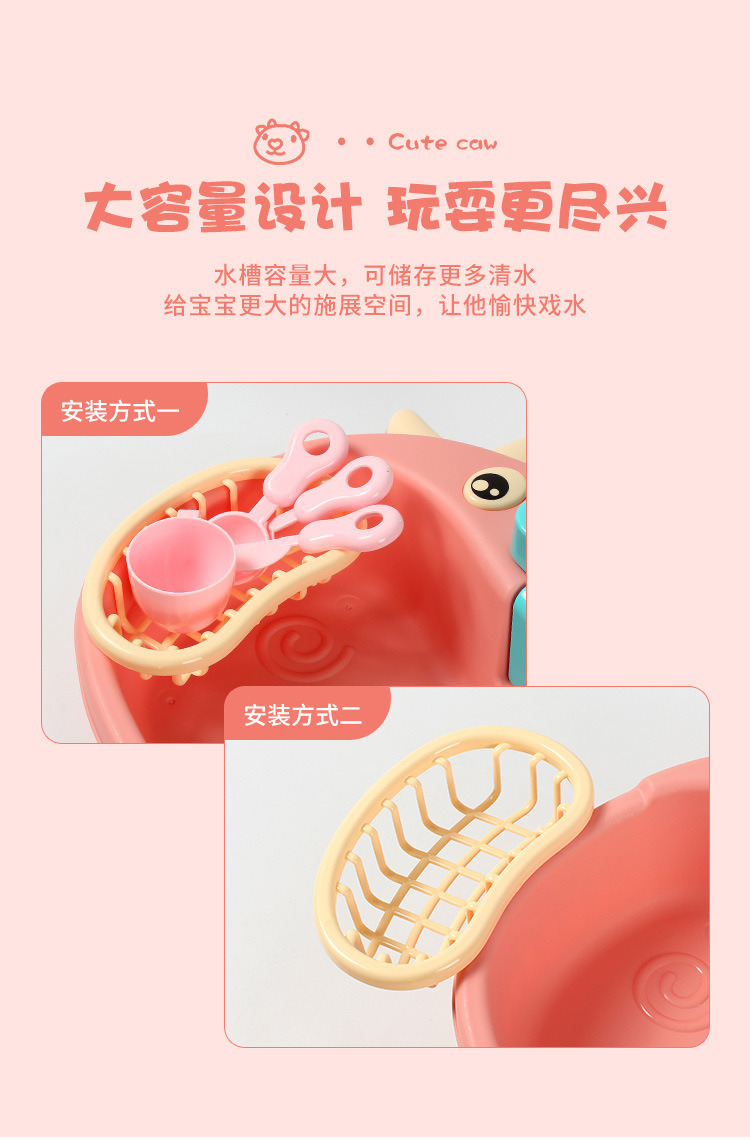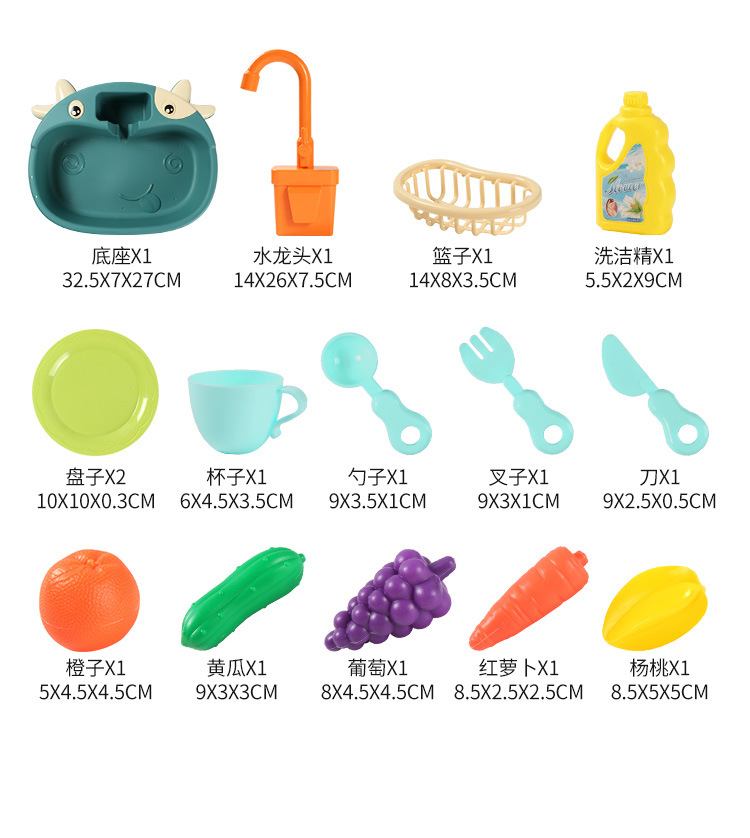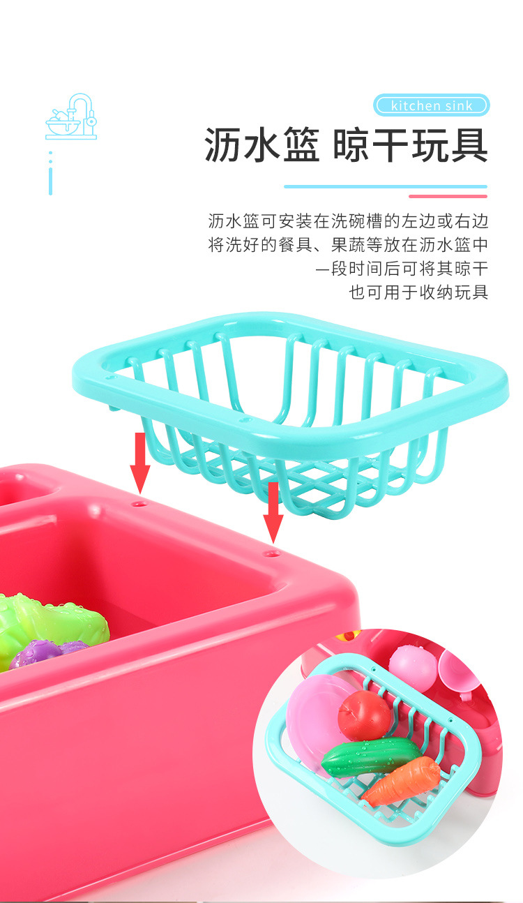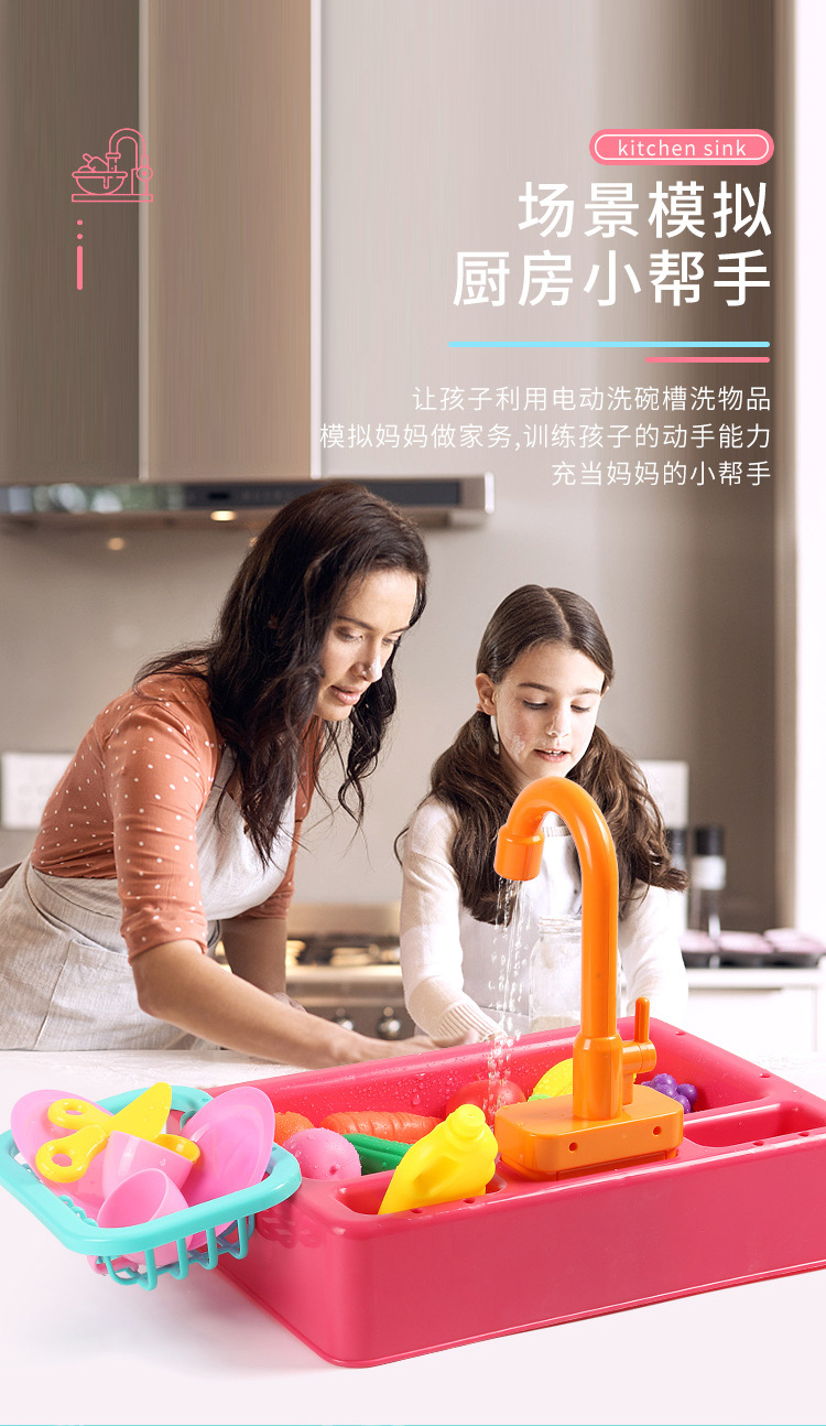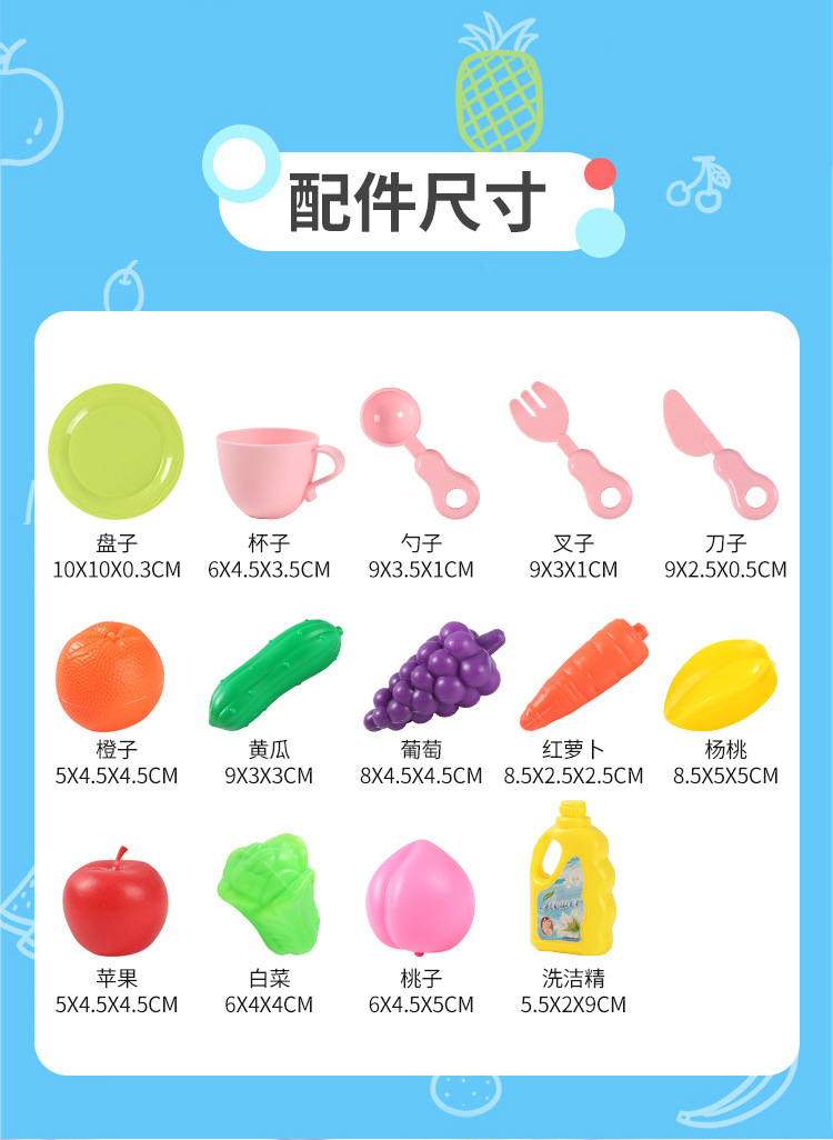 국경 간 어린이 아기 놀이 집 주방 전기 사이클 자동 물 식기 세척기 장난감 시뮬레이션 과일 및 야채스토어 가기