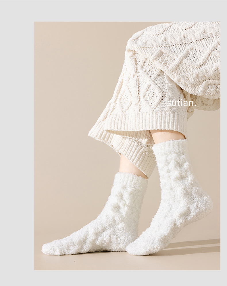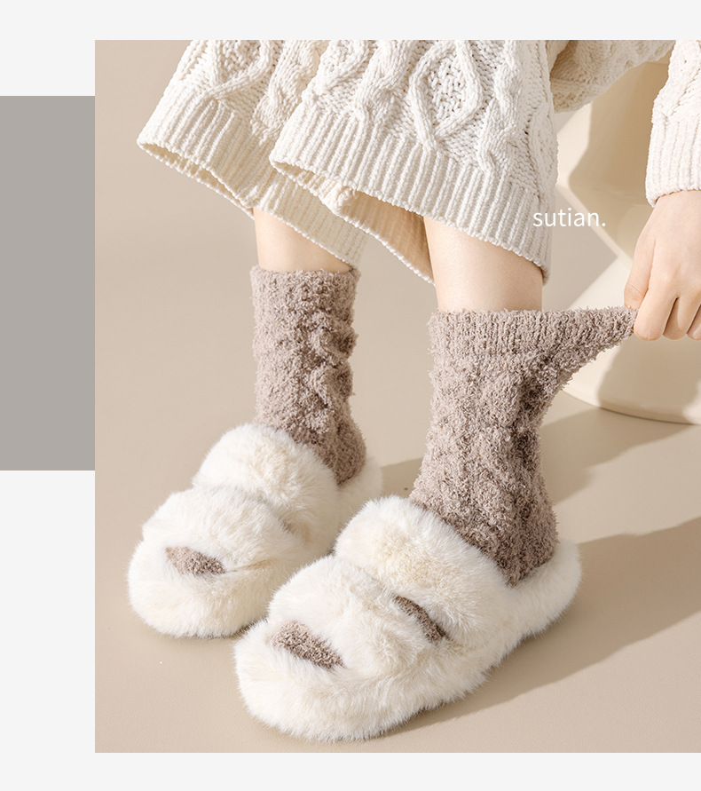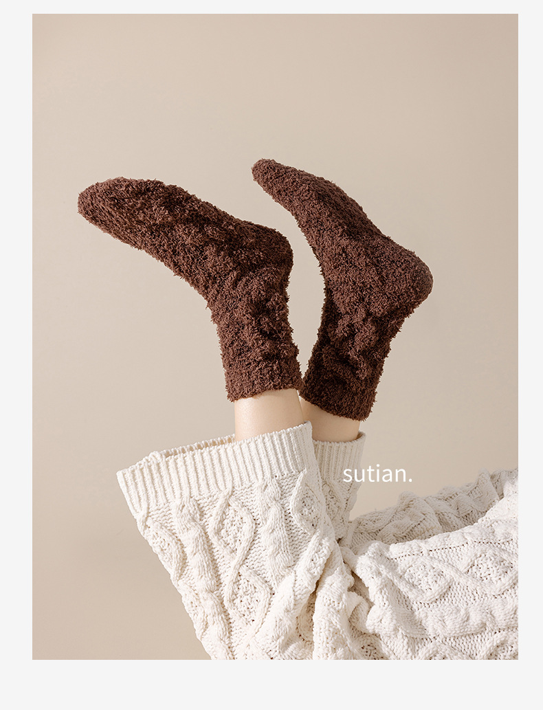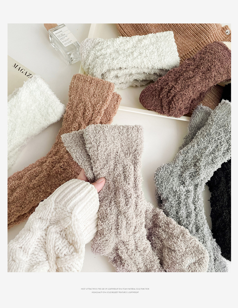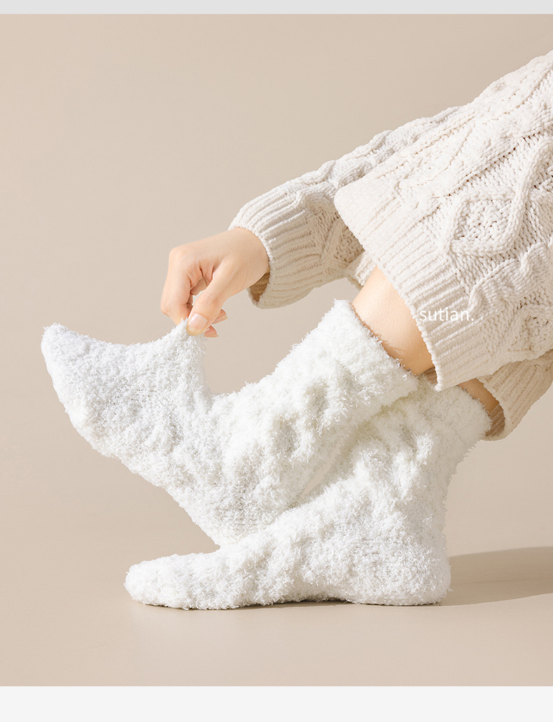 여성용 양말 가을과 겨울 산호 양털 두꺼운 기모 따뜻한 긴 유행 겨울 봉제 긴 양말