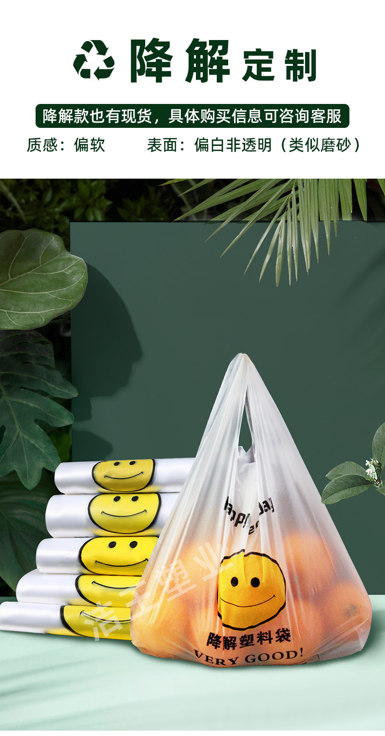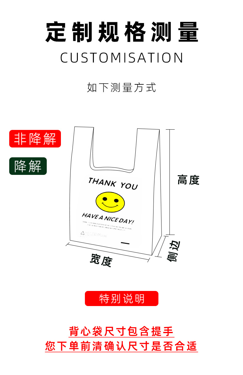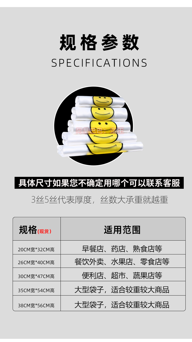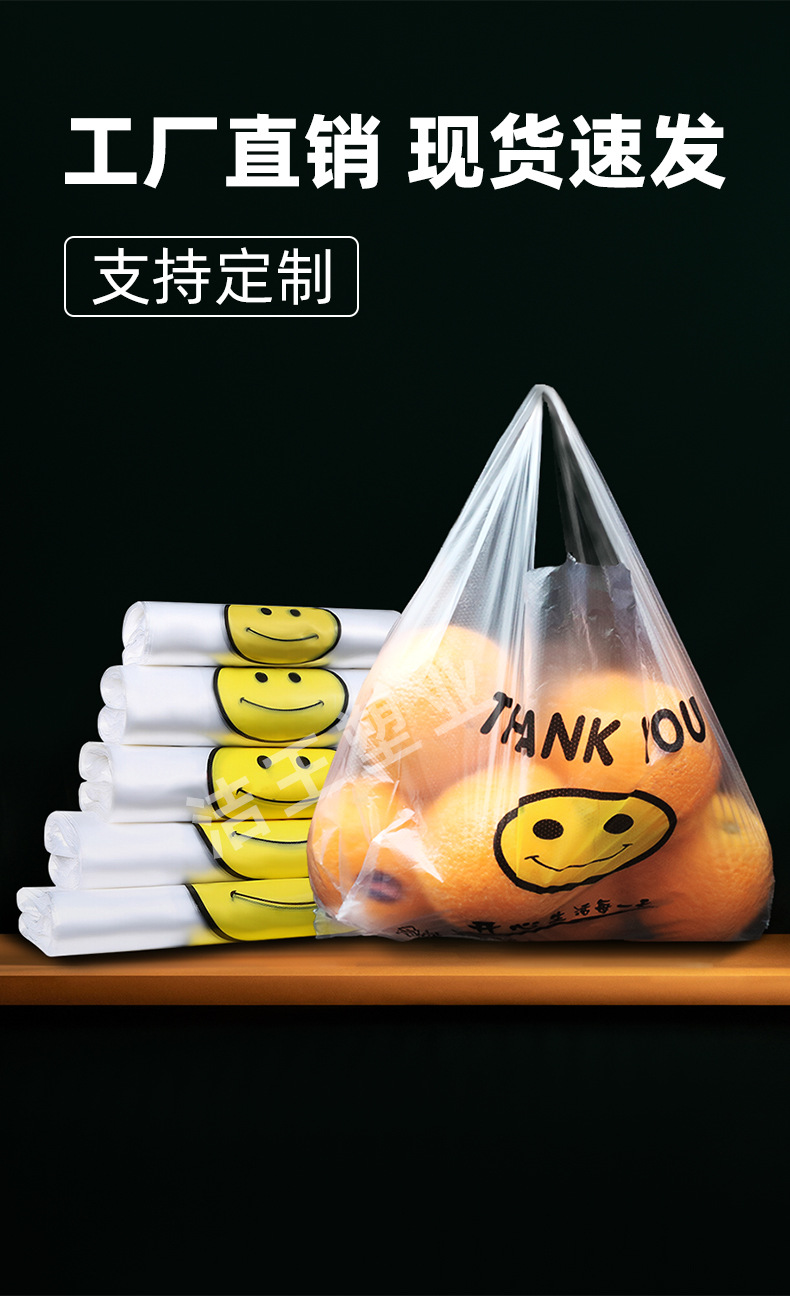 비닐 봉투 1개 도매 편의점 슈퍼마켓 쇼핑백 분해성 조끼 가방 테이크아웃 포장 편의 가방 투명 웃는 얼굴
