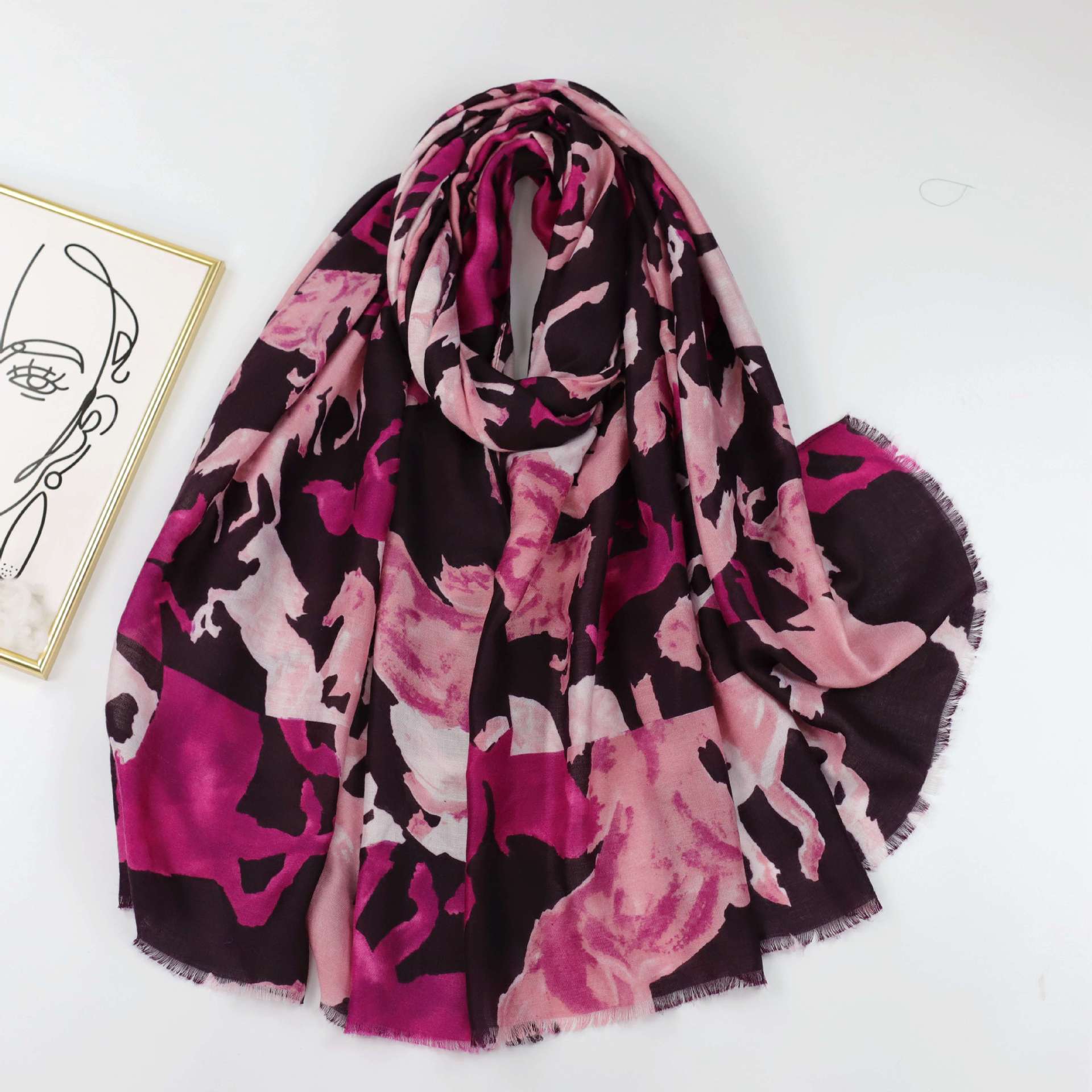 공장 판매 2023 대외 무역 국경 라이브 인상 말 새틴 인쇄 긴 수건 여행 휴일 자외선 차단제 따뜻한 숄