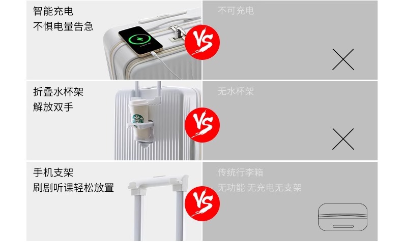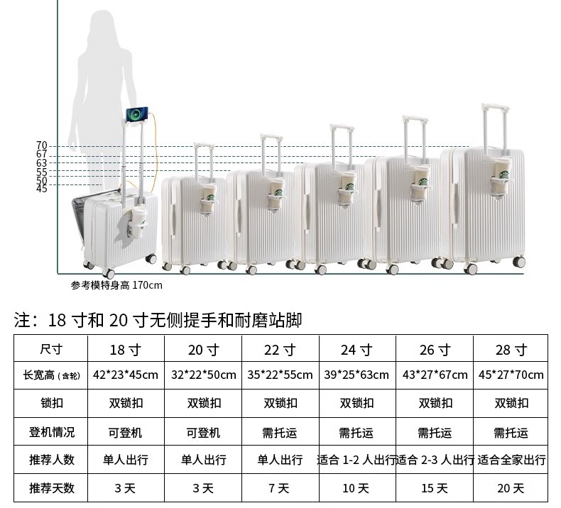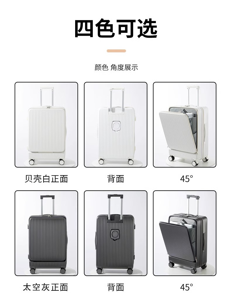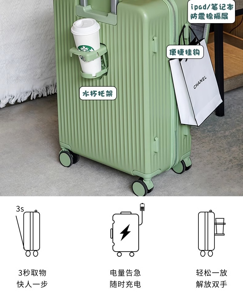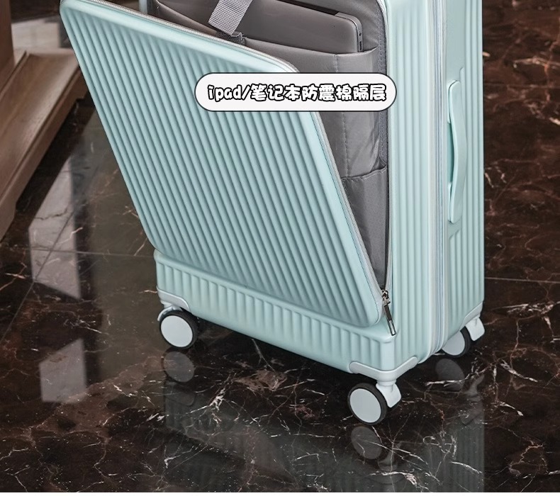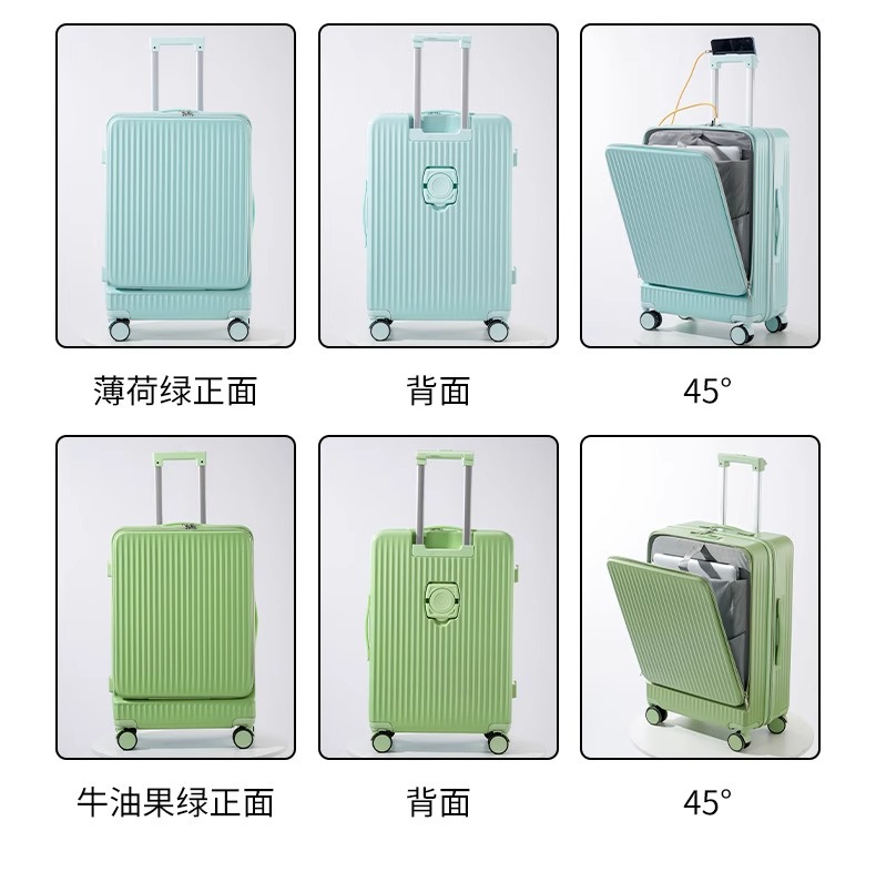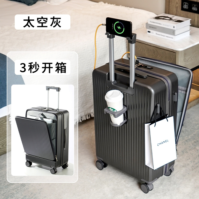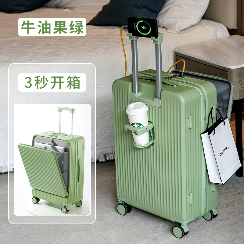 전면 개방 수하물 케이스 여성 확장 충전식 탑승 케이스 20 인치 유니버설 휠 다기능 비밀번호 수하물 케이스 남성스토어 가기