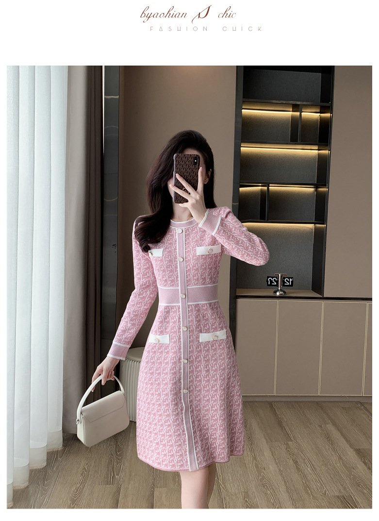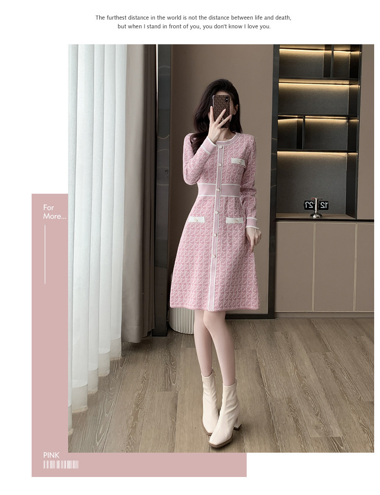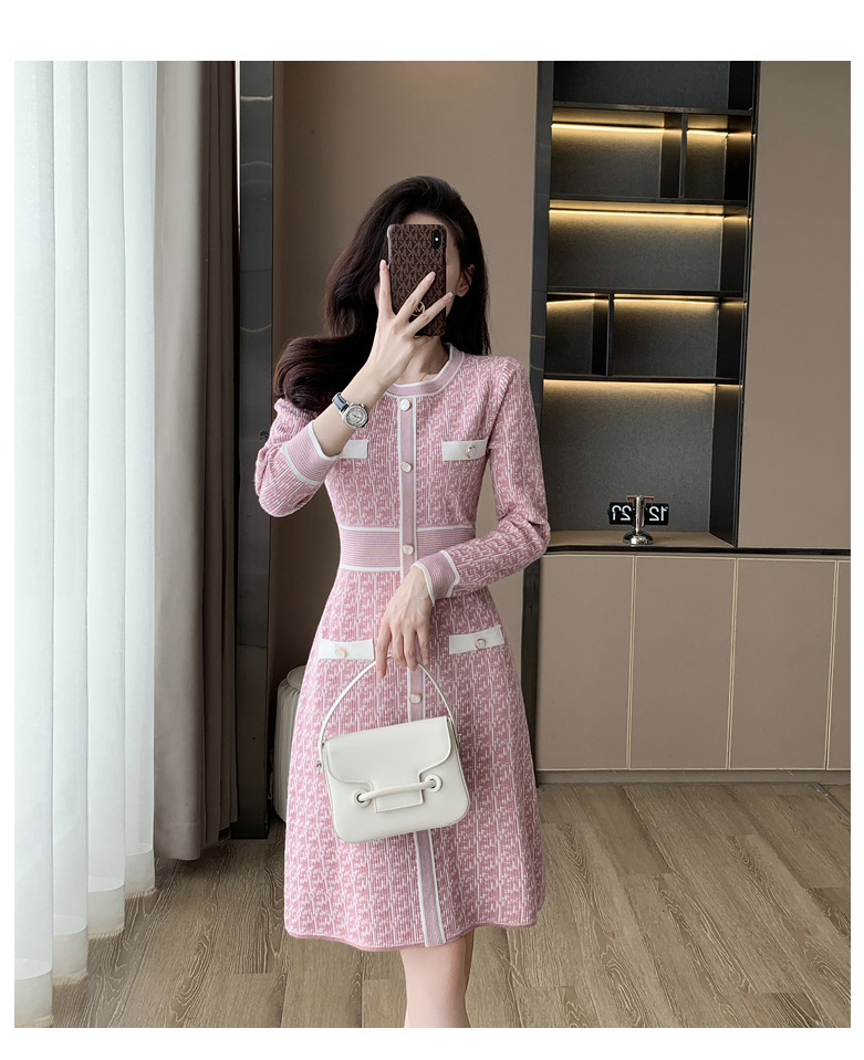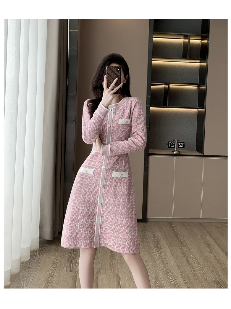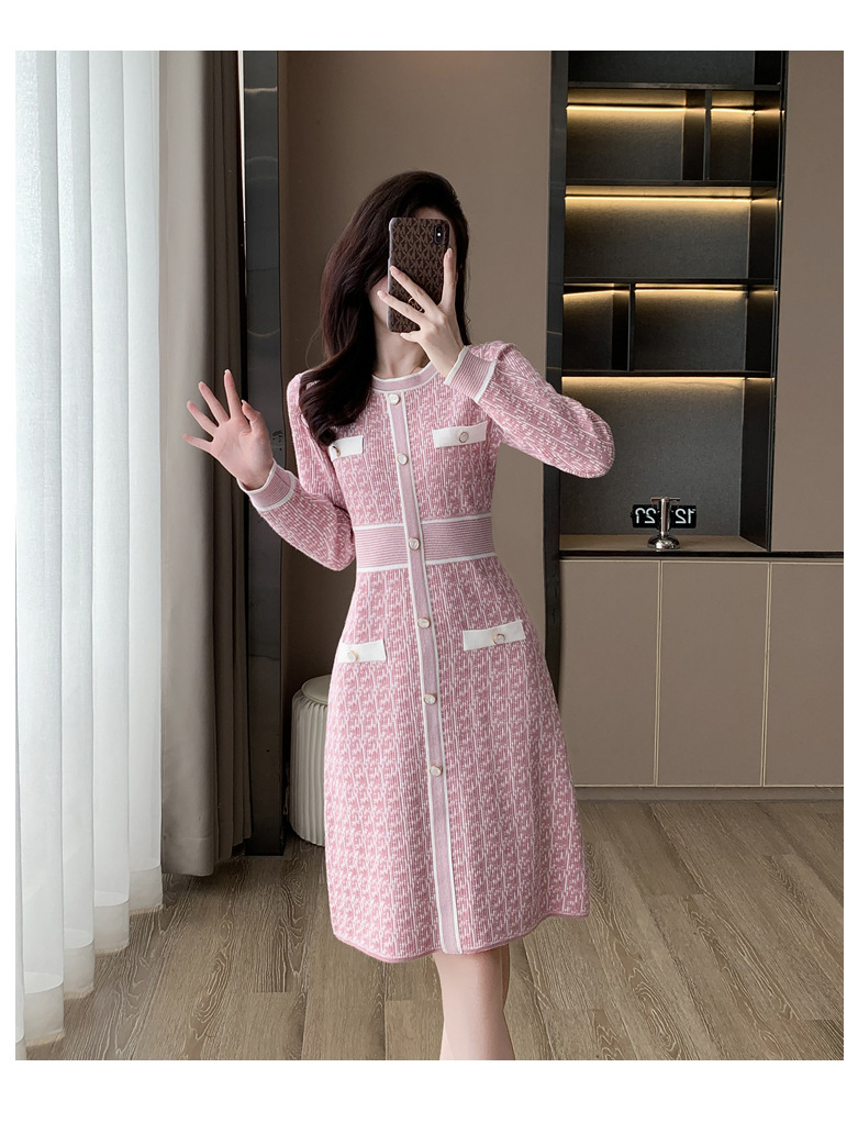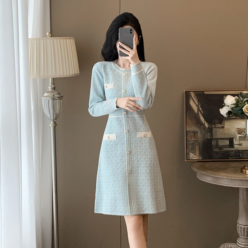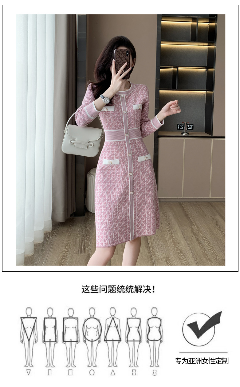실제 샷 스팟 13 라인 사교계 여성 작은 향기로운 스타일 높은 허리 A 라인 긴 원피스 기질 여성의 대형 스윙 니트 원피스스토어 가기