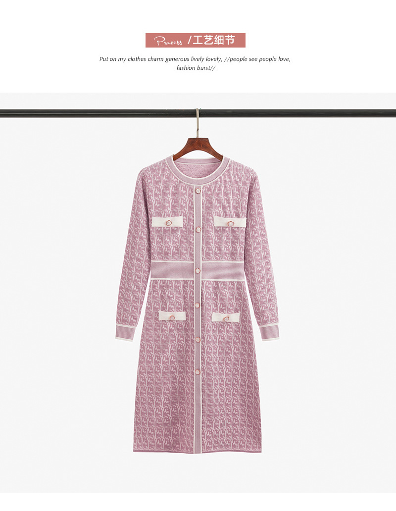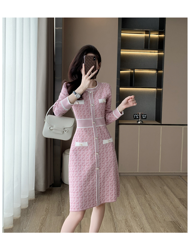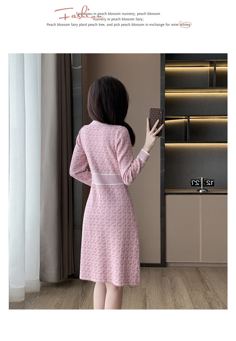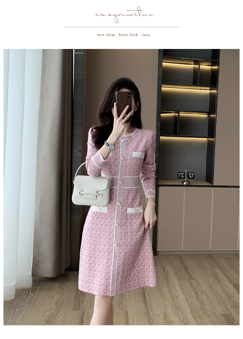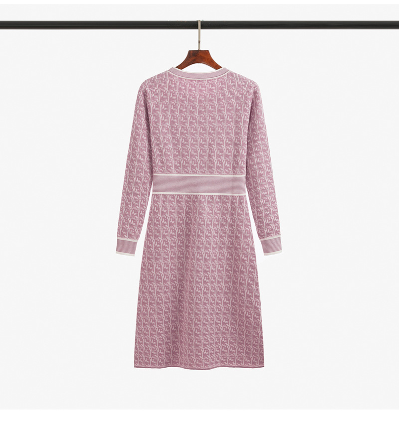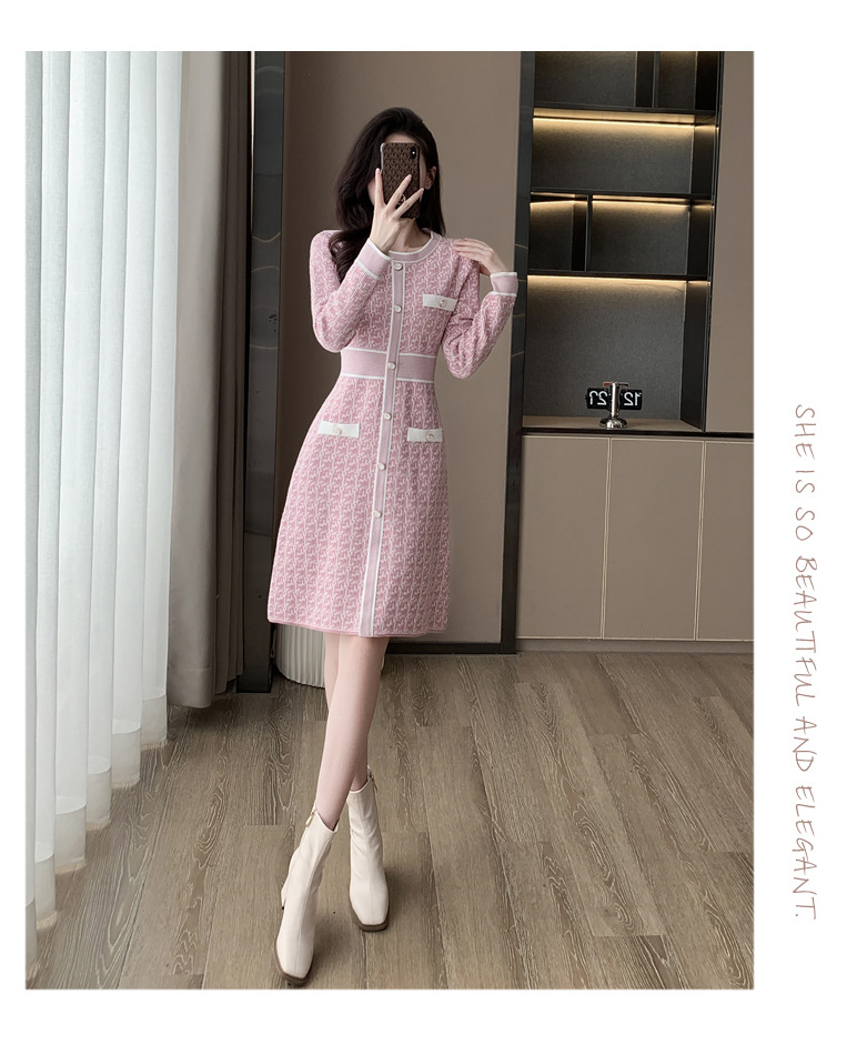 실제 샷 스팟 13 라인 사교계 여성 작은 향기로운 스타일 높은 허리 A 라인 긴 원피스 기질 여성의 대형 스윙 니트 원피스스토어 가기