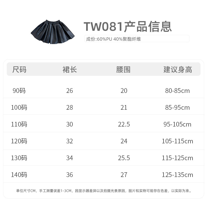 아동 스커트 2024 새로운 가을, 겨울 스타일 어린 소녀와 아기를위한 PU 가죽 스커트 솔리드 컬러 플러스 벨벳 플리츠 스커트 다목적 한국어 버전스토어 가기