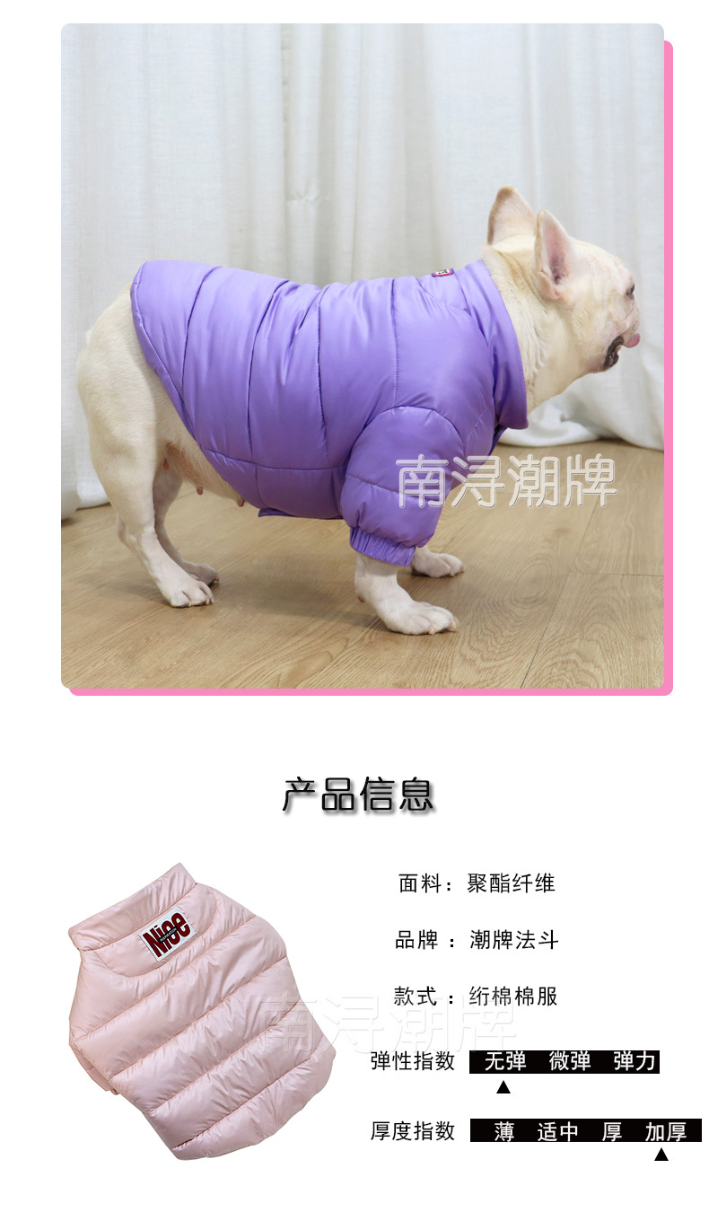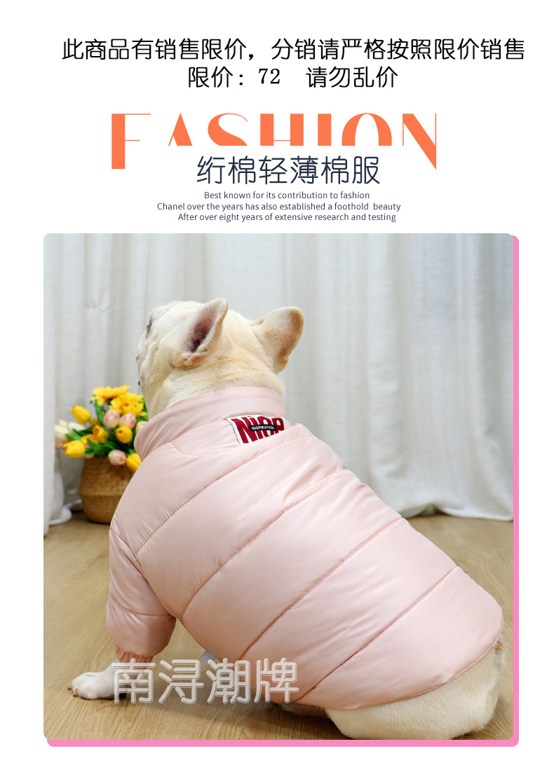 개 Fadou 면 패딩 재킷 Bago 겨울 옷 뚱뚱한 개 옷 짧은 몸 불독 단색 두꺼운 따뜻한