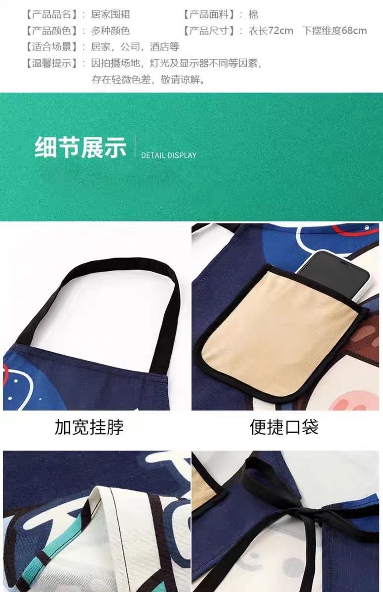 캔버스 귀여운 손 수건 앞치마 통기성 내마모성 가정용 주방 민소매 요리 허리 작업복 남성과 여성을위한 만화스토어 가기