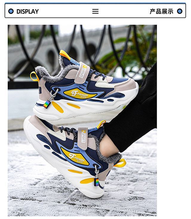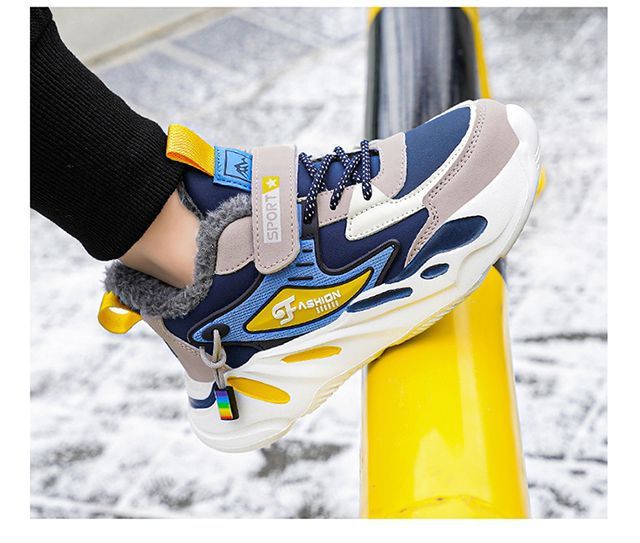 도매 소년 신발 어린이 면화 신발 방수 미끄럼 방지 남자의 큰 어린이 기모 두꺼운 따뜻한 중간 및 큰 어린이 남성 신발 겨울스토어 가기