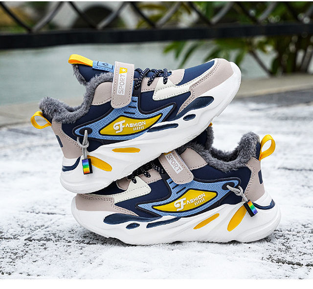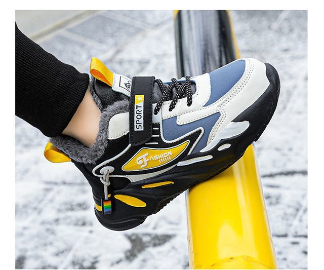 도매 소년 신발 어린이 면화 신발 방수 미끄럼 방지 남자의 큰 어린이 기모 두꺼운 따뜻한 중간 및 큰 어린이 남성 신발 겨울