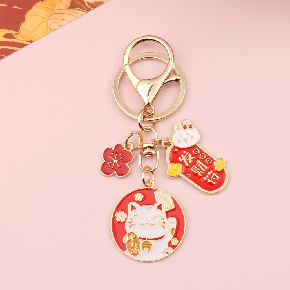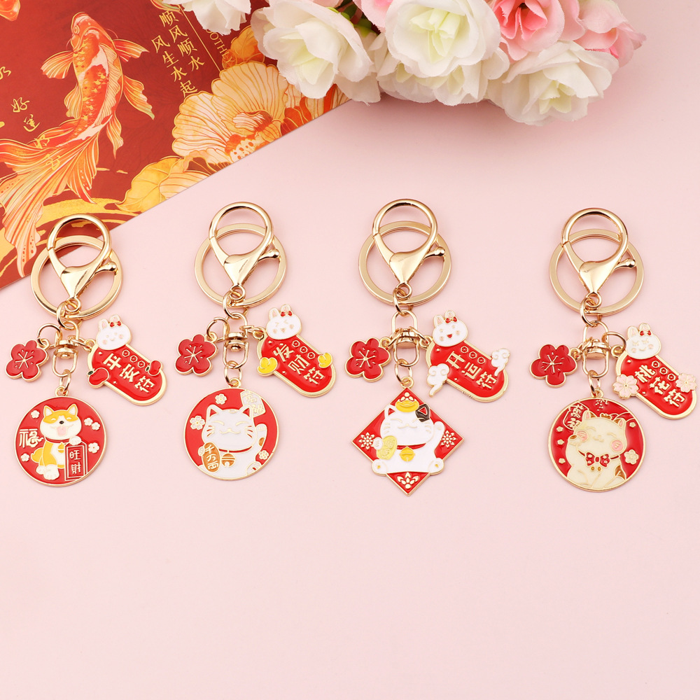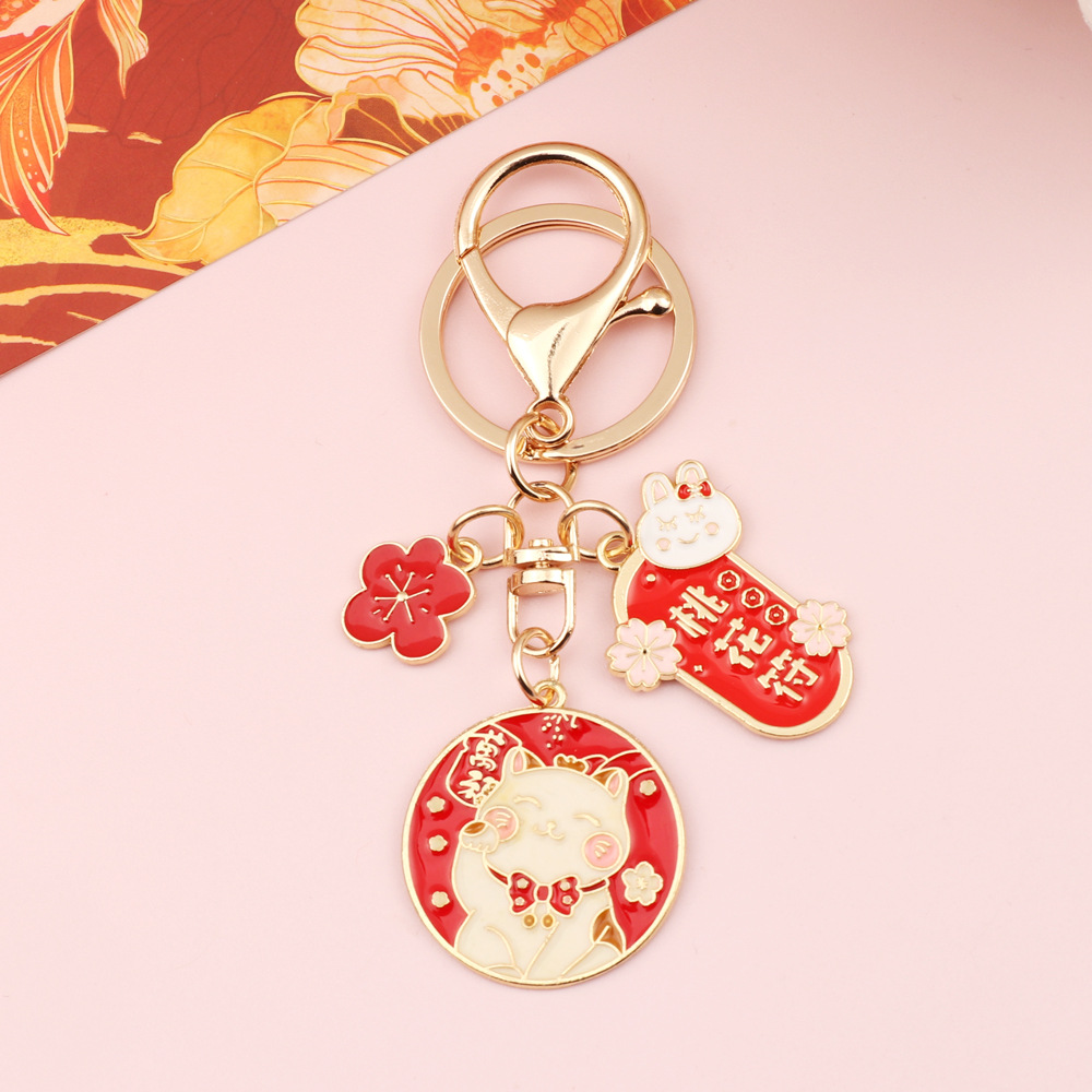잉어와 행운의 고양이 합금 열쇠고리, 오일 드립 DIY 장식품, 중국풍 재물과 안전을 기원하는 행운의 펜던트 선물