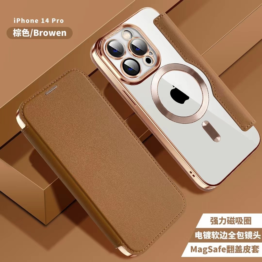 iPhone17PRO 휴대폰 케이스에 적합 골드 쉴드 플립 가죽 케이스 전기 도금 자기 카드 Apple 16E 가죽 낙하 방지스토어 가기
