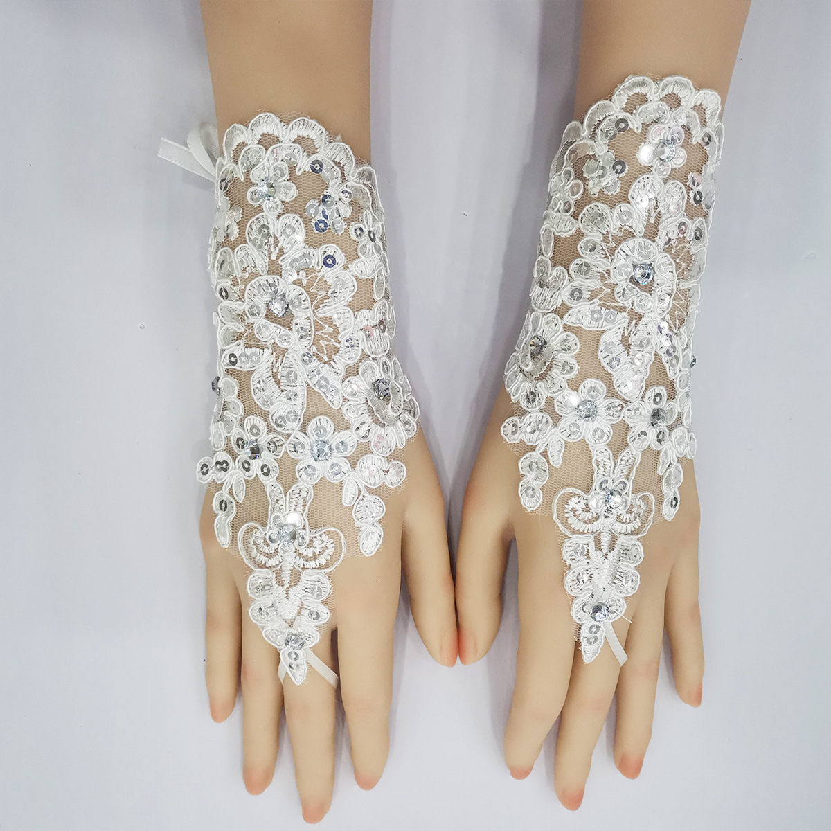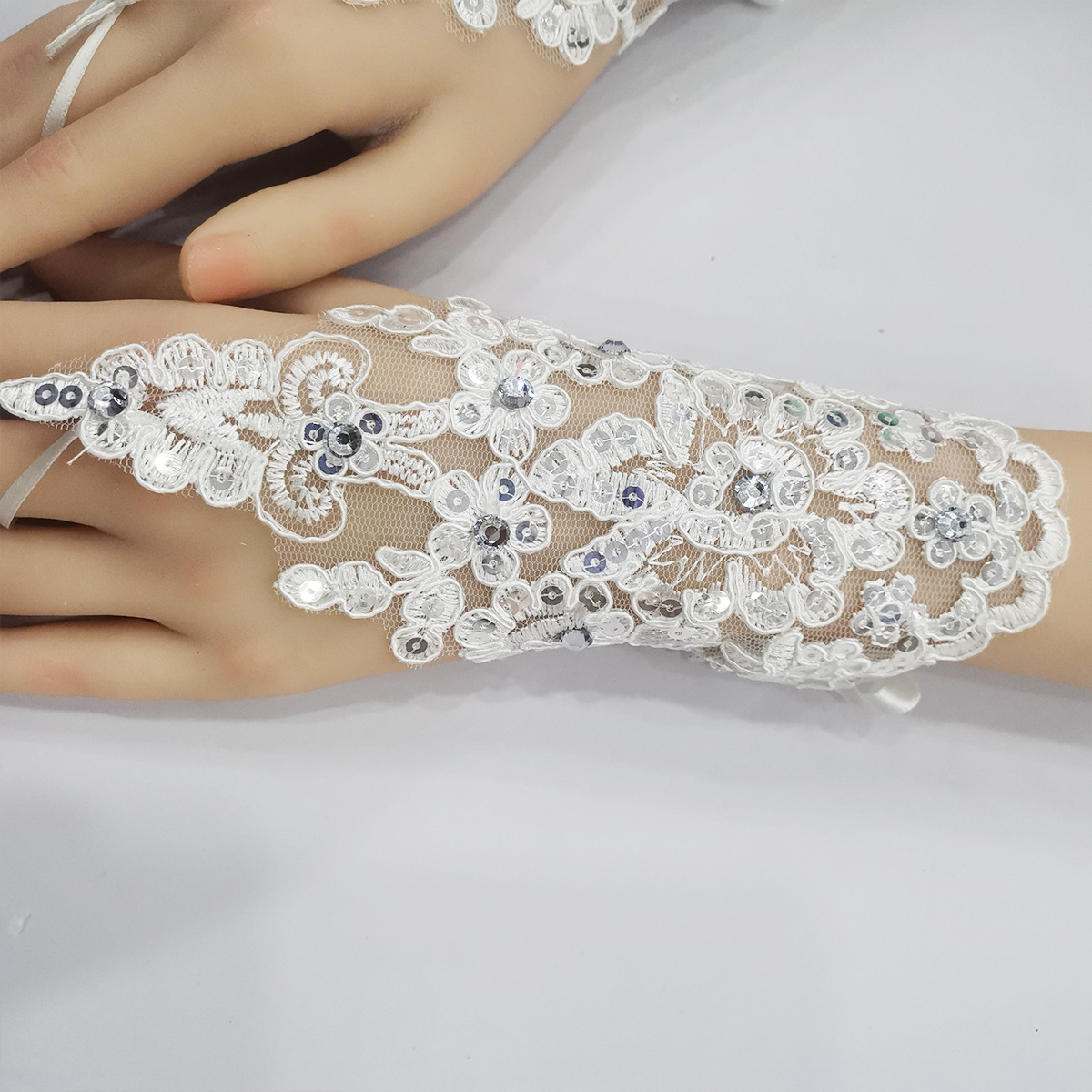 꽃 소녀 어린이 장갑 화이트 레이스 원피스 웨딩 소녀 공연 짧은 후크 손가락 춤 장식 대외 무역