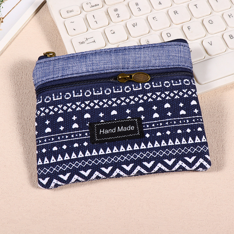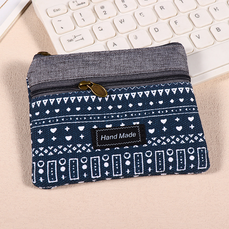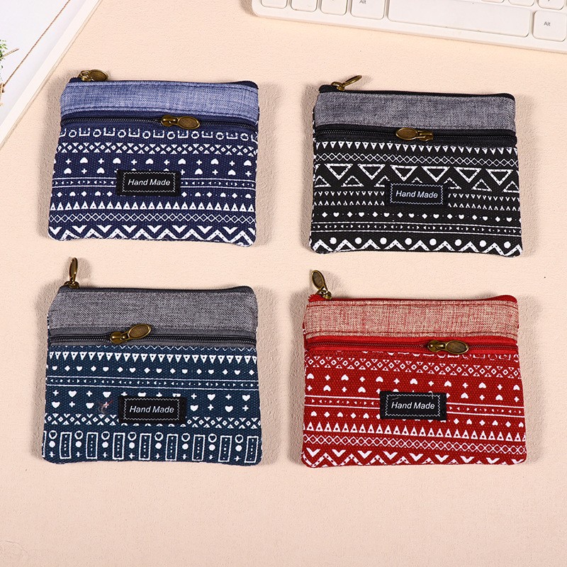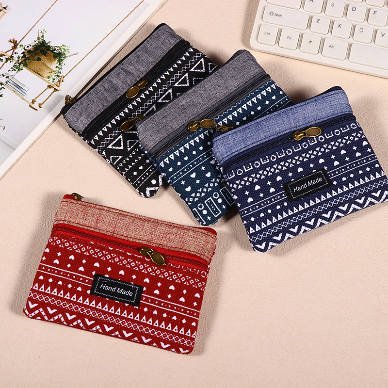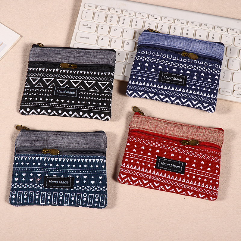 패브릭 더블 지퍼 동전 가방 여자 가방 카드 가방 변경 지갑 보관 가방 면과 린넨 숙녀 대외 무역 제조 업체 도매스토어 가기