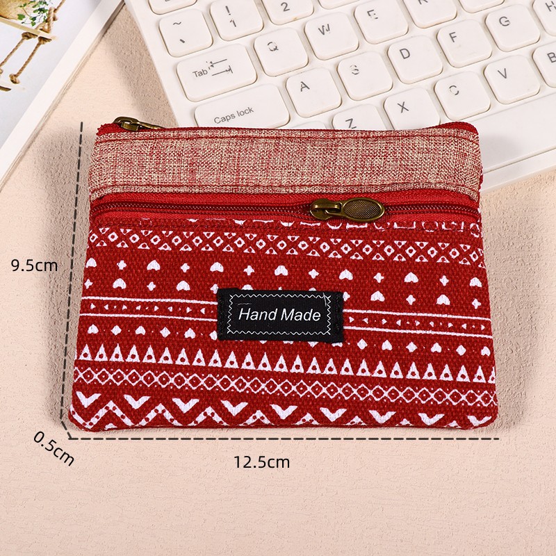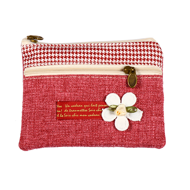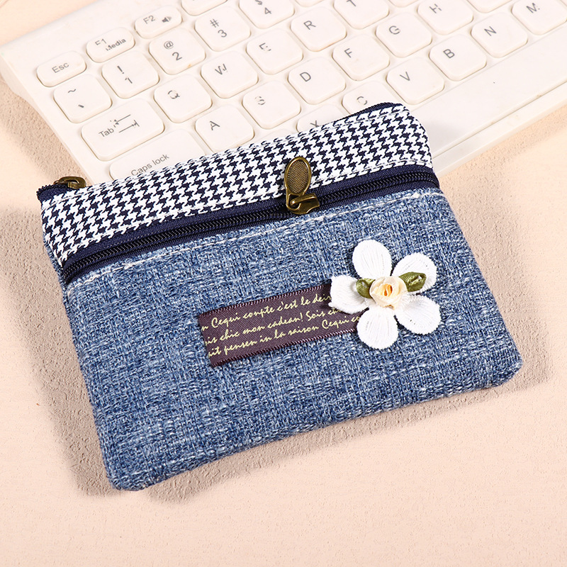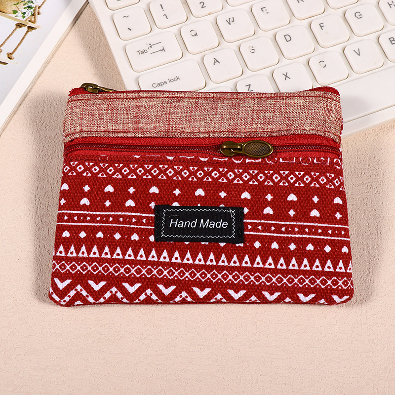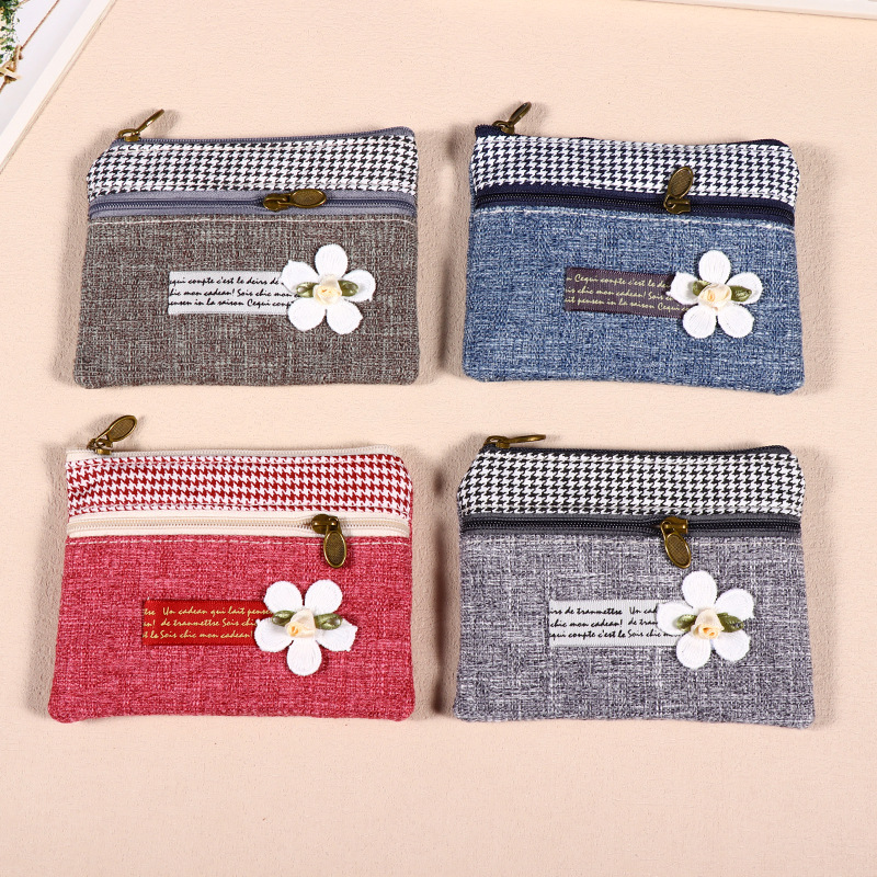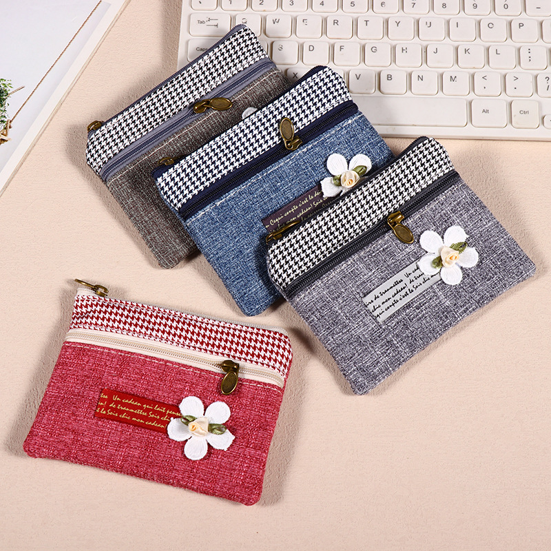 패브릭 더블 지퍼 동전 가방 여자 가방 카드 가방 변경 지갑 보관 가방 면과 린넨 숙녀 대외 무역 제조 업체 도매스토어 가기